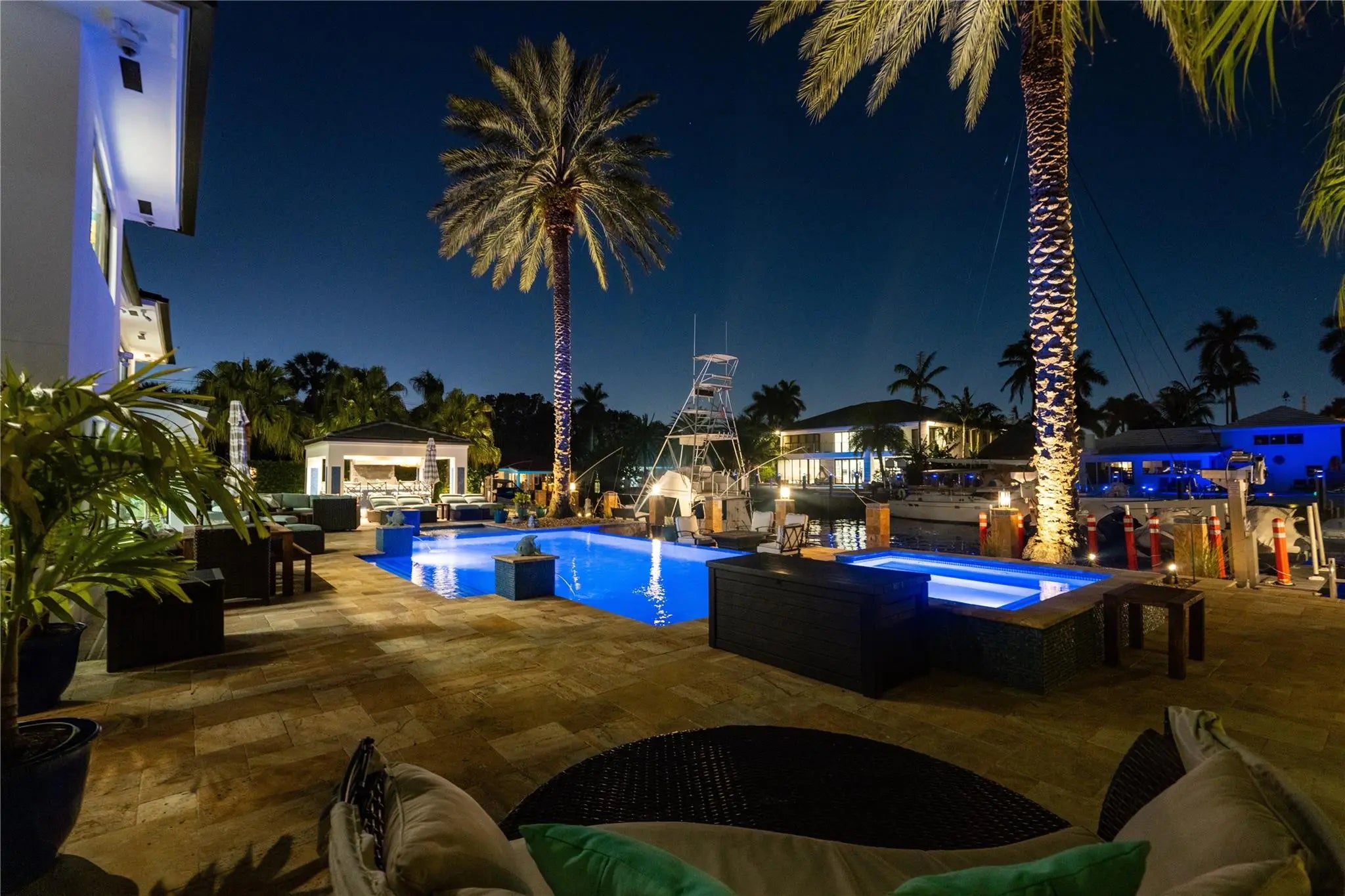 This is the Coral Ridge deep water estate that you have been searching for! This home has been completely remodeled with high impact glass, new flooring, new roof, high-end appliances, stucco, paint, and 12K pound lift on the dock. All of the systems in the home have been updated within the last 2 years including: full home generator, all A/Cs, pool equip., and tank-less gas water heaters. When you enter through the privacy gates you will find a modern home with almost 6,000 sq ft of air conditioned living space. Step outside to an oasis that includes a spectacular custom pool with spa and infinity edge, cbs construction pavilion that houses the summer kitchen and bar area for dining, and a concrete dock all surrounded and covered with gorgeous marble and landscaping!