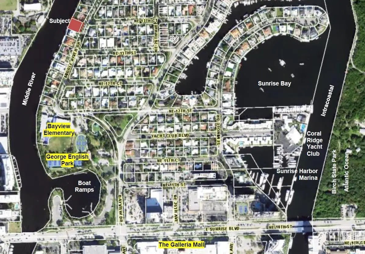 MIDDLE RIVER WATERFRONT. 100' X 145', 14,500 Square Foot Lot on 260' width of Middle River. Ocean access, subject to Sunrise bridge. Build your dream estate or remodel existing home. Bayview School District. AS IS with no repairs. See survey and aerial photos attached. See 360 view in virtual tour.