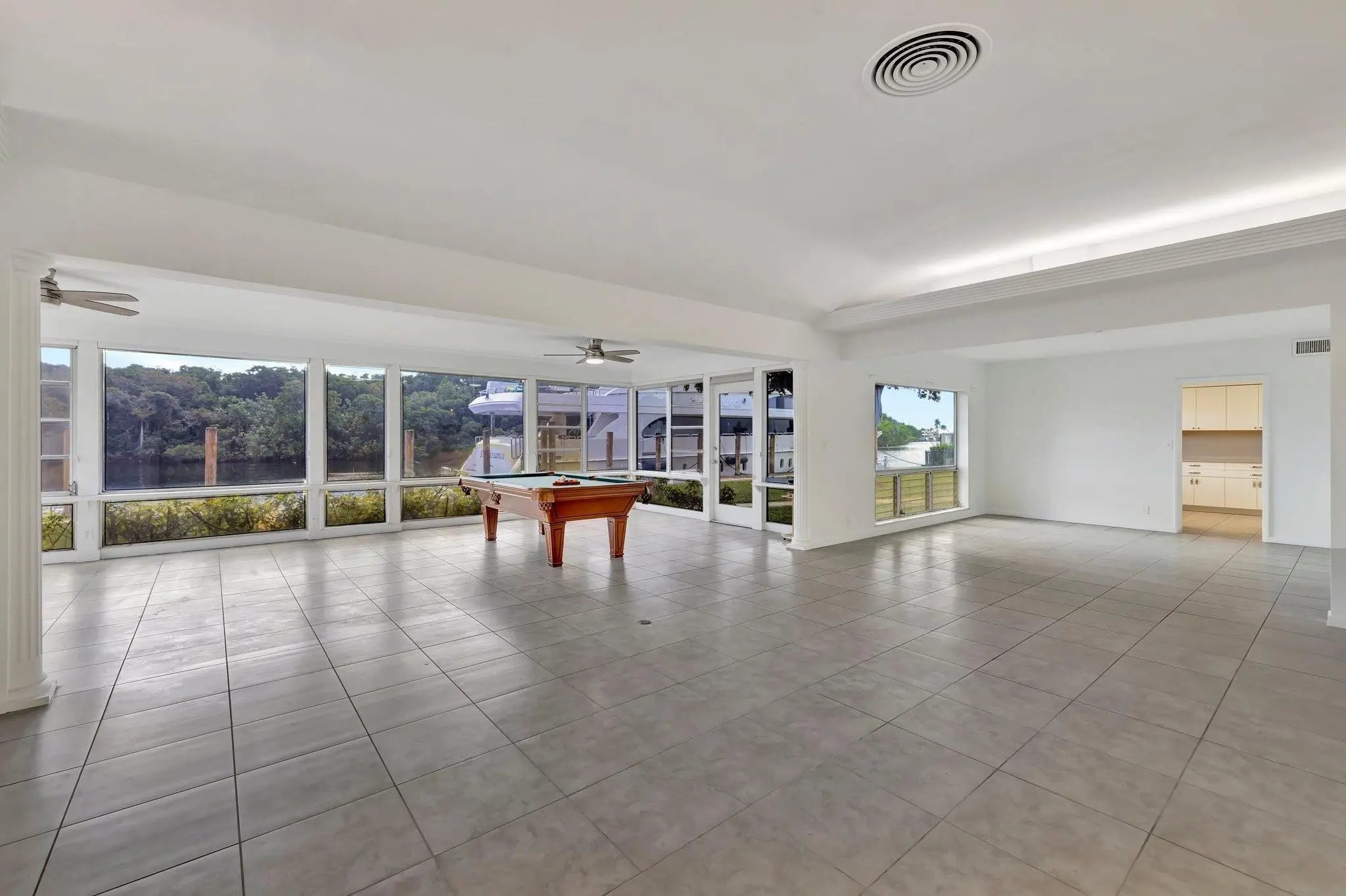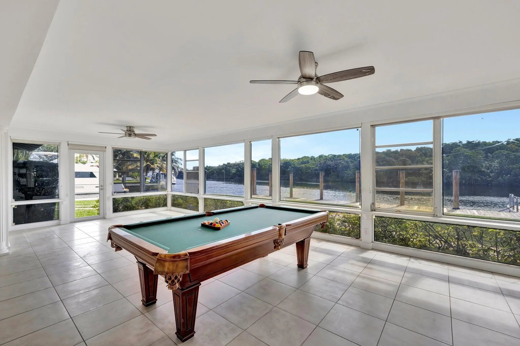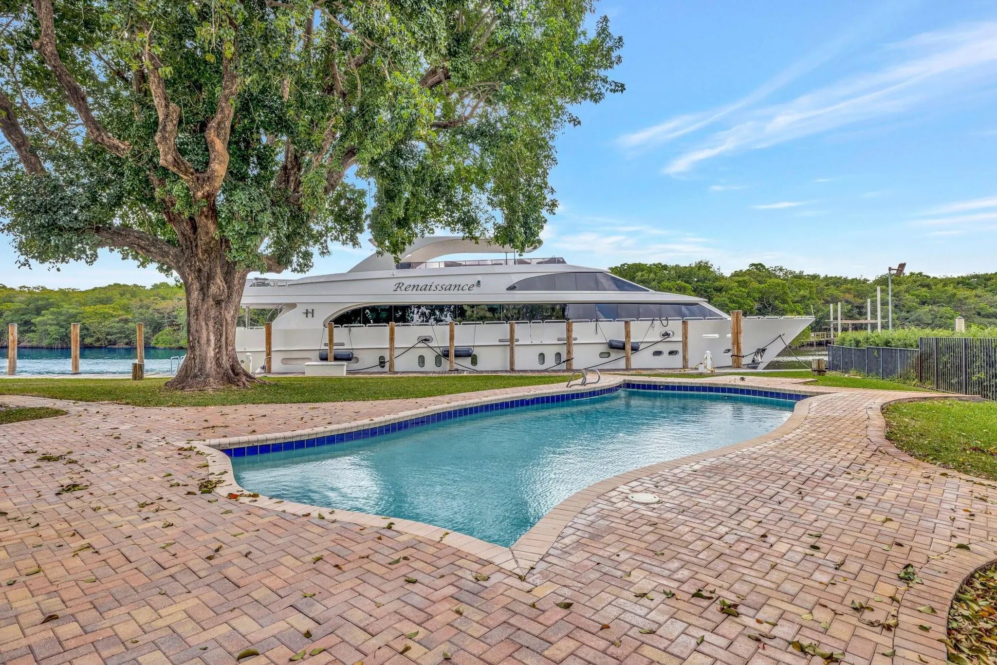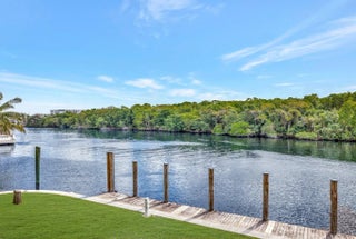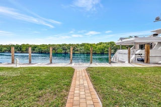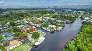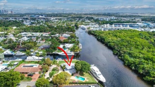 Valuable & rare point property under $5mm! Located in an idyllic & unique park-like setting opposite Secret Woods nature reserve & offering serene wide views on South Fork New River. Unusually large, .72 of an acre & perfect for large or multiple yachts, approx 344' of deepwater dockage, 191' on the river & 153' on side canal, approx 7.5 ft low tide depth. Residence is light & bright. New roof 2021. Offers expansive great room, dining area, kitchen & split bedroom plan 2 first level bedroom suites, upstairs primary & great views. In addition to 2-car garage there is a totally private Captain's quarters or guest suite. Enjoy as-is, renovate or tear down. Down River Estate is fenced & gated for privacy & security, vaste circular driveway, expansive green areas, established trees & large pool Property Details (as per seller) - Air conditioners replaced 2018 and 2022. Electrical main box and dock power 2009. Power on side canal dock 100 amp 220 v and river dock 100 amp 220v and 2 x 50 am 220 v. Side canal width is approximately 100 ft. Sprinkler pump and valves replaced 2024. New gate motor & computer panel 2023. Dredged in 2015 Seawall maintenance 2015. New garage ceiling with tongue and grove in 2024. Garage doors installed in 2024. Septic tank approx 2 years old.