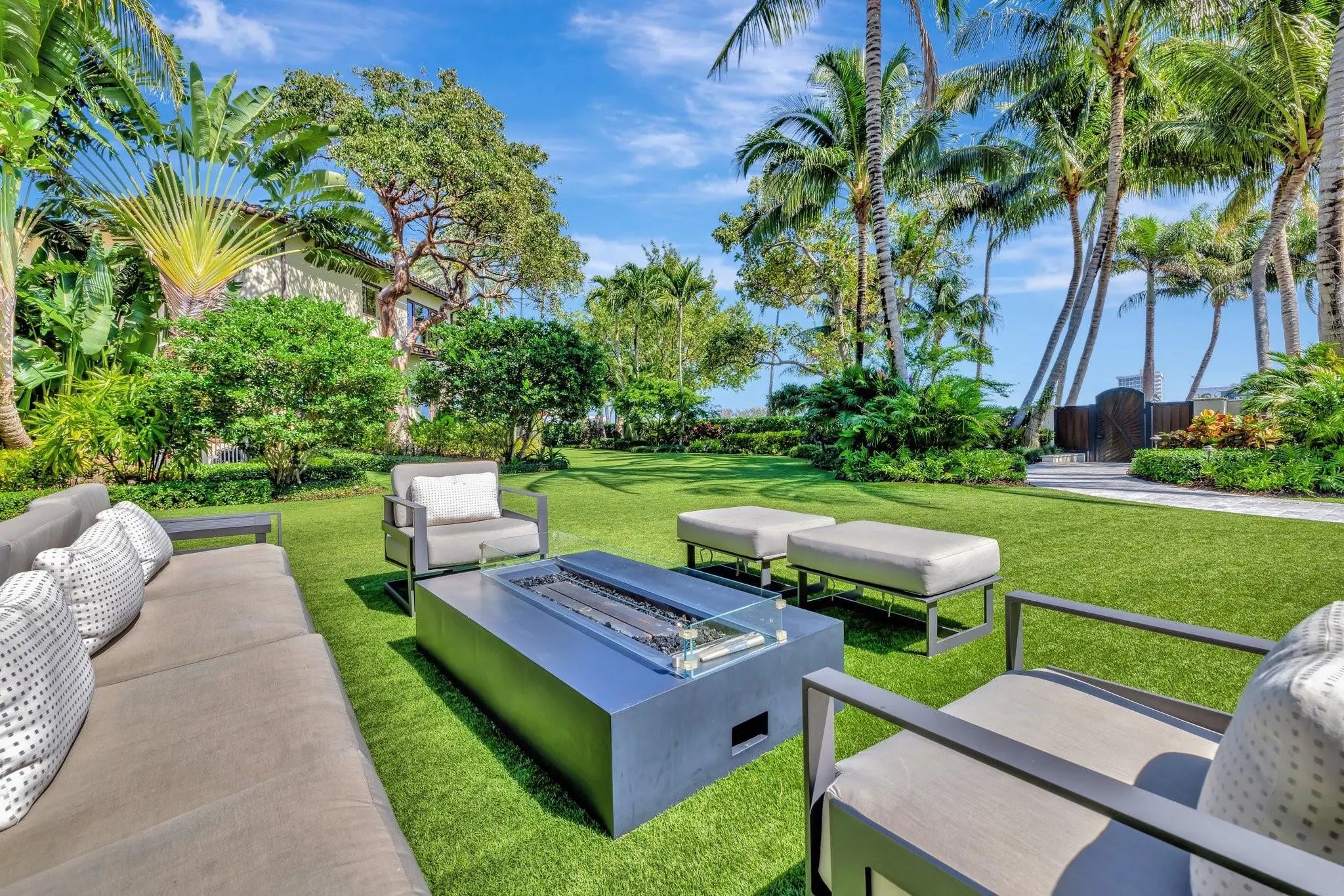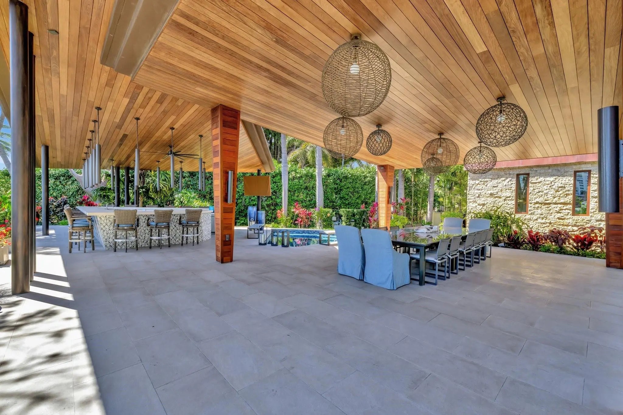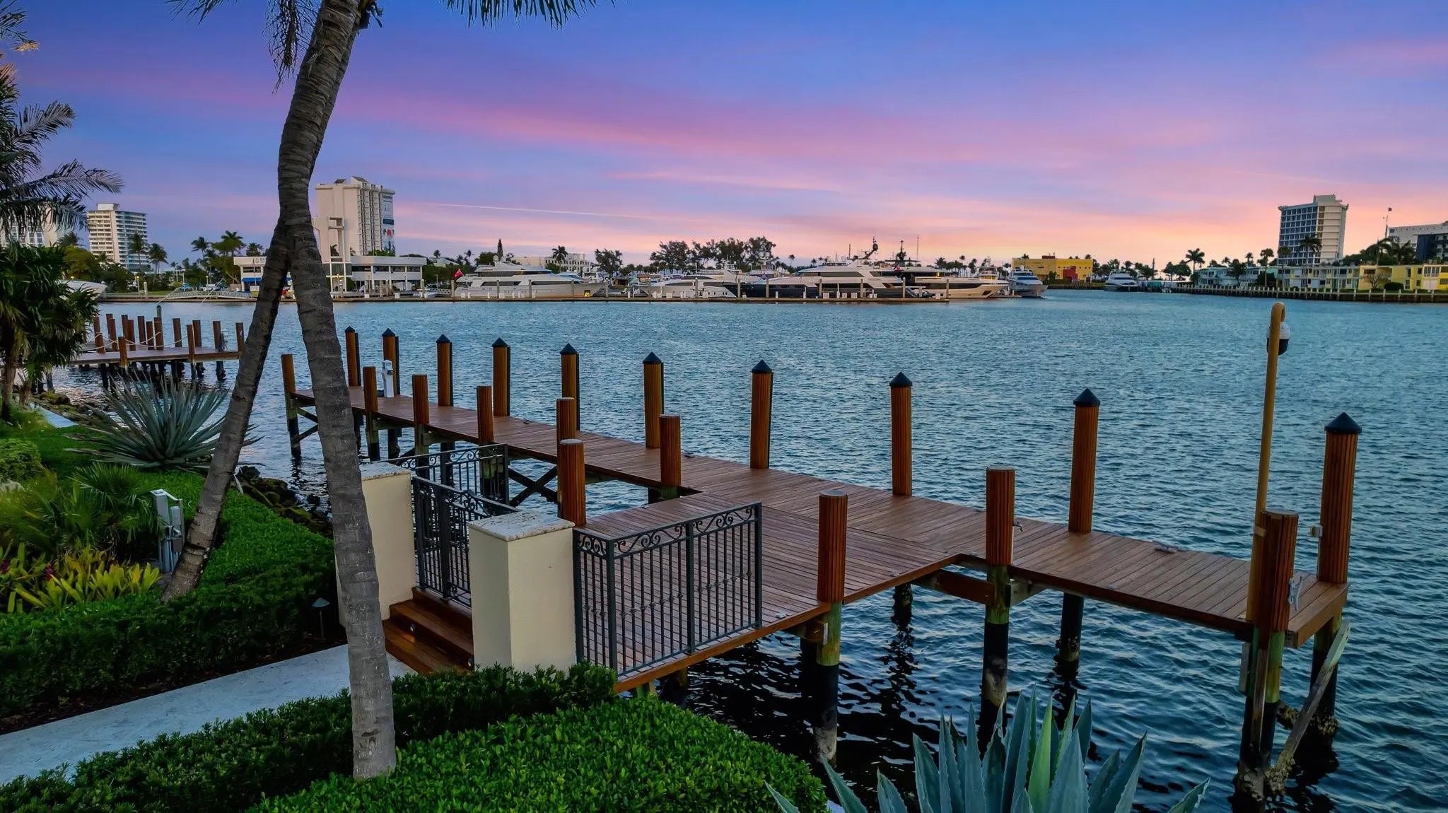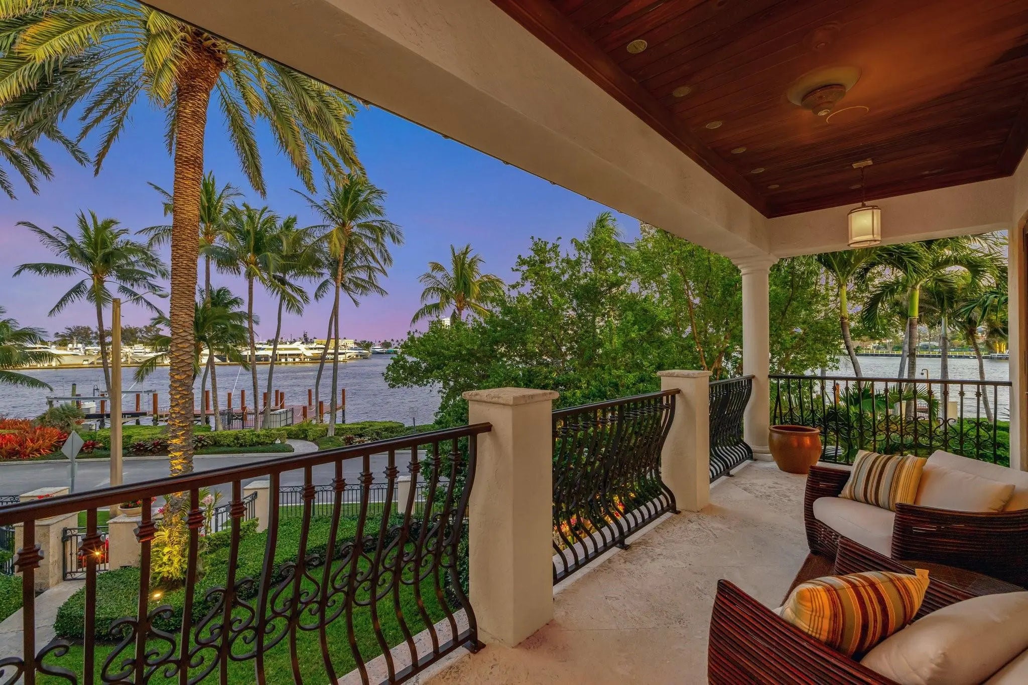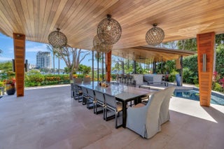 Magnificent two-parcel .82 acre Idlewyld waterfront estate with over 14,000 sf in total. Ultimate deep water compound! 338ft+/- straight-line waterfront (no wake) with two docks. Main house 6,336 sf under air with 2,050 sf covered outdoor living off Chef’s kitchen, fully renovated and expanded in 2012 with option for apartment over garage. In 2018, guest house with pool pavilion added, 1,330 sf under air plus 2,504 sf terraces with dining bar for 18, caterer’s kitchen, cabana, gym, and office. Estate includes 2,029 sf of air-conditioned garage space for seven cars. Walled and gated for privacy, award-winning grounds and rare tropical landscaping surround two pools and spa. Timeless Marc Michaels design with custom detailing and high-quality finishes throughout. Most desirable & extremely private South end of Idlewyld Drive. Estate is entirely walled & gated, creating a Four Seasons type environment that must be seen to be appreciated! Main House 815 Idlewyld Certificate of Occupancy with 2012 renovation which included entire Primary Suite with separate baths & closets, plus large private balcony intracoastal facing. 2012 new roof over entire main residence & all air conditioners replaced in last 12 months. First Level: formal living room with gas fireplace & covered front terrace overlooking the intracoastal. Separate bar area with 1,000-gallon saltwater live aquarium. Back-lit custom onyx bar, ice maker, refrigeration & storage. Overlooks the totally private courtyard pool (one of two pools).Elegant & welcoming formal dining room (access to pool area), custom wine refrigeration & storage. First level bedroom suite 1, library/home office (potentially bedroom suite 2)Cabana bathroom off the 2,000 sf covered outdoor living area/terrace with Summer Kitchen, grill & refrigeration, cabana bathroom & outdoor shower. Easy access to garage for caterers. 4 bay garage includes 1 lift. Potential apartment over garage for housekeeper or boat captain. Totally private & heated court yard pool with spa. Second level comprises loft area, primary suite, club room & bedroom 5 suite. Club room (potential VIP bedroom suite 4) with acoustic soundproofing built-in, including large projection theater with automatic/motorized black out shades & private balcony. Bathroom with sauna - potential to be a VIP bedroom suite & included in bedroom count. Expansive & ultra-luxurious primary suite offers private intracoastal facing balcony, separate spa style baths and custom closets/dressing rooms.833 Guest House & Pool Pavilion - Award Winning Architectural & Landscape Design Incredible intracoastal views while still enjoying privacy! Professional landscape lighting, outdoor speakers & fountains. Connected by wide open lawn areas & surrounded by tropical landscaping. Covered area includes water feature & secondary splash pool/spa. Stunning bar seats 18 with refrigerator, sink & storage.. Dining loggia with seating for 14, all covered with beautiful, beamed ceilings to create a tropical & private resort oasis. Large separate BBQ area separate to bar. The Guest House offers a full caterer's kitchen, cabana bath & access to the additional 3 car garage (potential 7 car when garages are combined). Stair access to second level of Guest House, terrace opens to gym and home office, both with amazing views. Spa style bathroom. Potential for additional bedrooms if required. DOCKS - Two separate docks, 70' & 90' both with 100amp/2 x 50 amp service 17,000 lb boat lift. Please note approximate measurements obtained from the builder & should be verified by the buyer for accuracy.