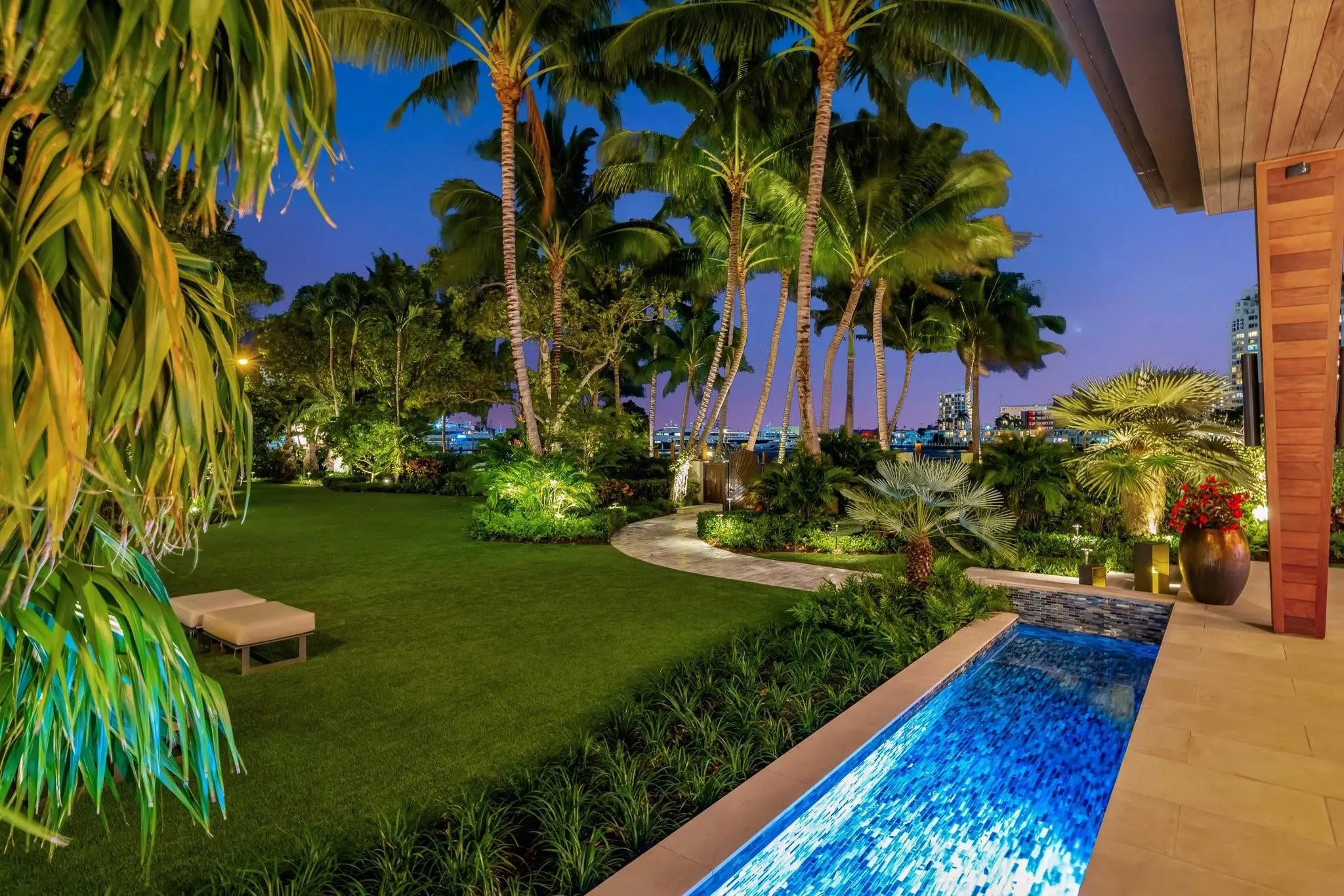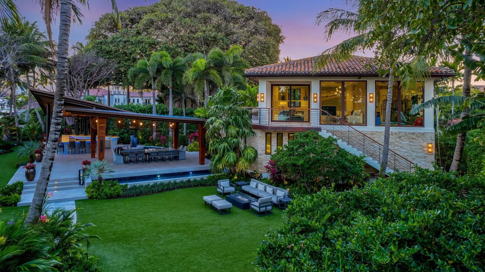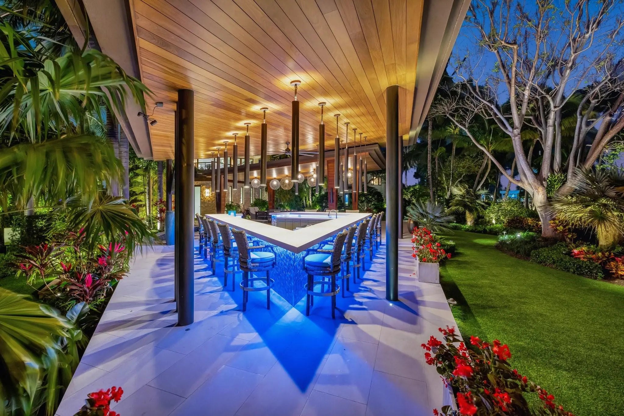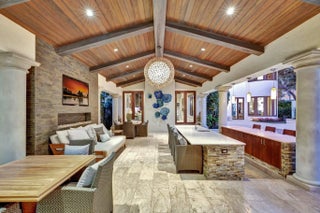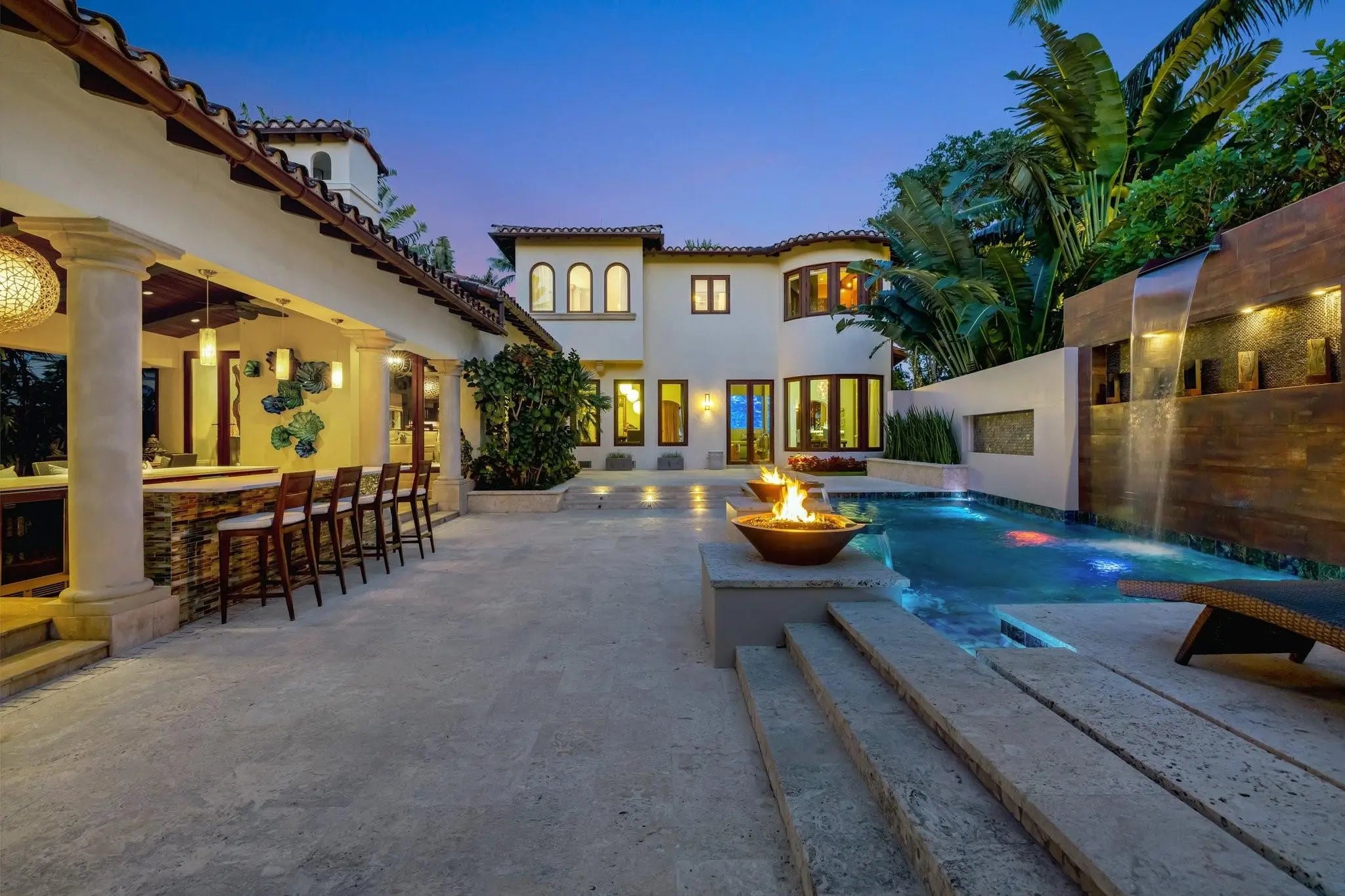 Magnificent two-parcel .82 acre Idlewyld waterfront estate with over 14,000 sf in total. Ultimate deep water compound! 338ft+/- straight-line waterfront (no wake) with two docks. Main house 6,336 sf under air with 2,050 sf covered outdoor living off Chef’s kitchen, fully renovated and expanded in 2012 with option for apartment over garage. In 2018, guest house with pool pavilion added, 1,330 sf under air plus 2,504 sf terraces with dining bar for 18, caterer’s kitchen, cabana, gym, and office. Estate includes 2,029 sf of air-conditioned garage space for seven cars. Walled and gated for privacy, award-winning grounds and rare tropical landscaping surround two pools and spa. Timeless Marc Michaels design with custom detailing and high-quality finishes throughout. Most desirable & extremely private South end of Idlewyld Drive. Estate is entirely walled & gated, creating a Four Seasons type environment that must be seen to be appreciated! Main House 815 Idlewyld Certificate of Occupancy with 2012 renovation which included entire Primary Suite with separate baths & closets, plus large private balcony intracoastal facing. 2012 new roof over entire main residence & all air conditioners replaced in last 12 months. First Level: formal living room with gas fireplace & covered front terrace overlooking the intracoastal. Separate bar area with 1,000-gallon saltwater live aquarium. Back-lit custom onyx bar, ice maker, refrigeration & storage. Overlooks the totally private courtyard pool (one of two pools).Elegant & welcoming formal dining room (access to pool area), custom wine refrigeration & storage. First level bedroom suite 1, library/home office (potentially bedroom suite 2)Cabana bathroom off the 2,000 sf covered outdoor living area/terrace with Summer Kitchen, grill & refrigeration, cabana bathroom & outdoor shower. Easy access to garage for caterers. 4 bay garage includes 1 lift. Potential apartment over garage for housekeeper or boat captain. Totally private & heated court yard pool with spa. Second level comprises loft area, primary suite, club room & bedroom 5 suite. Club room (potential VIP bedroom suite 4) with acoustic soundproofing built-in, including large projection theater with automatic/motorized black out shades & private balcony. Bathroom with sauna - potential to be a VIP bedroom suite & included in bedroom count. Expansive & ultra-luxurious primary suite offers private intracoastal facing balcony, separate spa style baths and custom closets/dressing rooms.833 Guest House & Pool Pavilion - Award Winning Architectural & Landscape Design Incredible intracoastal views while still enjoying privacy! Professional landscape lighting, outdoor speakers & fountains. Connected by wide open lawn areas & surrounded by tropical landscaping. Covered area includes water feature & secondary splash pool/spa. Stunning bar seats 18 with refrigerator, sink & storage.. Dining loggia with seating for 14, all covered with beautiful, beamed ceilings to create a tropical & private resort oasis. Large separate BBQ area separate to bar. The Guest House offers a full caterer's kitchen, cabana bath & access to the additional 3 car garage (potential 7 car when garages are combined). Stair access to second level of Guest House, terrace opens to gym and home office, both with amazing views. Spa style bathroom. Potential for additional bedrooms if required. DOCKS - Two separate docks, 70' & 90' both with 100amp/2 x 50 amp service 17,000 lb boat lift. Please note approximate measurements obtained from the builder & should be verified by the buyer for accuracy.