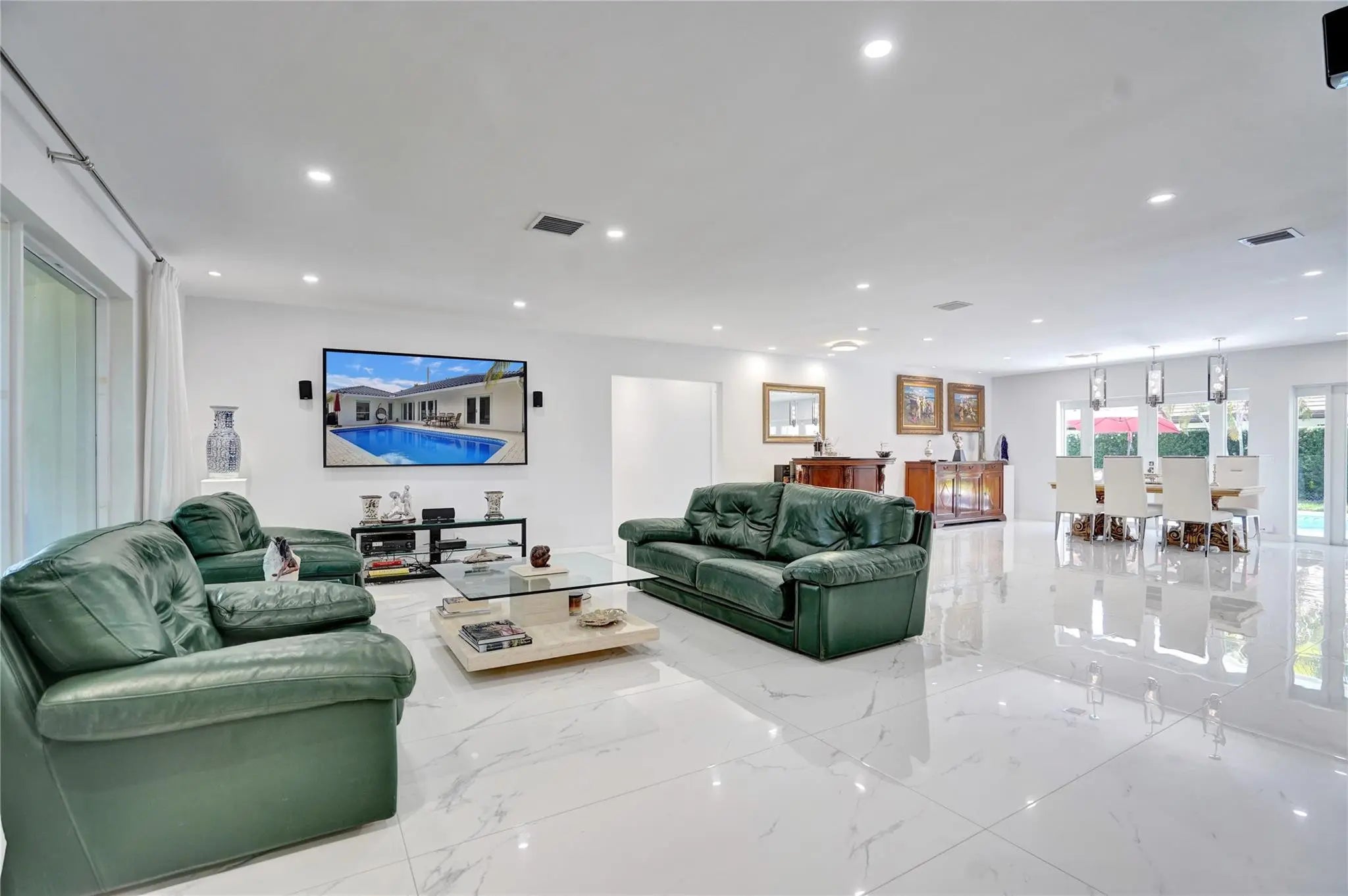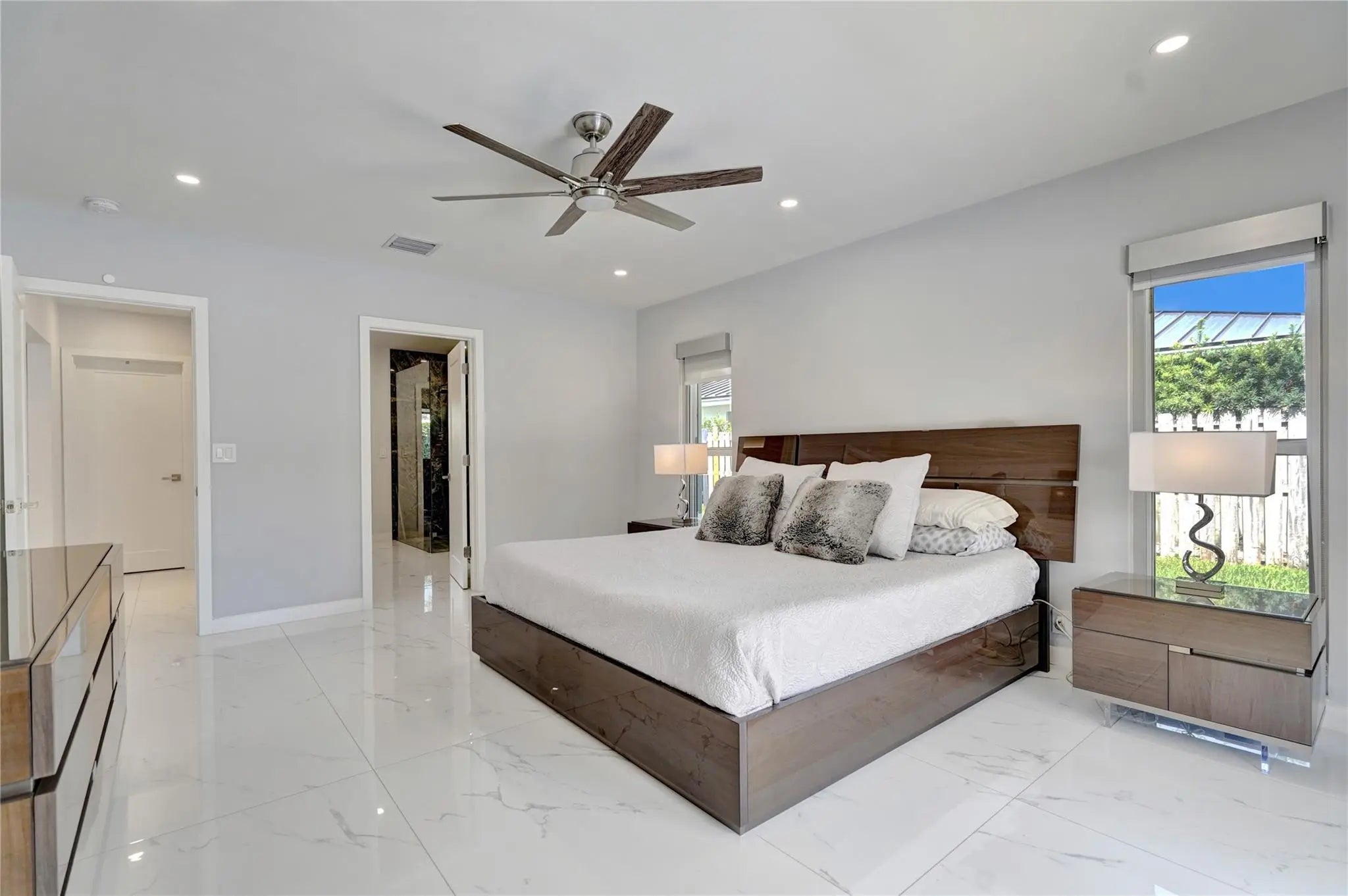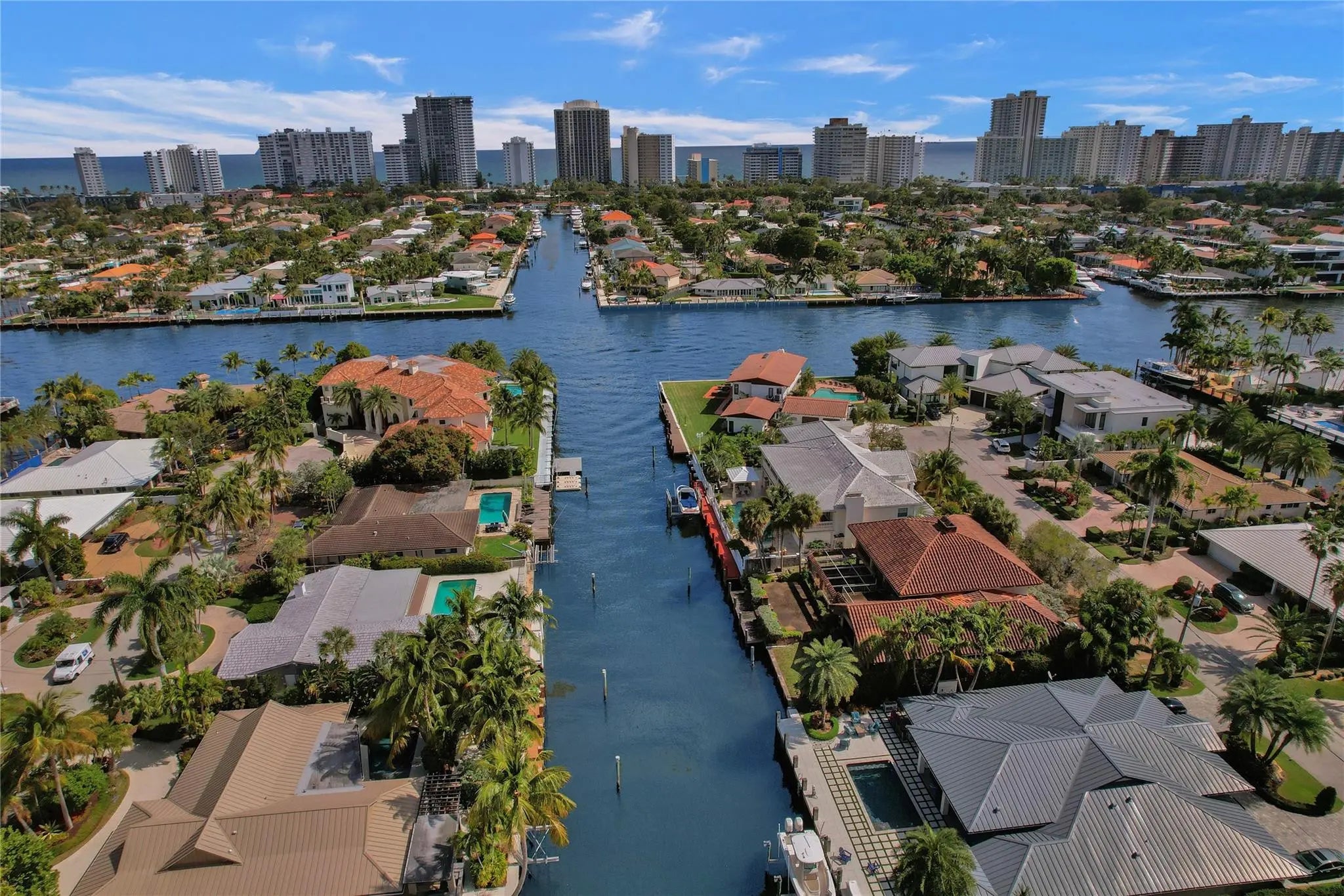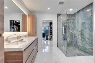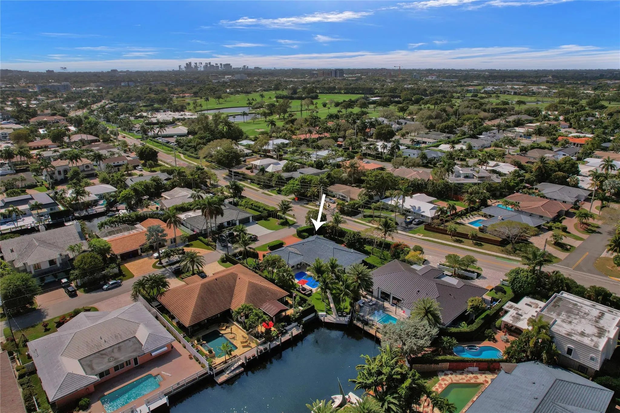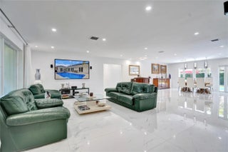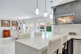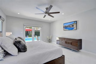 Beautifully renovated deep water residence situated on an oversized corner lot offering ultimate privacy with a "park-like" atmosphere. Bring your small boat, or jet skis & enjoy spectacular water views down the canal to the Intracoastal from the newly built dock. This Spacious home showcases a sleek modern design w/ a seamless open floor plan & luxurious, large-format, Porcelain tiles throughout. Impact glass windows & doors. The chef inspired kitchen is a showstopper with Quartz counters, breakfast bar & stylish European style cabinetry. This popular split bedroom layout offers a luxurious primary bedroom suite with views of the water & pool area complete with spa-like bath, 5th bedroom converted to a huge walk-in closet. Paver circular driveway is situated on NE 40th Ct for easy access. This property is enviably located in sought-after Coral Ridge Country Club neighborhood with very close proximity to Bayview Park and the Country Club.