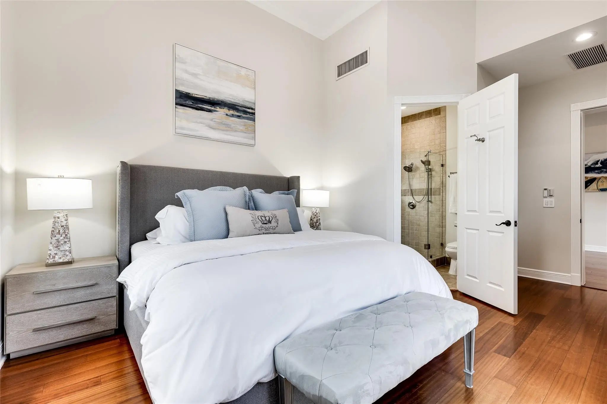 Built-in Features, High Ceilings, Wet Bar, Walk-In Closet(s), Bedroom Layout - Split, Closet Cabinetry