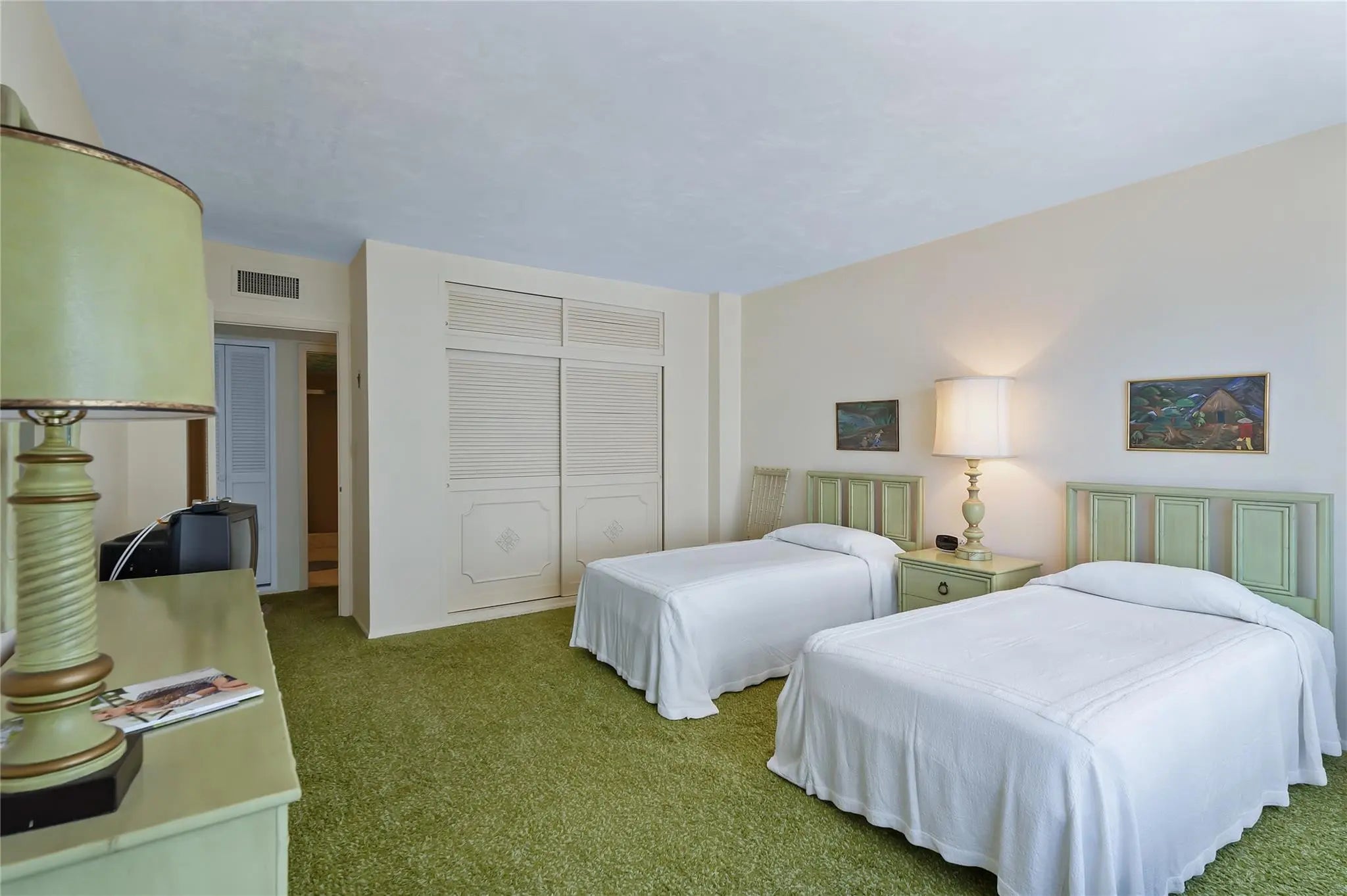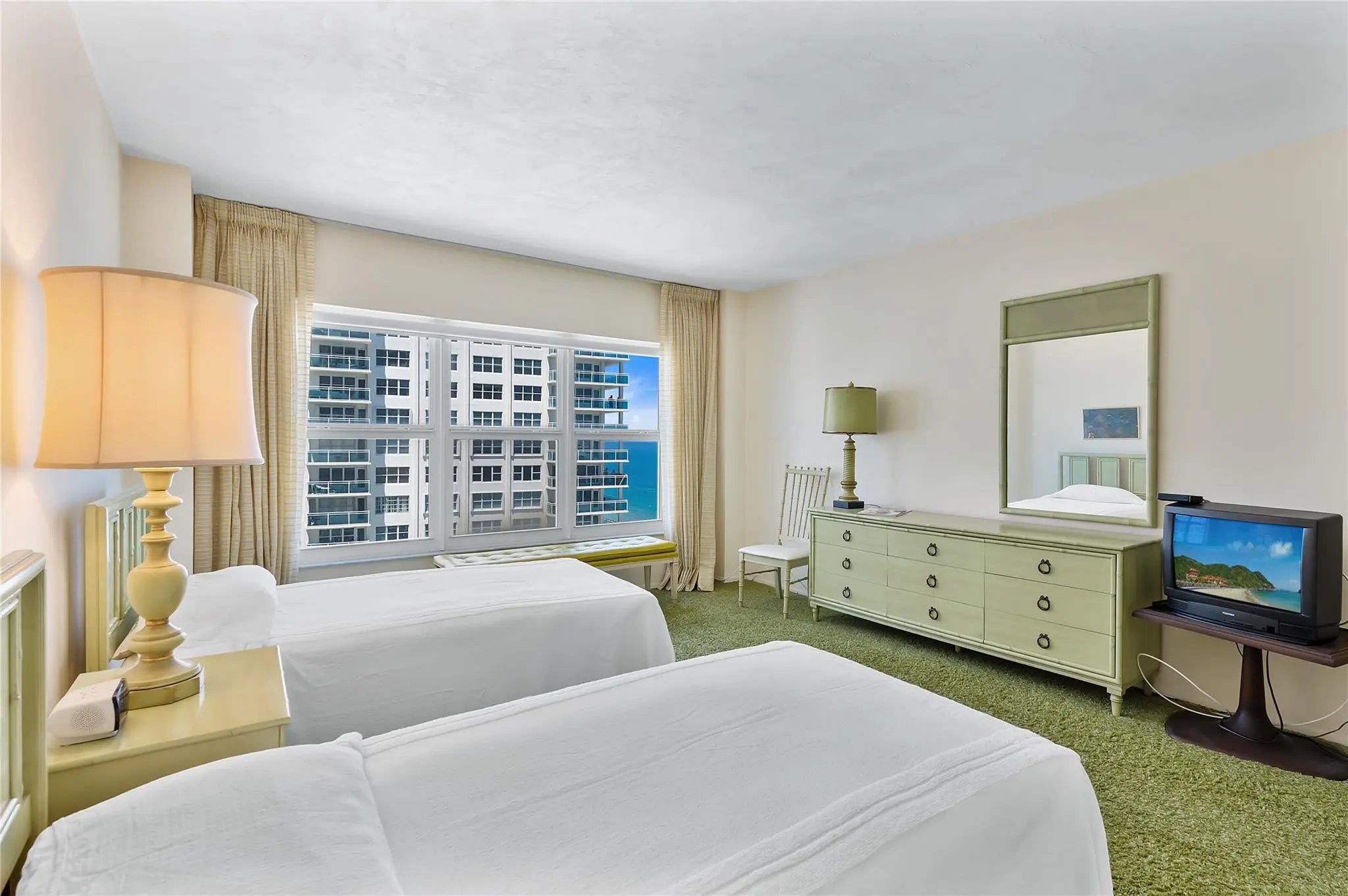 Great beachfront condo with endless potential to create your own paradise. This spacious unit is in original but well-maintained condition, with minimal use over the years. Enjoy stunning ocean and Intracoastal views from the large balcony. Great ocean views from your large bedrooms. Primary bedroom has large walk in closet and standard closet. Features include impact windows and doors, a generous floorplan perfect for entertaining, and a garage parking space valued at over $50K. Storage locker located conveniently no the floor. The building has completed its 50-year certification, concrete restoration, new elevators, roof, and updated amenities. Conveniently located within walking distance to grocery stores, restaurants, medical offices, and more.