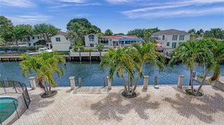Amazing views of the Intracoastal Waterway from this 2-story home in Coral Ridge Country Club just 2 homes from the Point! Great opportunity to build new or redesign this large residence with 85' of prime waterfront, and a generous 112' deep lot located minutes to the beach, and vibrant Lauderdale by the Sea. Expansive floorplan features a unique upstairs primary suite with its own staircase and a large balcony to enjoy tranquil waterfront activity. Another upstairs bedroom suite is reached by a second staircase. On the main level are 2 waterside bedroom suites and full cabana bath. Entertaining is easy with a spacious living room, dining room, kitchen and family room. Impact glass doors open onto the large patio, pool and dock. Per Seller, List Price is firm.