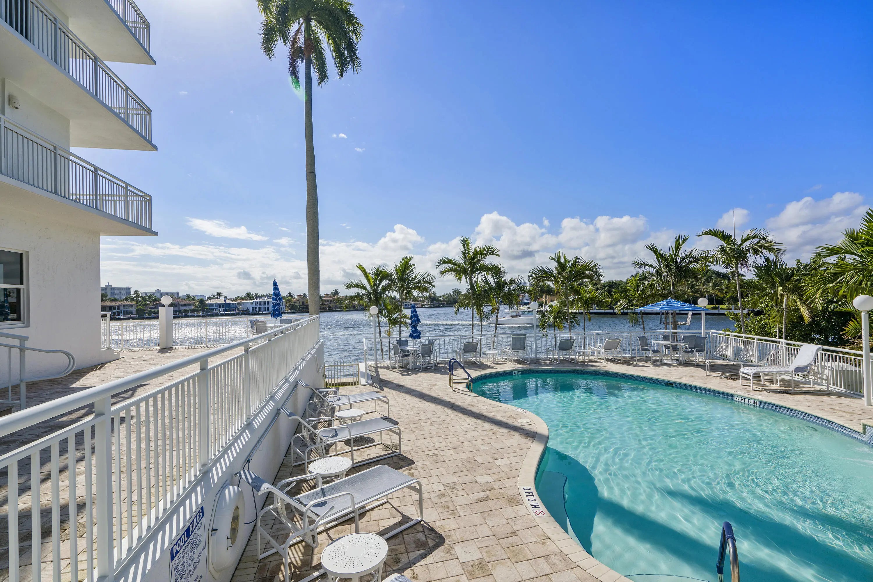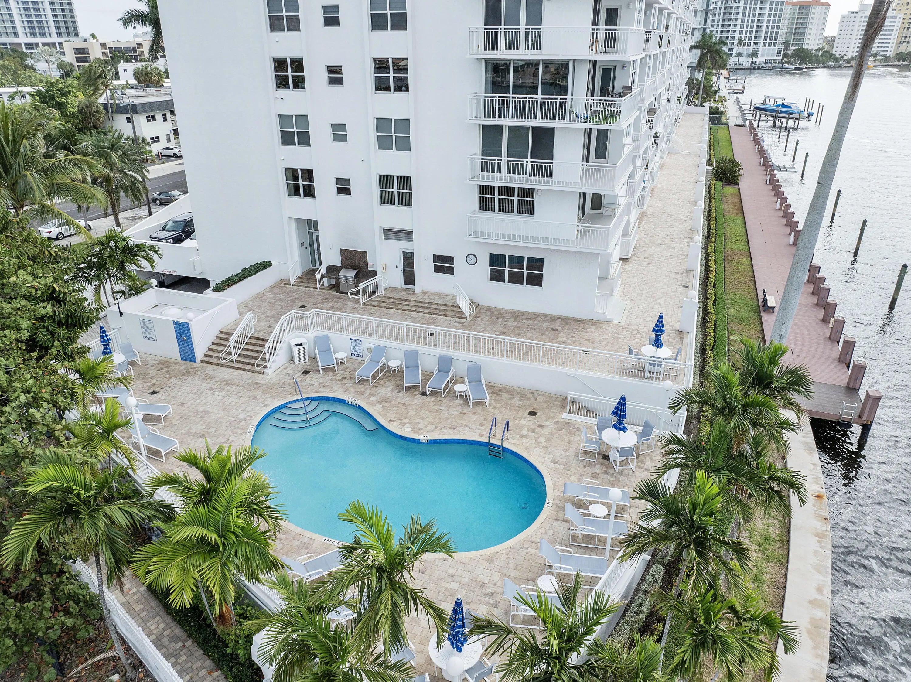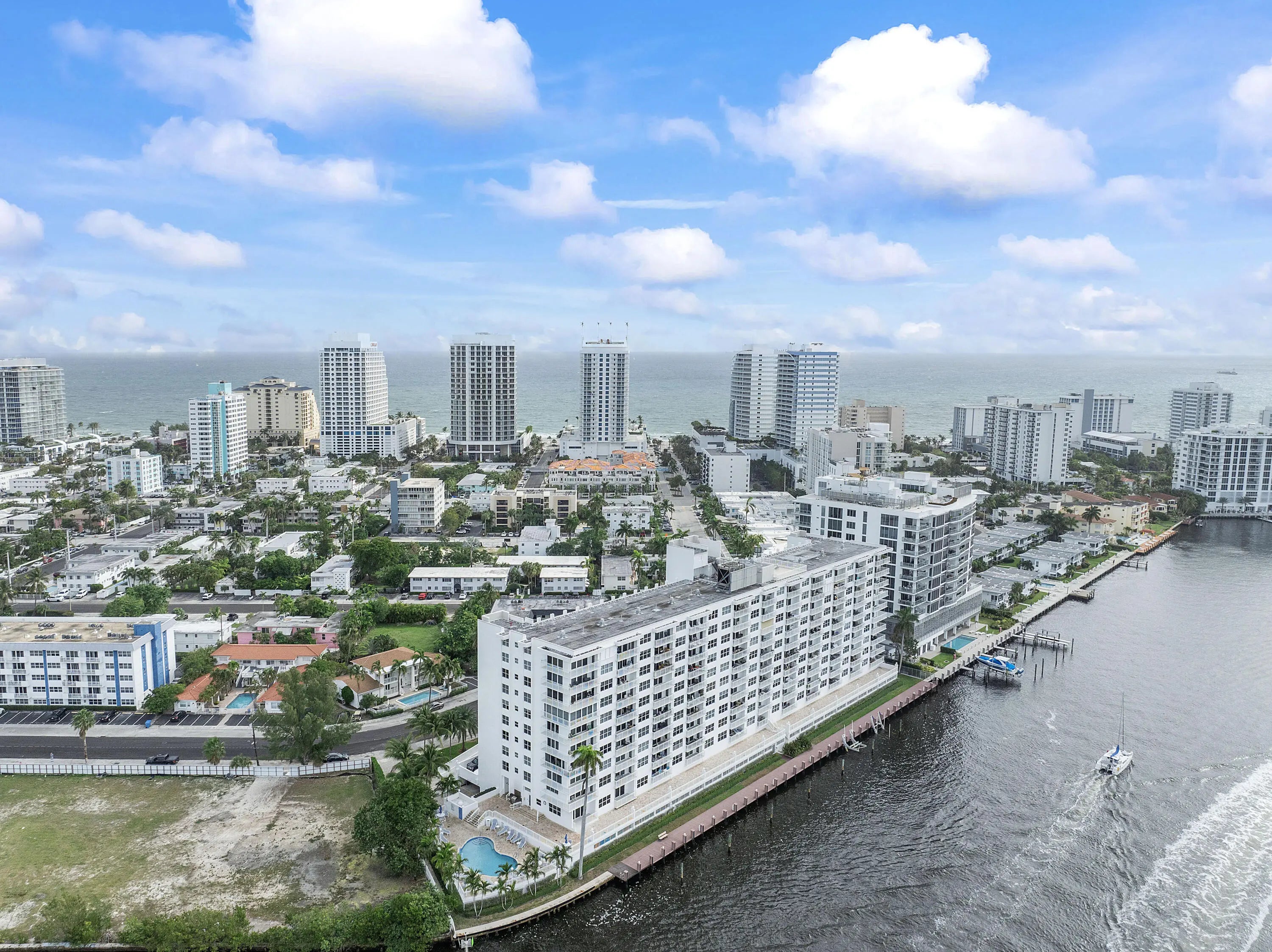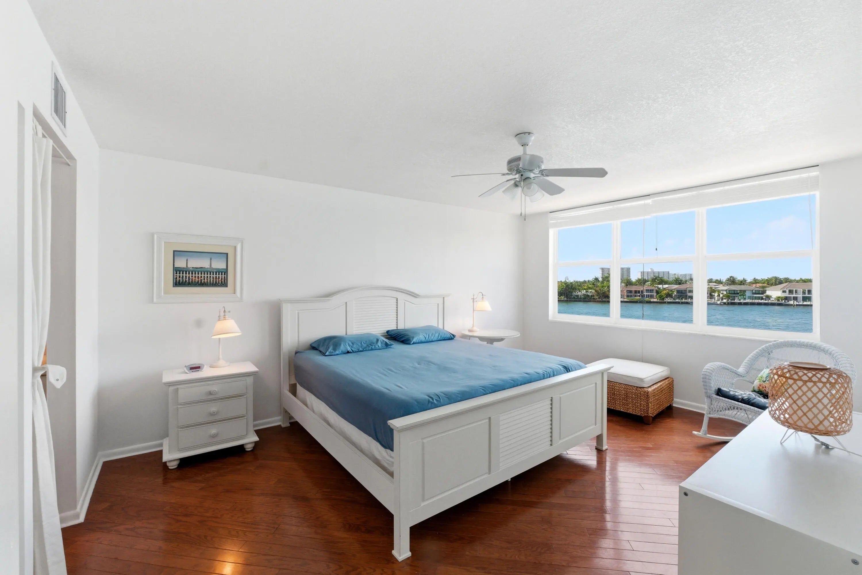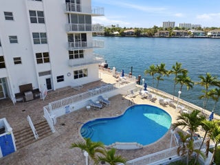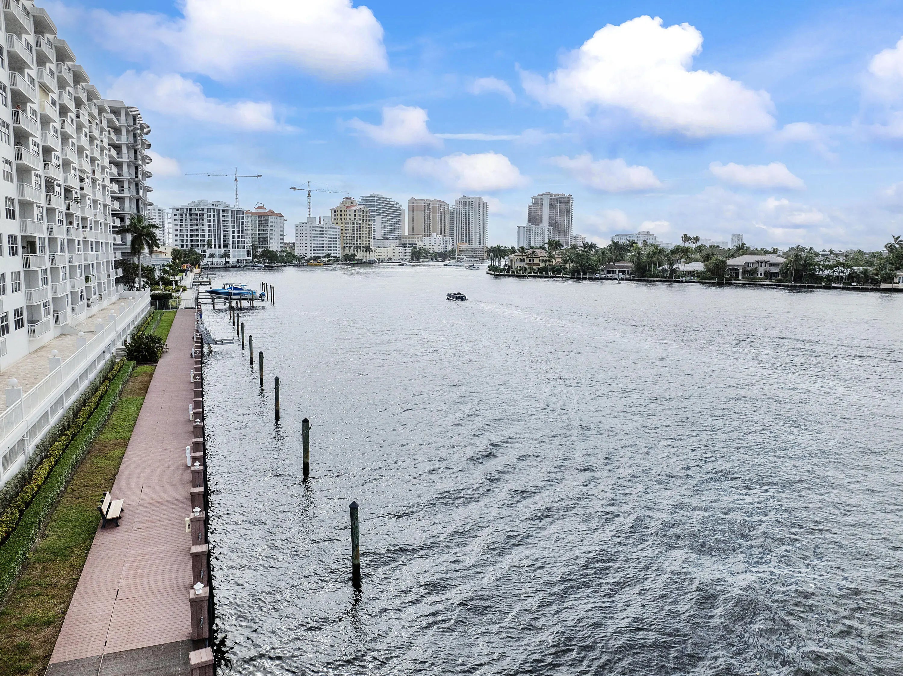 Direct intracoastal condo offering unmatched views and location! Enjoy breathtaking water and skyline views from this exceptional 2-bed, 2 bath condo, just steps from the beach! Watch yachts glide by from your private terrace and enjoy a spacious light-filled interior with wood floors, floor-to-ceiling sliders, an open kitchen with a breakfast bar, and a luxurious primary suite featuring a stunning water view, walk-in large closet, double sinks and a large shower. Washer and dryer in the unit. Bayshore towers offers resort-style living with a heated saline pool, fitness center, clubhouse, saunas, BBQ area, covered parking and dock access. Perfect as a full-time residence, vacation getaway or investment. World-class dinning, shopping and entertainment just minutes away!