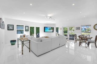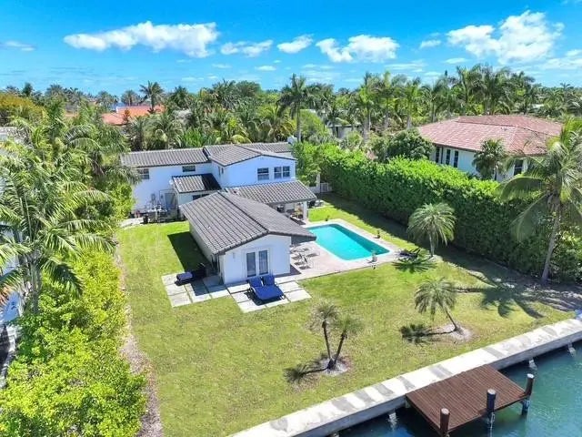 Beautiful desired Golden Beach updated home on the water. Two-story spacious home features, a guest house, heated pool & 100-foot sea wall on the intercoastal for a large yacht. Well-kept home has a large kitchen with breakfast counter, stainless steel appliances, gas stove, kitchen island & new cabinetry. Huge living area with French doors to backyard, pool & covered outdoor dining area with gas grill, great for entertaining large parties. Ample room by pool area for sunbathing. Formal dining & living areas, playroom & all updated bathrooms. Upstairs bedrooms have wood floors, downstairs has elegant white tile throughout. Large driveway for 8-10 cars. Town of Golden Beach offers a clubhouse, private beach, tennis, pickable, basketball & their own police department. Town building spa/gym