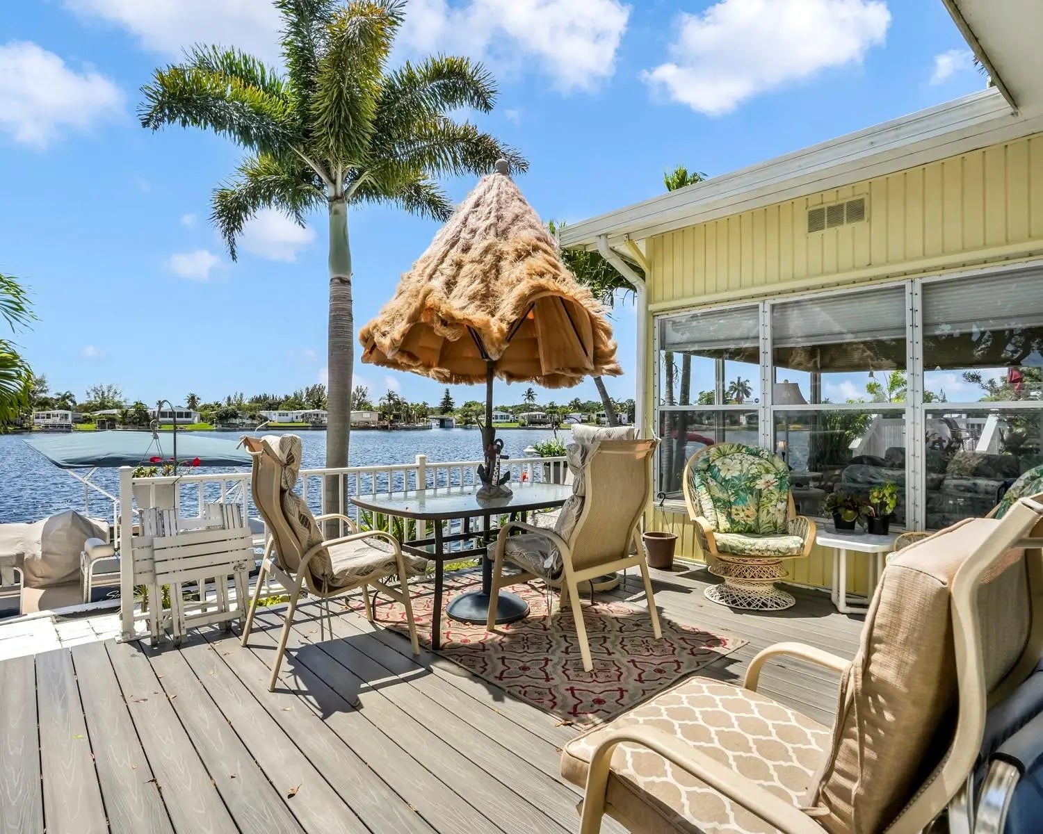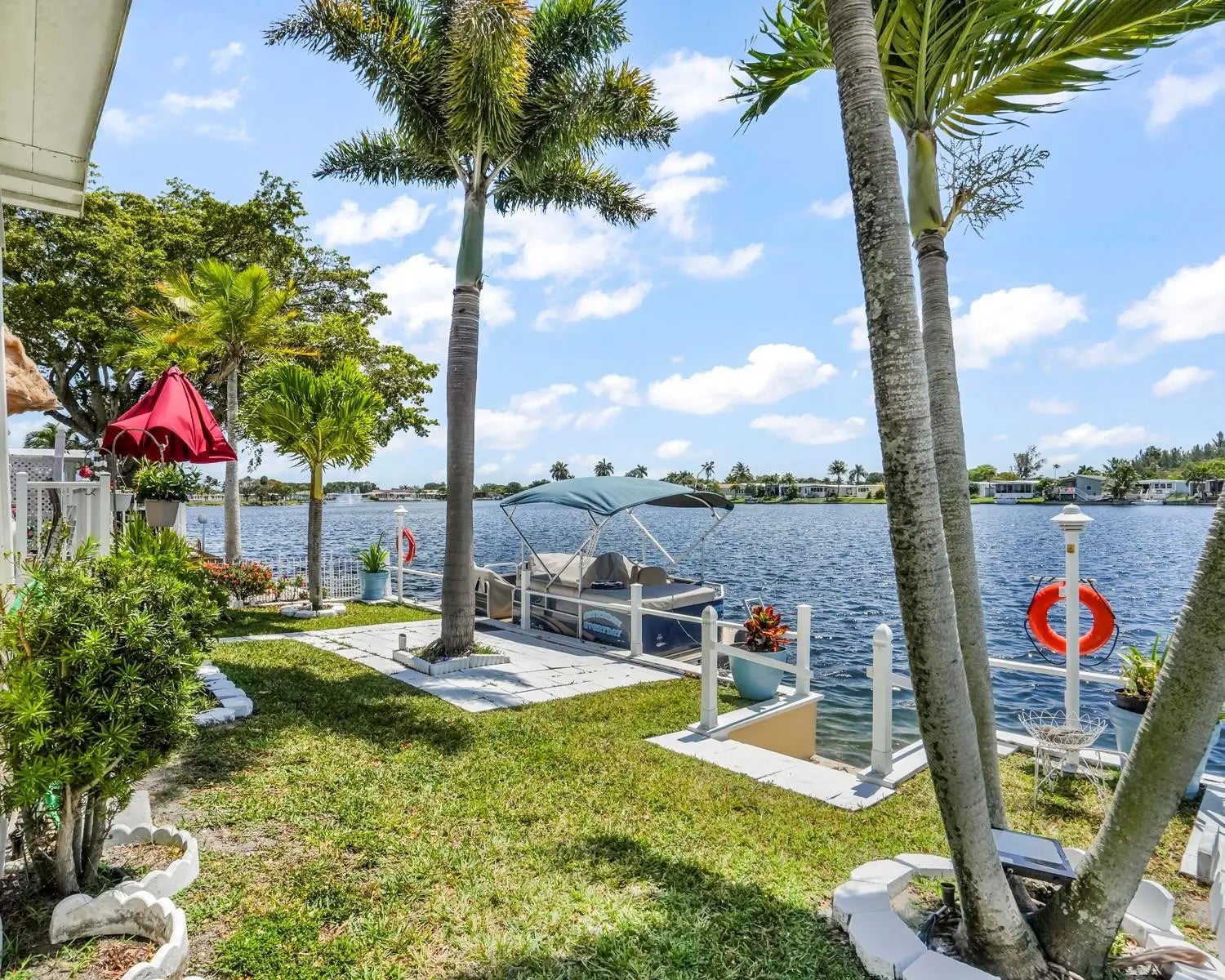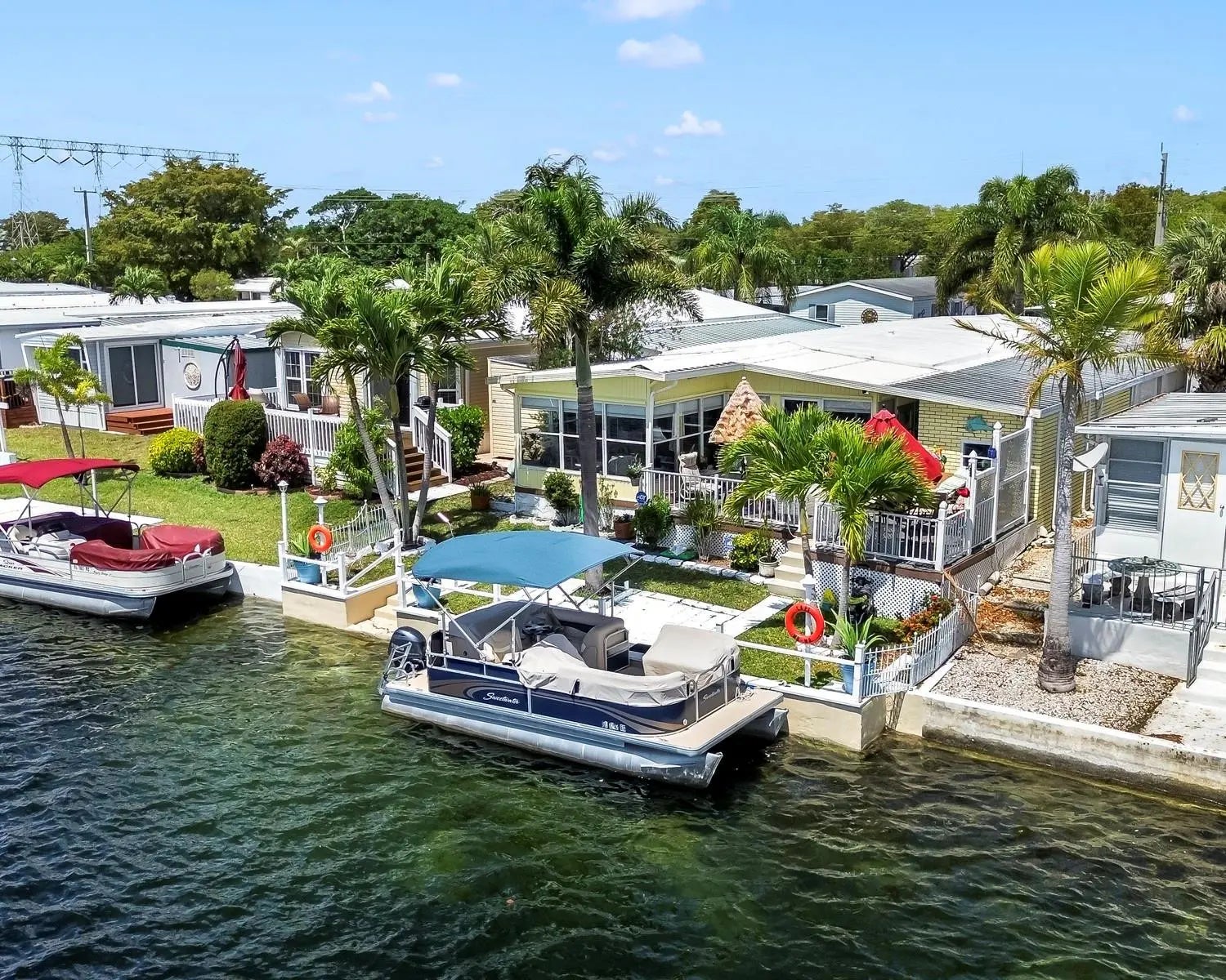 Welcome to your DREAM WATERFRONT home in the all-ages Estates of Fort Lauderdale! This spacious 2-bedroom, 2-bathroom gem boasts a large carport with shed, stamped concrete driveway, updated kitchen, ceramic and wood flooring, beautifully renovated bathrooms, 2 AC units, an enclosed Florida room with BREATHTAKING views of the water, and more! Steps away from the Clubhouse, and near all major highways, roads, restaurants, and shopping. Best of all, you OWN THE LAND, with LOW MONTHLY HOA OF 115/MO. Come see this special home for yourselves, and make this stunning home your very own.