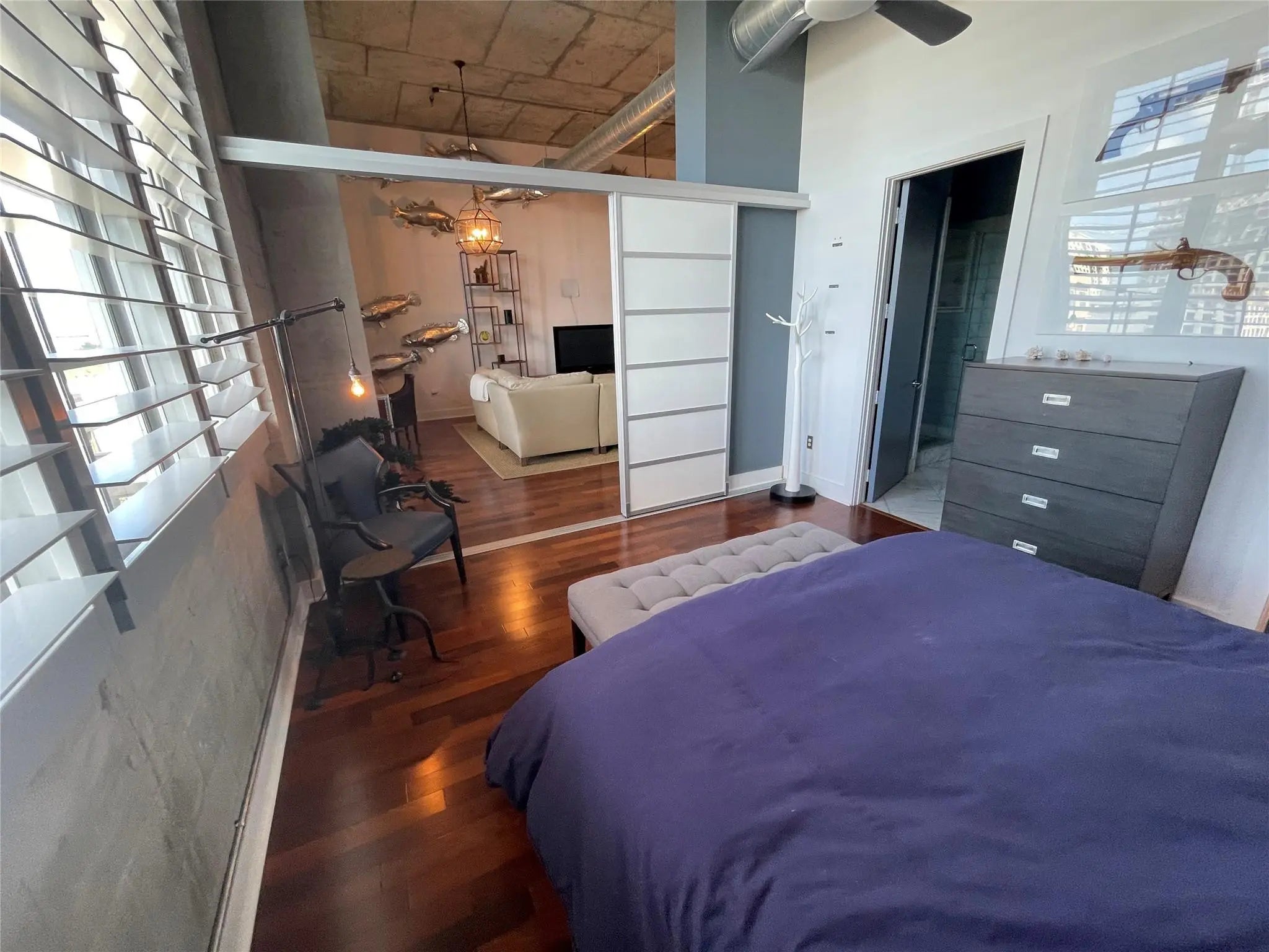Come home to this exceptional urban-industrial penthouse loft in Fort Lauderdale’s vibrant FATVillage Arts District. Featuring soaring 15-foot concrete ceilings, exposed A/C ducts, and expansive impact windows that flood the space with natural light, this residence offers an authentic loft aesthetic with modern comfort. Custom wood blackout shutters provide both privacy and elegance.The open-concept layout showcases rich hardwood floors throughout, a well-appointed kitchen with gas cooking, and spacious dining and living areas—ideal for both everyday living and entertaining. The two-bedroom, two-bathroom design includes a primary suite with a generous walk-in closet featuring a built-in shelving system, and a contemporary bathroom with dual vanities and a glass-enclosed shower. Come home to this exceptional urban-industrial penthouse loft in the heart of Fort Lauderdale’s vibrant FATVillage Arts District. Featuring soaring 15-foot concrete ceilings, exposed A/C ducts, and expansive impact windows that flood the space with natural light, this residence offers an authentic loft aesthetic with modern comfort. Custom wood blackout shutters provide both privacy and elegance.The open-concept layout showcases rich hardwood floors throughout, a well-appointed kitchen with gas cooking, and spacious dining and living areas—ideal for both everyday living and entertaining. The two-bedroom, two-bathroom design includes a primary suite with a generous walk-in closet featuring a built-in shelving system, and a contemporary bathroom with dual vanities and a glass-enclosed shower.Set within an exclusive, all-loft boutique building, residents enjoy access to a newly renovated heated pool and a stylish barbecue area—perfect for year-round relaxation and entertaining.Whether you choose to bring your own furnishings or purchase the beautifully curated pieces already in place, this stunning loft is move-in ready and effortlessly stylish. Don’t miss this rare opportunity—schedule your private showing today.