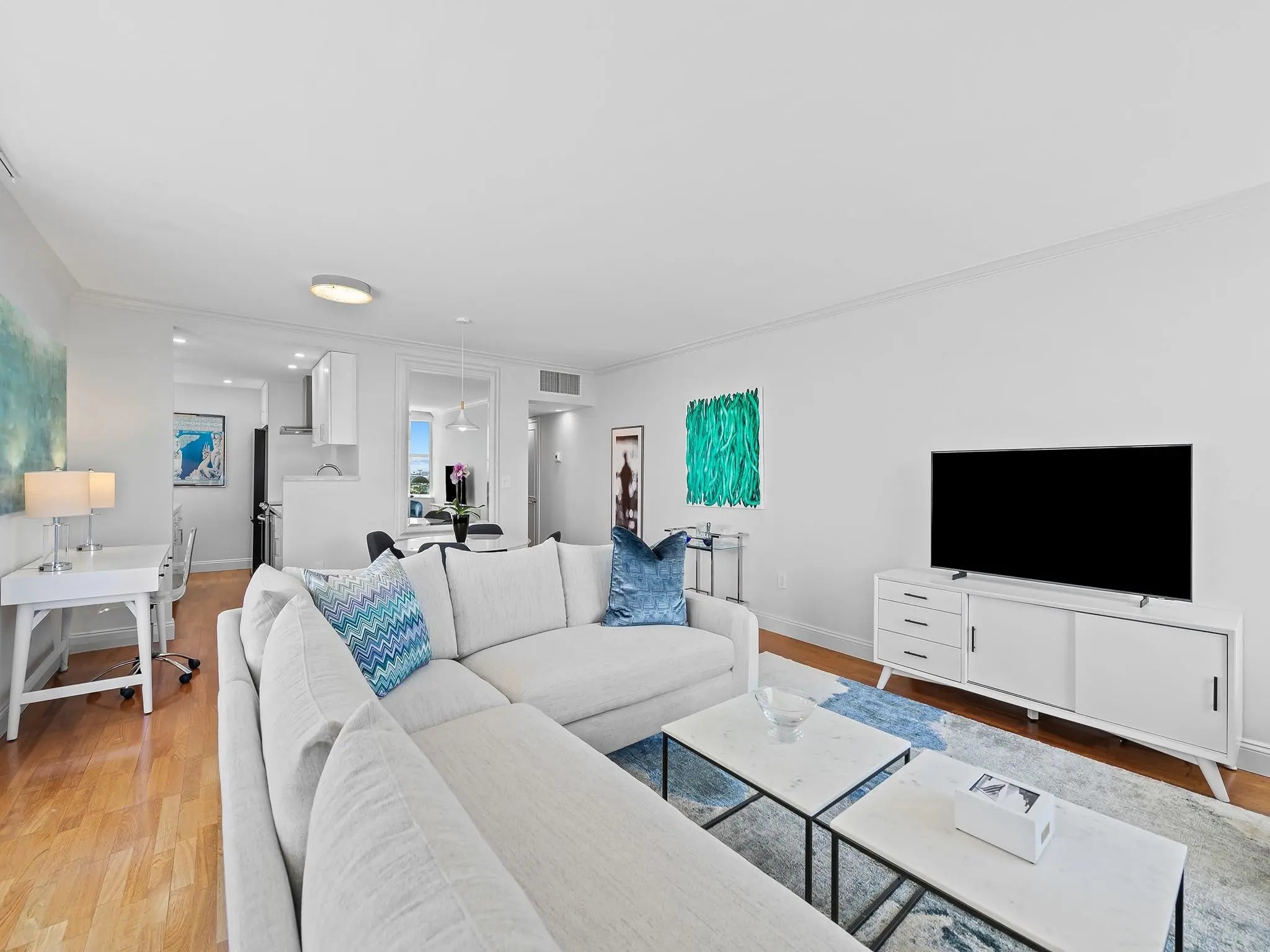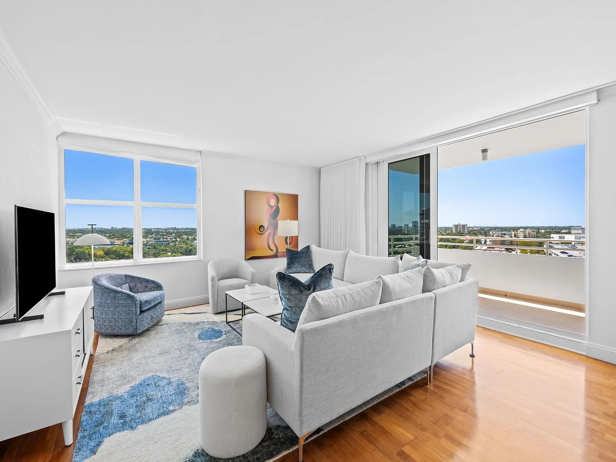 $50,000 Price Reduction! Experience the WOW FACTOR, breathtaking views over the Intracoastal Waterway with a daily parade of yachts, city skyline & multi million dollar homes. This professionally designed & updated corner unit is being sold fully furnished & turn key. Hurricane impact windows & large sliding door to the open balcony illuminate the modernized open floor plan. The kitchen offers new cabinetry, upgraded appliances, tremendous counter space & storage. The spacious primary bedroom boasts a huge designer walk-in closet & lavish bathroom. This unit is outfitted with a new washer & dryer, high end Bosch a/c system with an upgraded air filtration system, motorized shades & private storage closet. Steps to shopping, dining, gyms, the water taxi, the park & beach. Sq. Ft. from BCPA