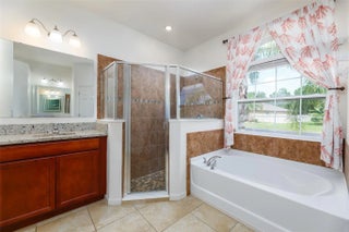 MOVE IN READY Beautiful POOL home sports 5 bedrooms, 4 bathrooms, 3 car garage single family house for sale. The entrance door opens into the formal living and dining area of the home which flows into the den and kitchen. This home has a huge eat-in kitchen with extended countertop for dining and entertaining. There is 1 bedroom and a full bathroom on the second floor for the convenience of your guests and in-laws. The large exotic salt water swimming pool and spa with patio area has a screen enclosure for privacy and relaxing.Home is vacant and ready for immediate access.