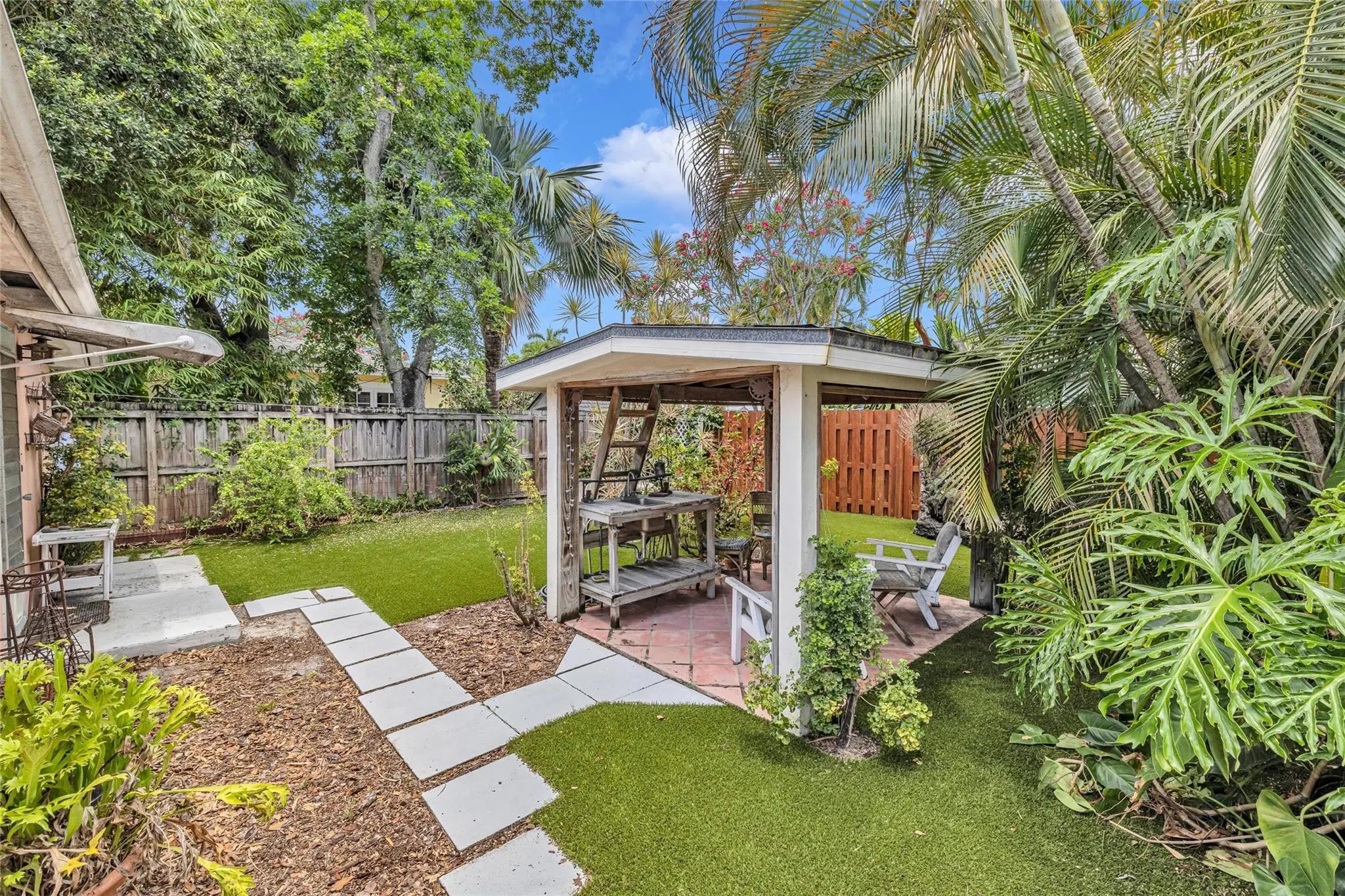 In the heart of Victoria Park, this unique cottage is a hidden treasure amidst lush greenery, a serene lily pond with a waterfall, and a delightful gazebo. Ideal as a pied-à-terre, art, or photo studio. Featuring a 2020 roof, updated electrical (2022), and a tankless water heater, blending vintage allure with modern conveniences. Cuban mosaic tile floors and spacious closets for charm and practicality. A separate utility closet includes a stack washer/dryer. A budget-friendly option in a neighborhood where the average price exceeds $1.5M—just blocks to the Iceplex, pickleball, ice skating, sports fields, and live entertainment venues. The Brightline Train and Fort Lauderdale Airport are nearby. Victoria Park is cherished for its wide sidewalks, parks, tree canopy, and access to Las Olas.