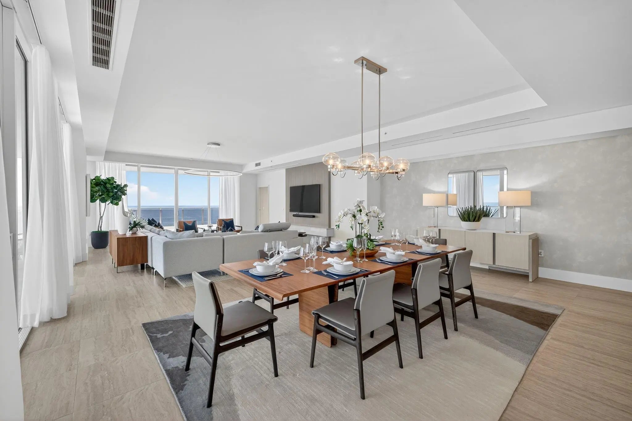 BRAND NEW, FOUR SEASONS PREMIER PENTHOUSE RESIDENCE, Nineteenth floor, with 6 bedrooms, 6.5 bath,4,516sf interior and 6,585sf gross and direct ocean views. Dramatic floor to ceiling glass and gracious open terracesafford you ample natural light throughout the home. Gourmet kitchen with custom Italcraft lacquered cabinetry, SubZero and Wolf appliances, outdoor summer kitchen. Dramatic owners retreat configuration optimizes privacybetween you and your guests as well as offering additional bedrooms with ensuite baths and an additional half bath.Abundant closet space throughout this luxury residence. Seamless/capless glass rails maximize your unobstructedviews of the ocean. Assigned parking, either self park or valet as an exclusive VIP amenity offered to all owners.