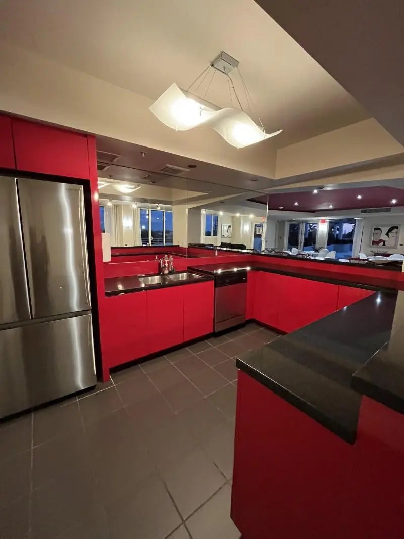 SELLER PAYS ALL CURRENT ASSESSMENTS. Breathtaking intracoastal view at the coveted SLADE! Bamboo floors in all well-appointed living areas & neutral tiles in kitchen and baths. Stunning light fixtures throughout.Open floor plan. Stainless steel kitchen stars a 2 drawer dishwasher. Lots of storage with custom soft-close pullouts. Full size stackable washer/dryer next to guest bath with walk-in shower. Close the pocket door to guest bedroom suite for privacy. The main bedroom suite has nice size walk-in and wall closets! The bathroom has relaxing soaking tub & massage jets for shower. Your deeded garage space is steps from the east elevator and your home &the largest in the building, envied by all.