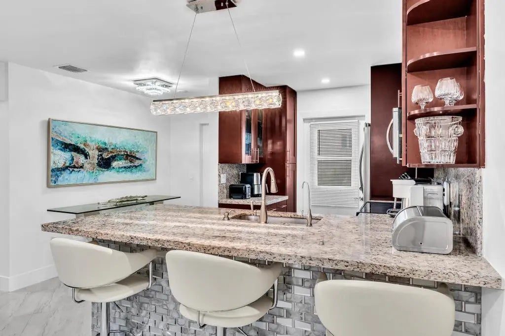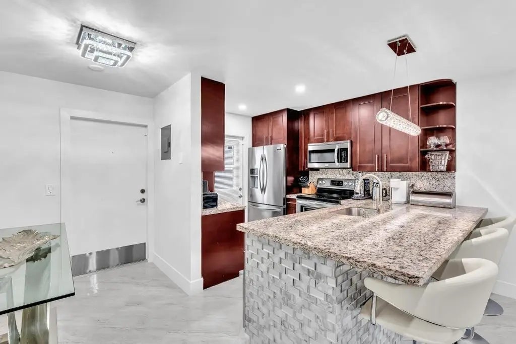 Stunning Kings Park Condo in the heart of East Fort Lauderdale, featuring a move in ready totally remodeled and beautifully maintained two bedroom two bathroom unit, new dark wood kitchen cabinets, new stainless steel appliances, kitchen island, granite countertops, porcelain floors, immaculate renovated bathrooms, utility room, high hat led lighting, exterior screen patio, community pool, and club room, elevators and very well maintained property. They must see! Won’t last! Stunning Kings Park Condo in the heart of East Fort Lauderdale, featuring a move in ready totally remodeled and beautifully maintained two bedroom two bathroom unit, new dark wood kitchen cabinets, new stainless steel appliances, kitchen island, granite countertops, porcelain floors, immaculate renovated bathrooms, utility room, high hat led lighting, no exterior screen patio, community pool, and club room, elevators and very well maintained property. They must see! Won’t last!
