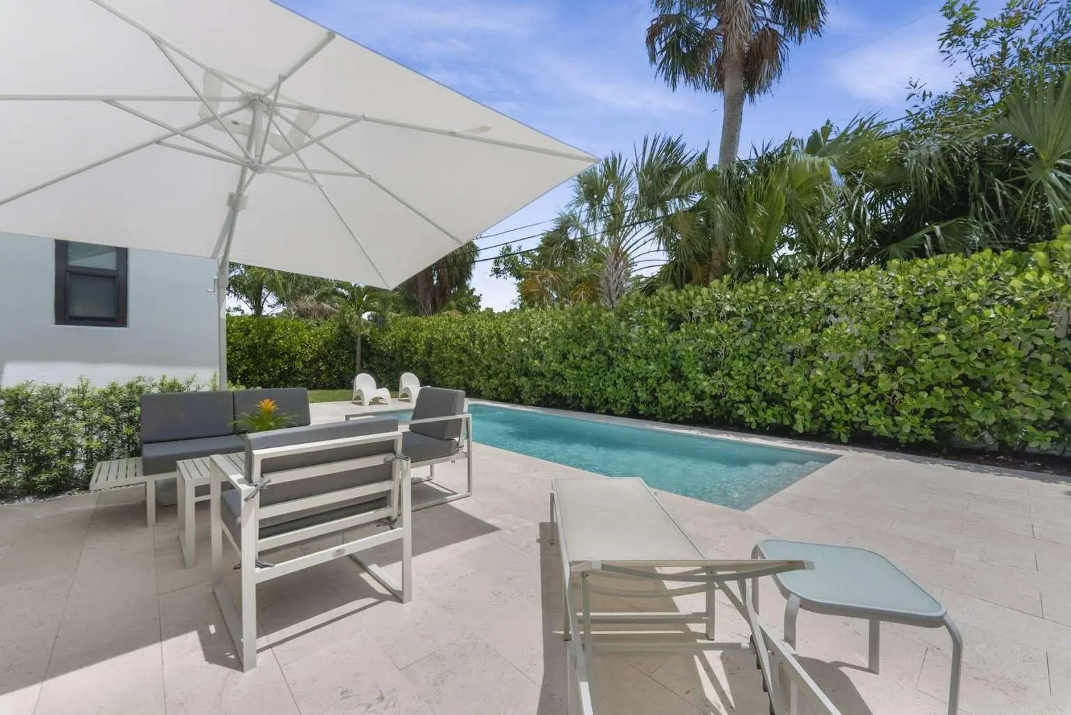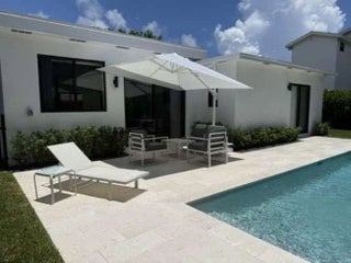 Beautiful Mid-Century home in Trendy SoSo section of West Palm Beach three blocks from intercoastal waterway. Recently remodeled by a luxury builder. This 3 Bedroom/ 2 1/2 Bath is Turn-Key, ready to entertain in the private backyard. Everything new-Impact windows and doors, 200 Amp Electrical service-wires undergrounded, new kitchen addition/laundry room, new baths, roof, AC, security system with camera, newly painted interior and exterior, new salt water filtration pool, shell-stone deck, new driveway, fencing, and all new landscaping with irrigation system. One car air-conditioned garage/gym. Minutes to Worth Ave and the airport.