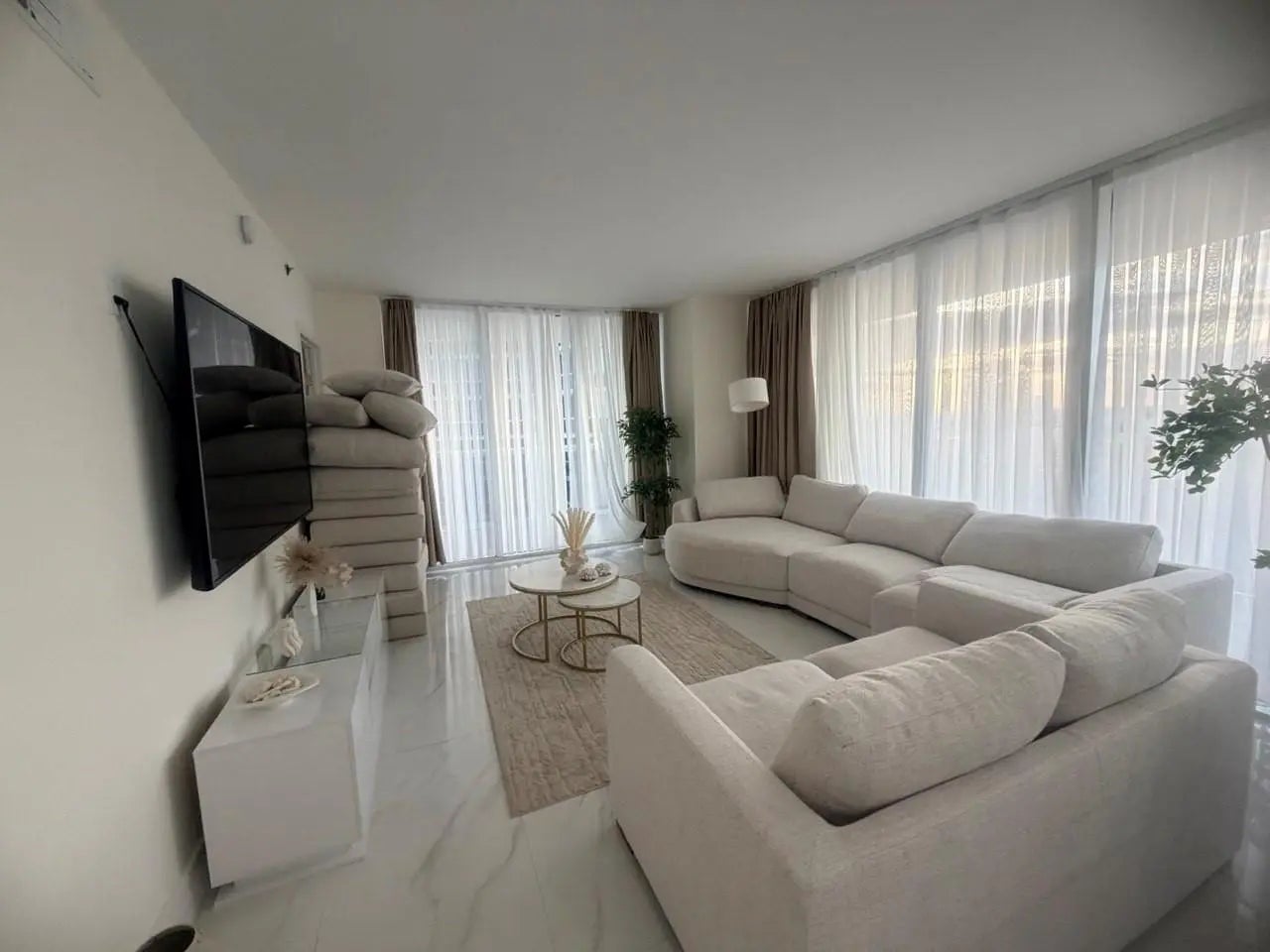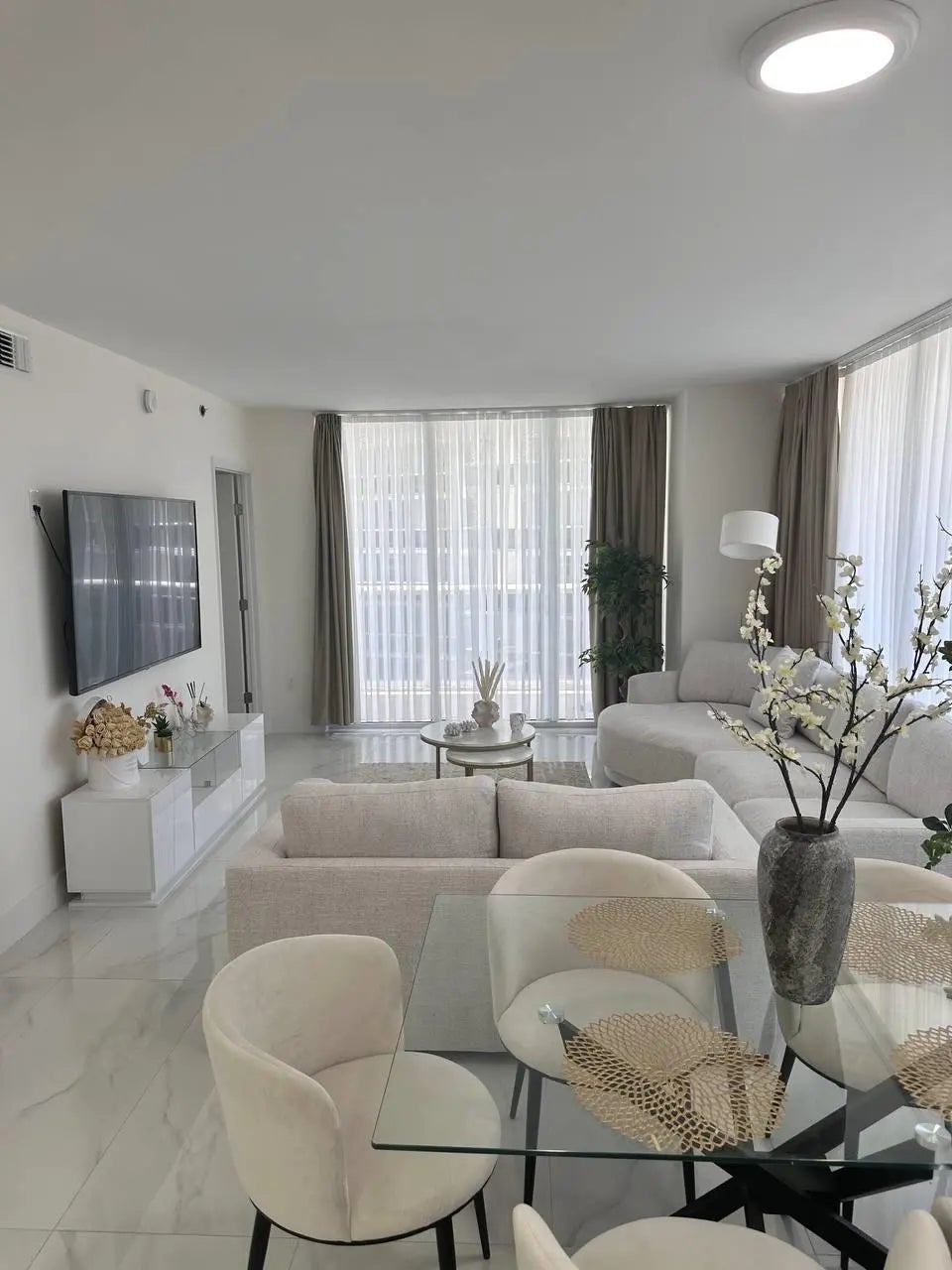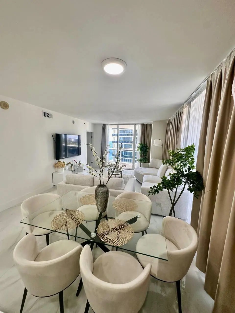 Available - May 2nd,2026! Rarely offered Southeast corner unit with wraparound balcony and breathtaking views of the ocean, Intracoastal, and city lights.This fully remodeled 2-bedroom residence features brand-new walls, floors, tiles, 2 elegant bathrooms, modern kitchen with high-end appliances, and all new furniture. Stylishly furnished and decorated, the apartment is move-in ready and stocked with everything - from 3 smart TVs and kitchenware to linens and essentials. Washer & dryer inside. Brand new furniture.Located in a resort-style oceanfront building with 50,000-sf spa, fitness center, on-site restaurant/bar, 5 heated pools and full beach service. Just bring your suitcase!The rent price is depending of the length and season, started from $7000+tax. Ask a price.MUST SEE!
