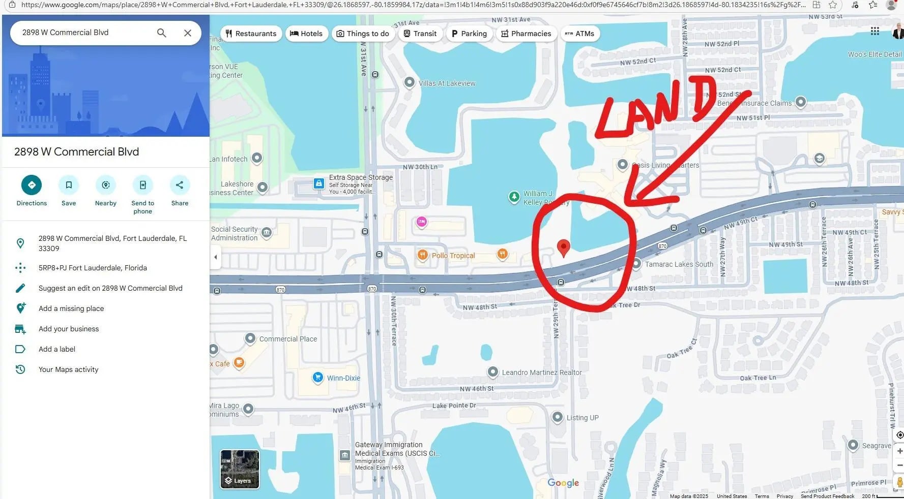 PRICE REDUCTION, MOTIVATED SELLER BRING OFFERS IN WRITING,LOCATION, LOCATION, LOCATION! This is the lot for that commercial project. 9,197 Sq ft of partially cleaned land facing directly into Commercial Blvd. In average over 53,000 vehicles passing by daily. Huge exposure. Commercial data indicates a high concentration of medical centers, Assisting living centers, Education and mix commercial services around this area. Broward county included this lot inside of the B-1 Zoning. Buyer needs to apply for the zoning change subject to proposed use. This is a gold mine for the right developer or investor. Seller is motivated. For zoning information follow the city of Fort Lauderdale Zoning Link on line and search on the future land use as B-1, currently Parks and recreation. vacant never built.