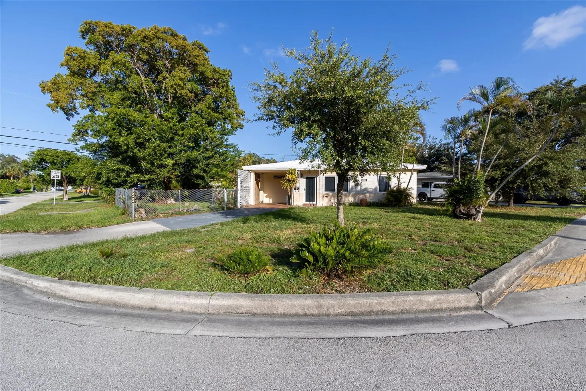 This charming, well maintained single story home sits on an oversized, fenced-in corner lot (7,341 sq ft) providing easy access to the spacious backyard with ample room for a pool and additional space for parking a boat or RV. Features include Impact Windows and Doors, a large, private Florida Room, Terrazzo floors, updated kitchen, Carport, New Central A/C, Utility Room with W/D hookups and space for additional storage, updated sewer. Conveniently located between Prospect and Commercial Blvd this home is only 3.4 miles to beaches in Lauderdale By The Sea and even closer to area shopping, highways, rail transportation, medical facilities, schools and Airports. Concrete tile roof professionally cleaned and sealed annually. Sprinkler system on well water. No HOA and No Rental Restrictions.