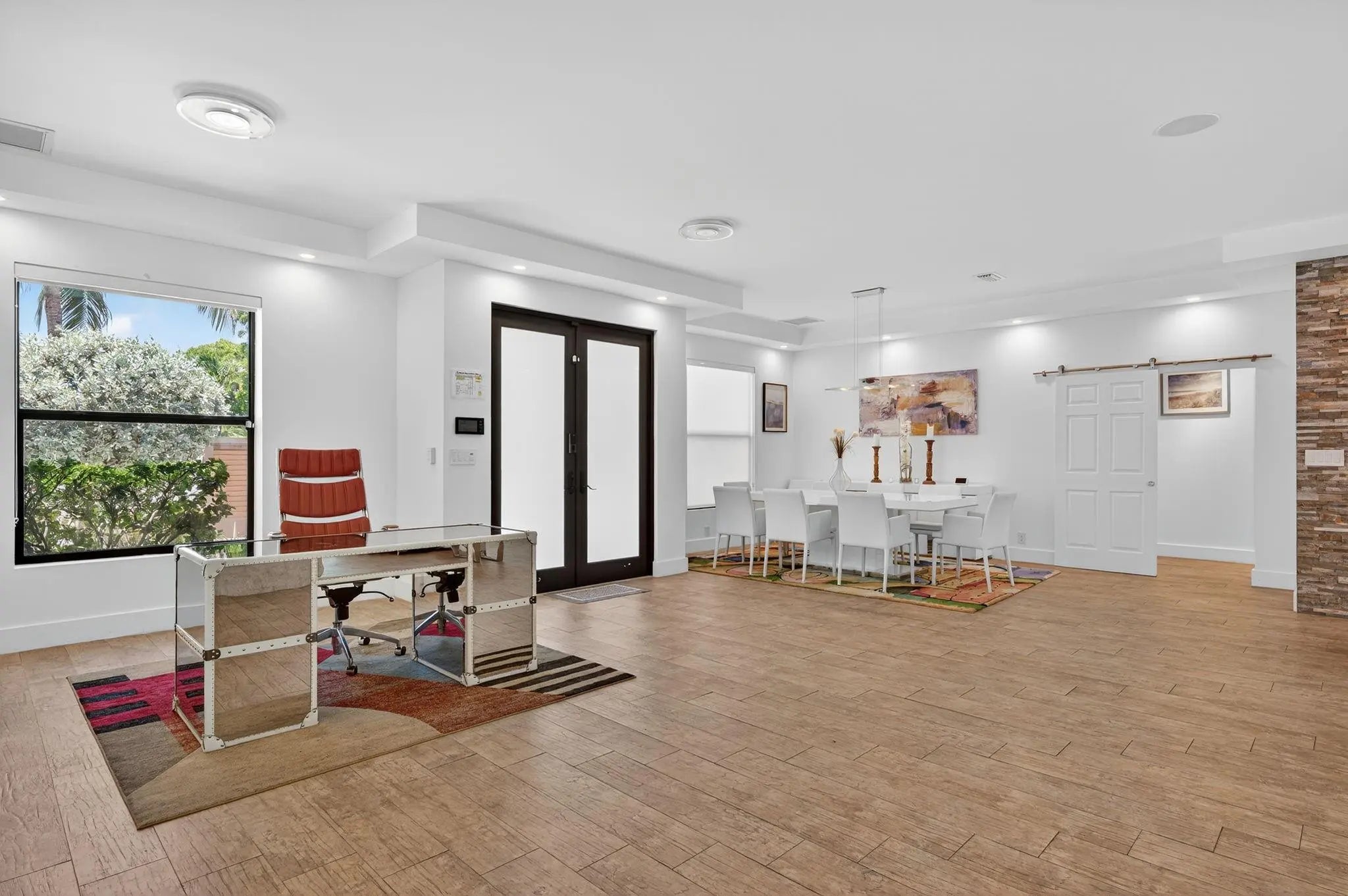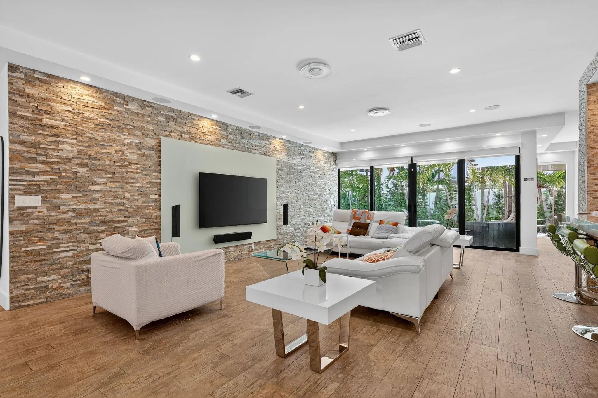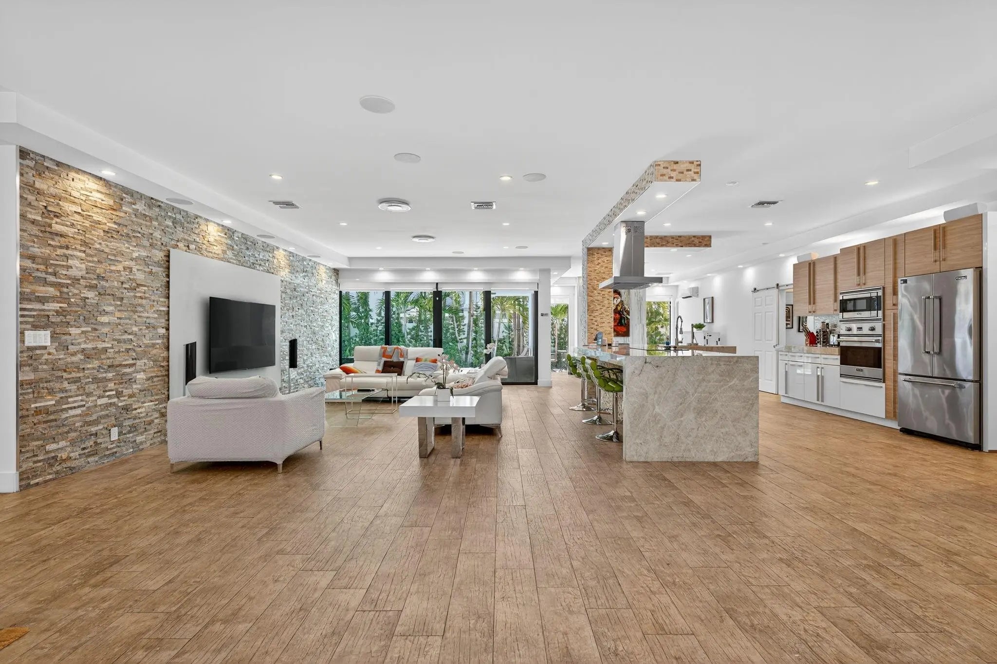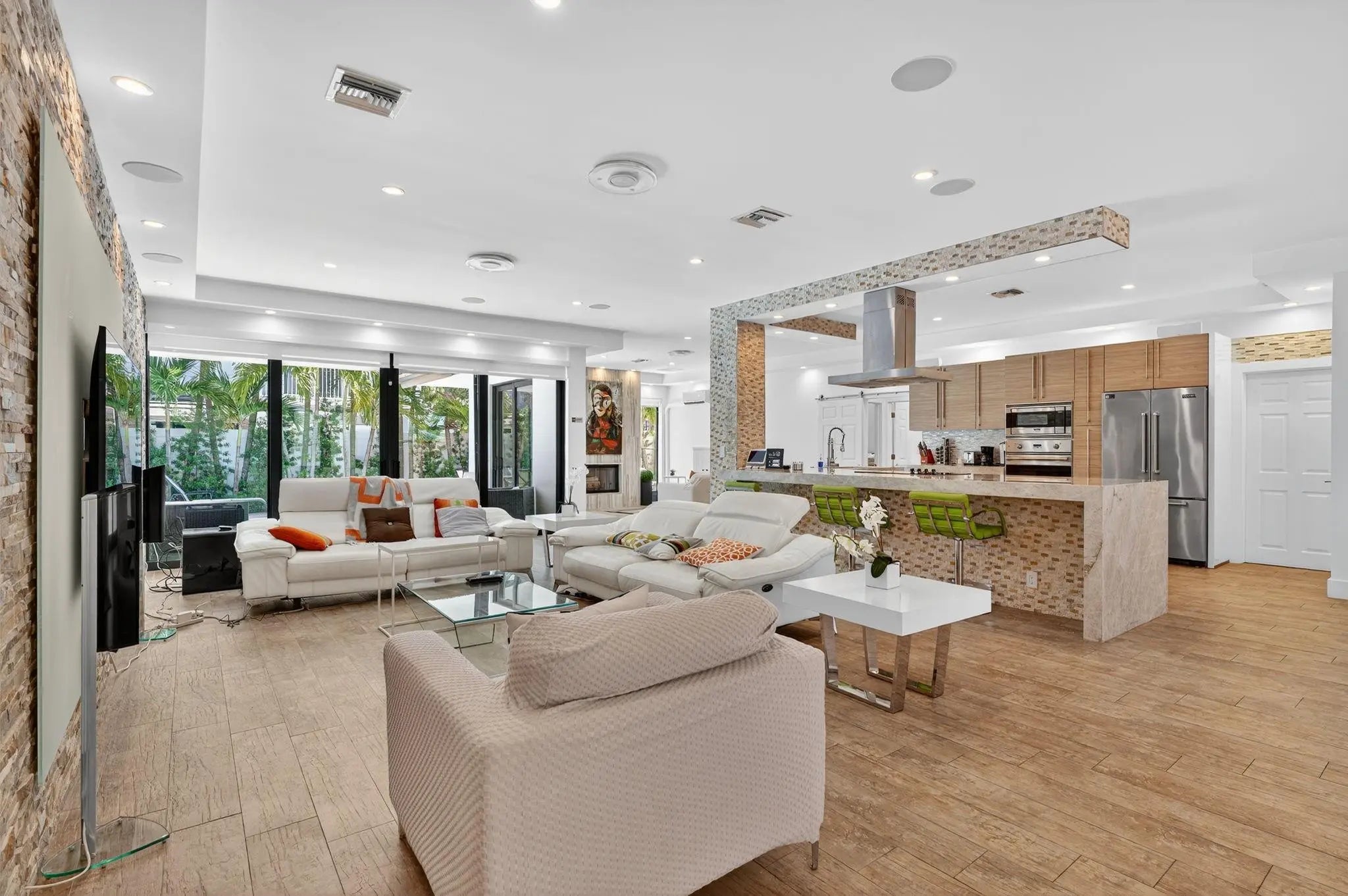 Stunning modern home in prestigious Coral Ridge Country Club! Features 10 ft ceilings, wood plank tile, impact windows/doors, metal roof, and open concept layout perfect for entertaining. Private gated courtyard entry. Chef’s kitchen with quartz island, Viking appliances, induction cooktop, and wine cooler. Living room boasts stone accent wall and wood-burning fireplace. Split floor plan with luxurious master suite offering steam shower, separate tub, and blackout shades. Heated pool with travertine patio, fenced yard, and storage sheds. Just minutes to the beach, shopping, and dining!