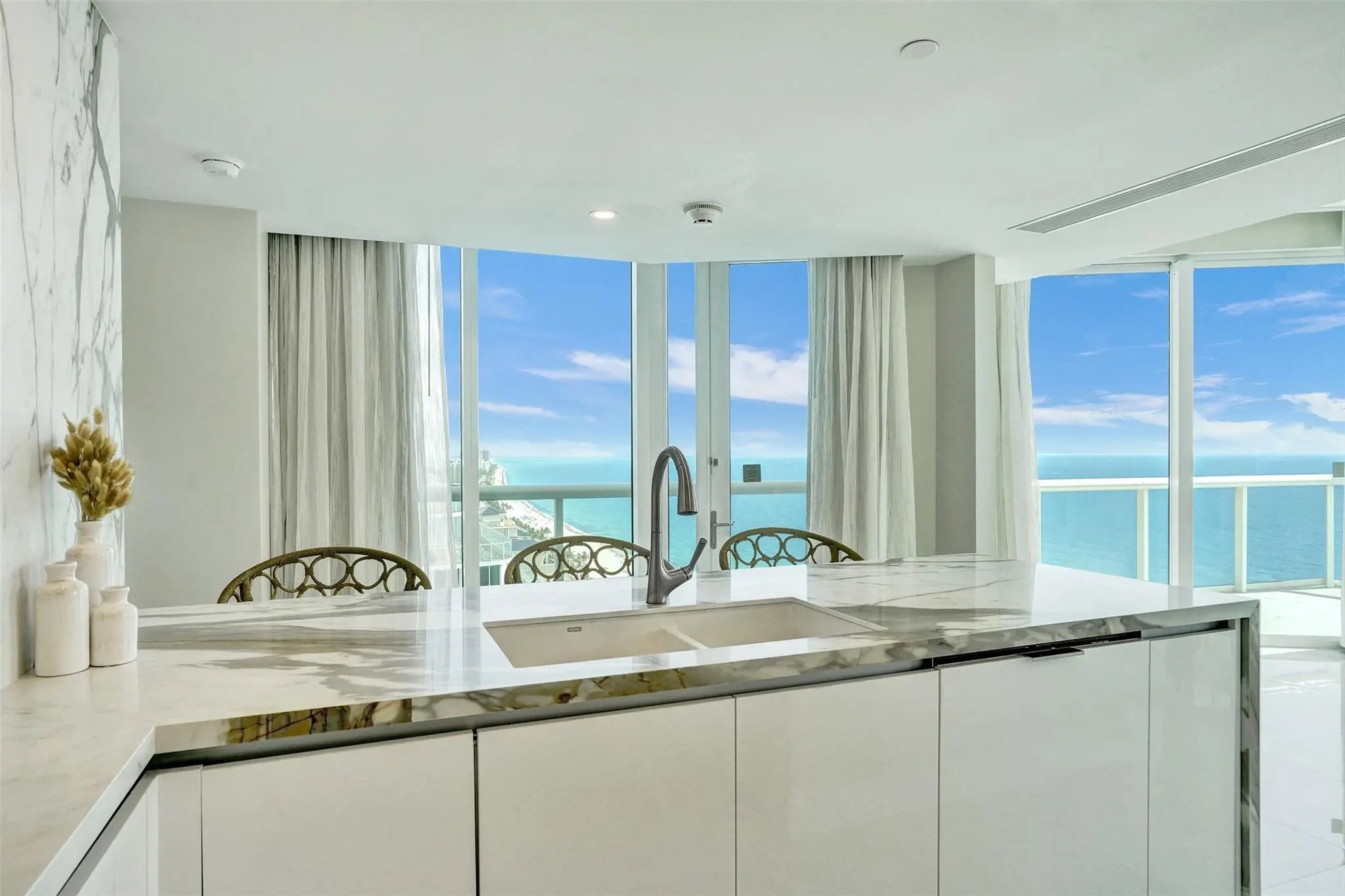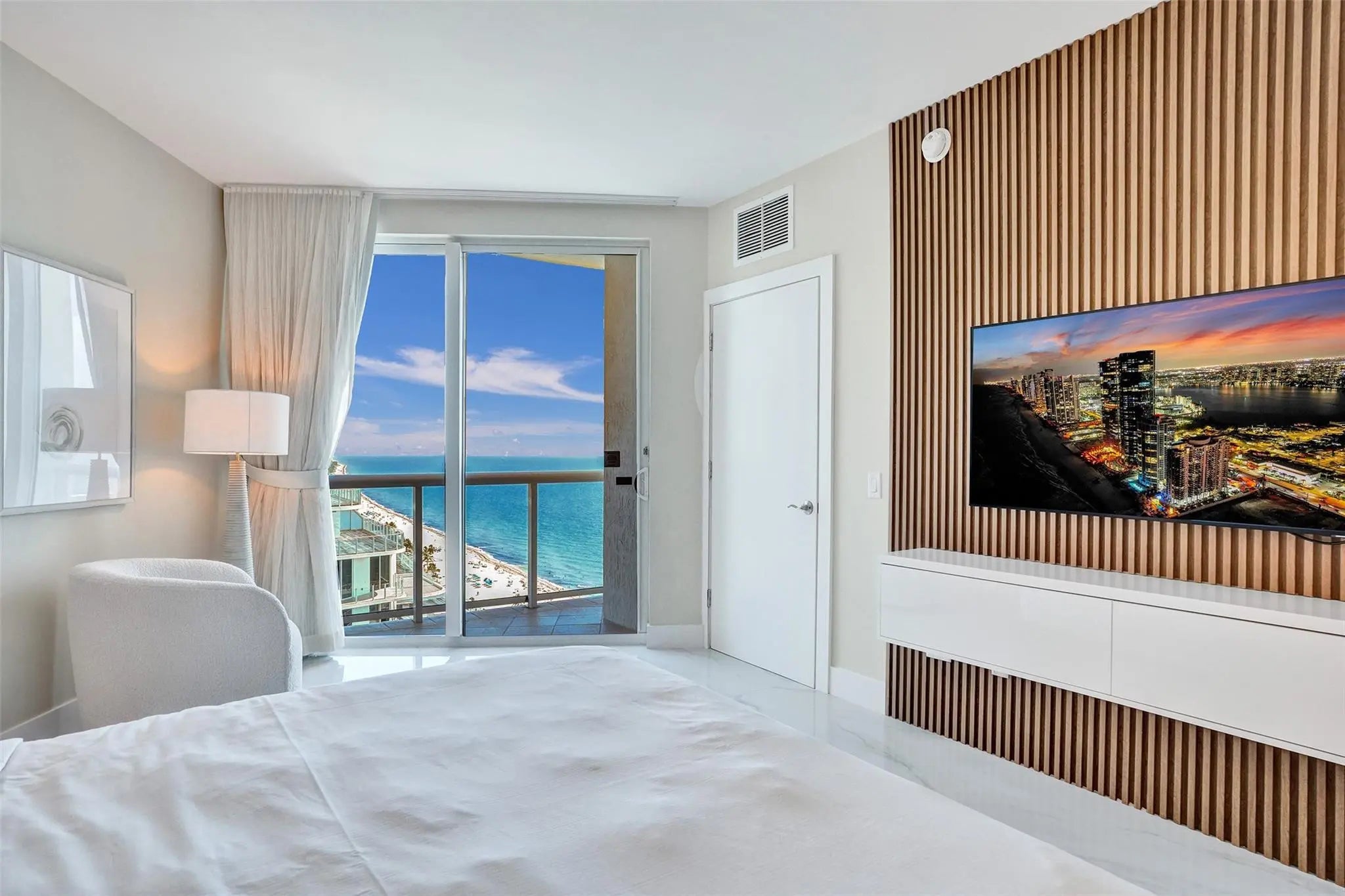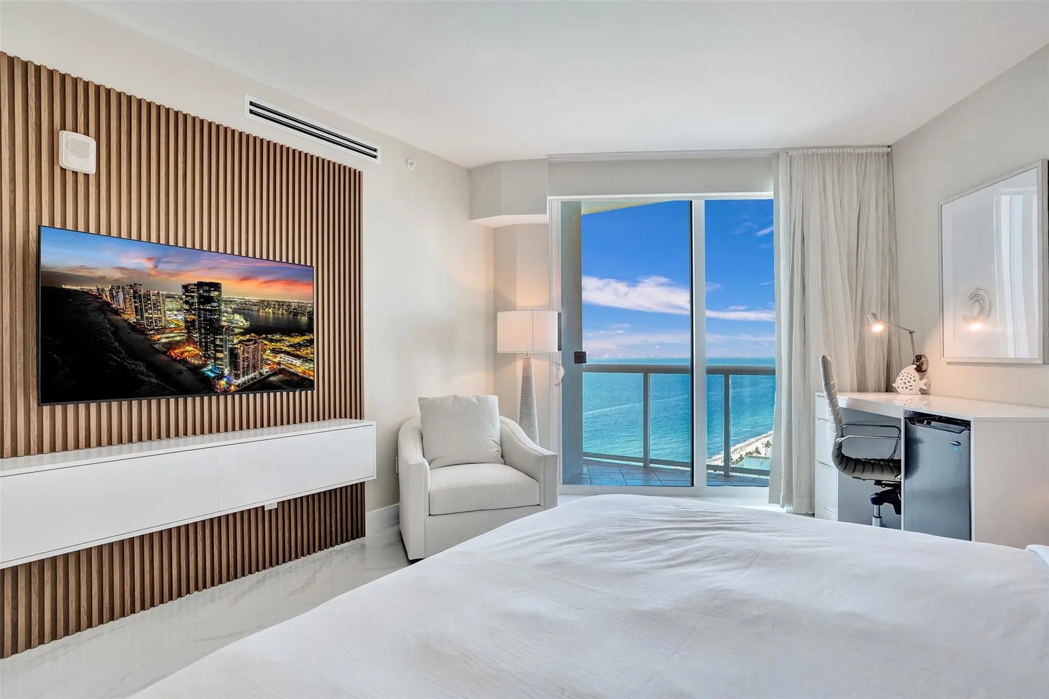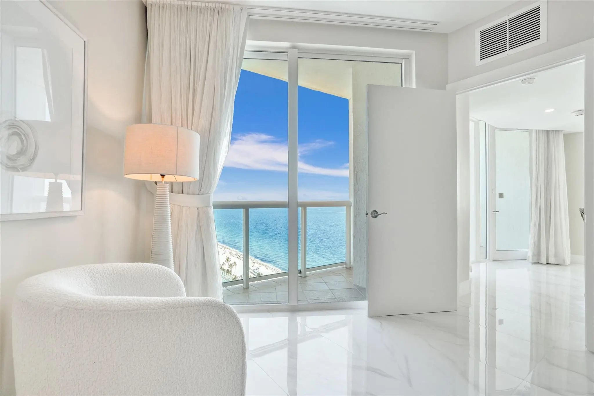 OCEANFRONT PENTHOUSE in the BEACH HOUSE / HILTON. Experience luxury coastal living in this fully renovated three bedroom condo\hotel where every bedroom opens onto a private balcony. This brand new fully furnished residence offers unmatched, unobstructed ocean views from every room. Floor to ceiling windows, flooding the space with natural light and breathtaking views of downtown and intracoastal. Wake up to tranquil blue of the Atlantic and wind down with beautiful sunsets over downtown, and the sparkling Intracoastal waterway. From the comfort of every room watch parasailers drift across the sky and yachts cruise by. With generous square footage and flowing layout, this penthouse is perfect for hosting elegant cocktail parties, client receptions, or entertaining family from out of town.