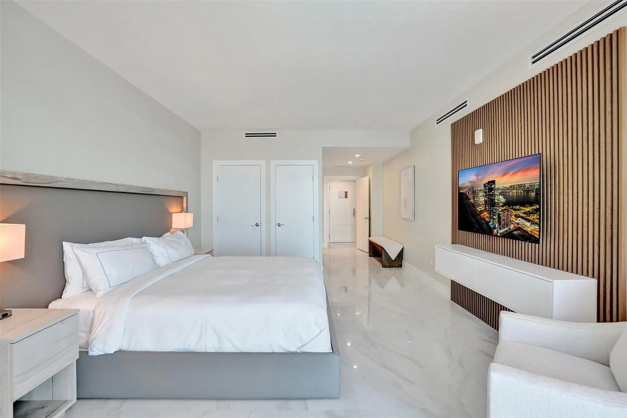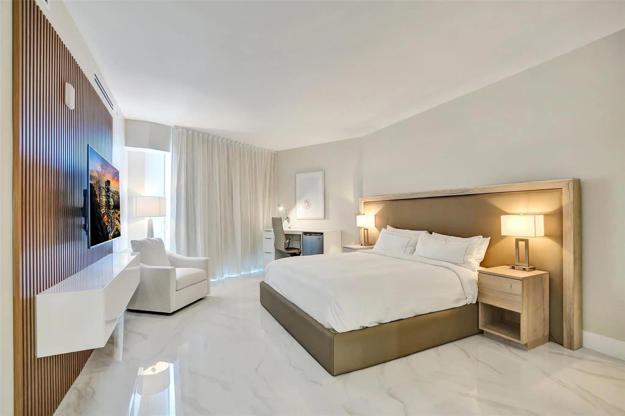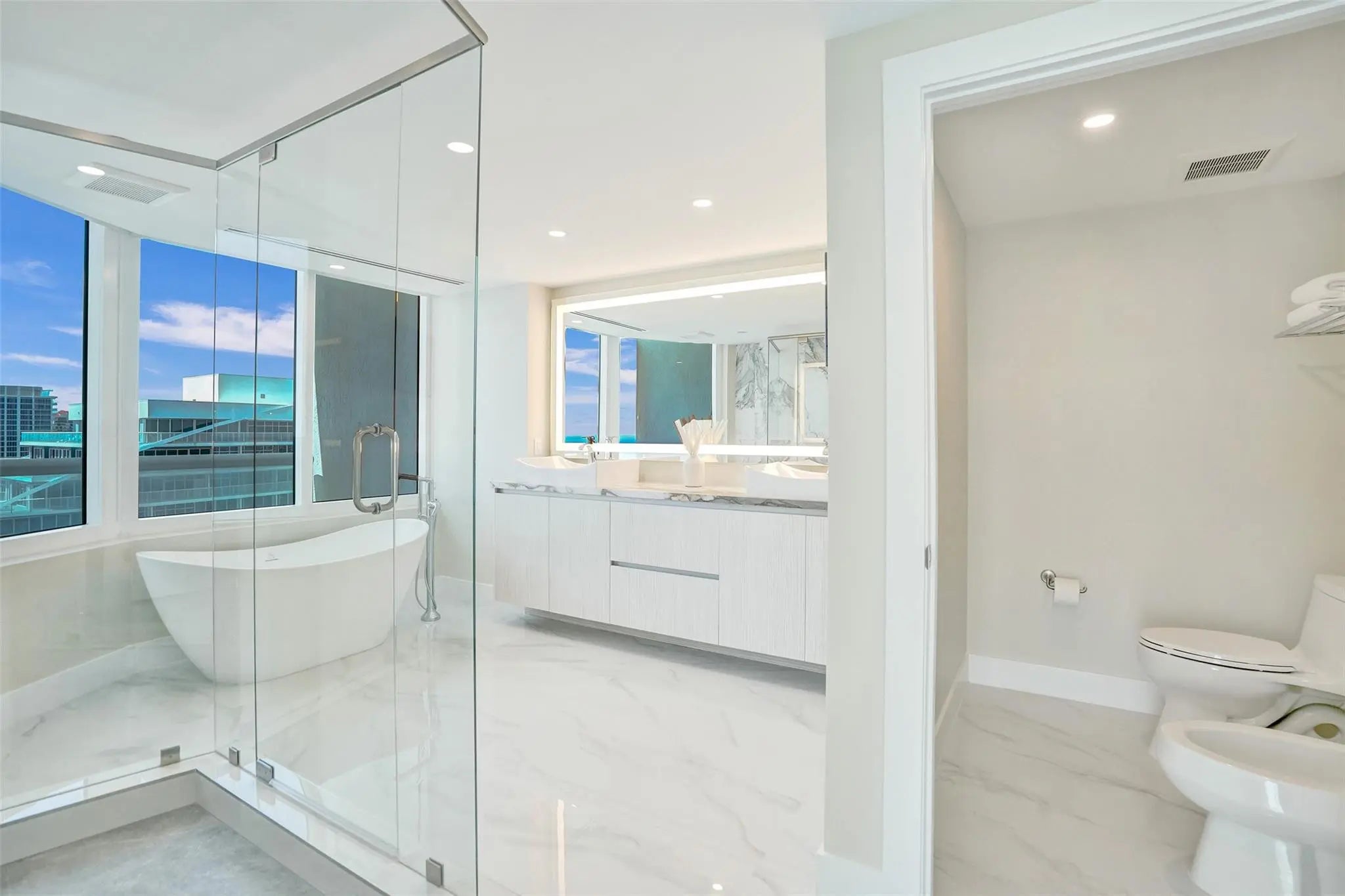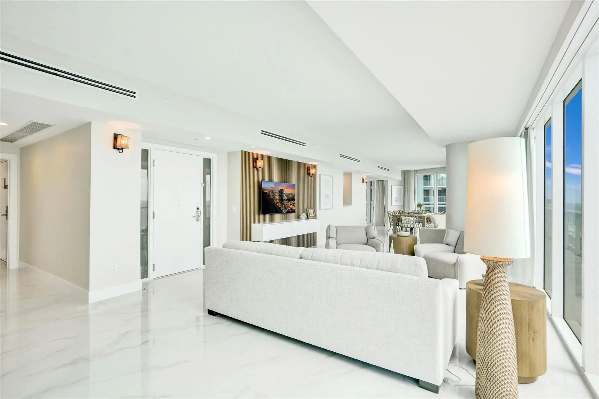 OCEANFRONT PENTHOUSE in the BEACH HOUSE / HILTON. Experience luxury coastal living in this fully renovated three bedroom condo\hotel where every bedroom opens onto a private balcony. This brand new fully furnished residence offers unmatched, unobstructed ocean views from every room. Floor to ceiling windows, flooding the space with natural light and breathtaking views of downtown and intracoastal. Wake up to tranquil blue of the Atlantic and wind down with beautiful sunsets over downtown, and the sparkling Intracoastal waterway. From the comfort of every room watch parasailers drift across the sky and yachts cruise by. With generous square footage and flowing layout, this penthouse is perfect for hosting elegant cocktail parties, client receptions, or entertaining family from out of town.