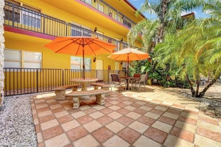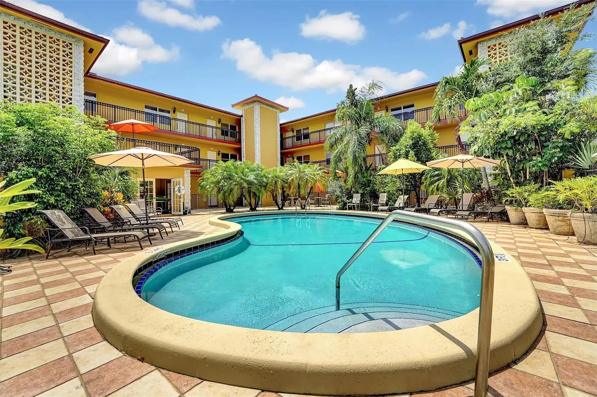 INVESTMENT PROPERTY 2 bed/2 bath 1st Floor Corner Unit W private patio in Boutique Building Situated in Desirable Victoria Park! Walk right out your door to the pool. Meticulously maintained unit features newer tile floors throughout, BRAND NEW 2024 fixtures, crown molding, built-in closet systems and updated kitchen with granite counters & SS appliances. Beautiful French doors lead out from living area to private spacious patio, great for entertaining and barbecuing! 2 ASSIGNED PARKING SPACES AND Washer/Dryer IN UNIT. appliances new within last 2 years. Gated PET friendly building with private tropical pool area across the street from Holiday Park. Restaurants! Rented to Jan 2027