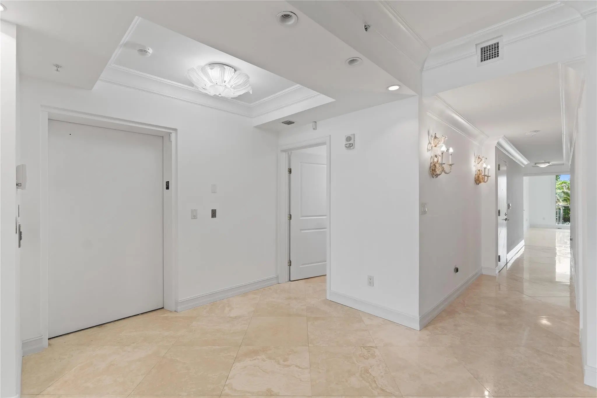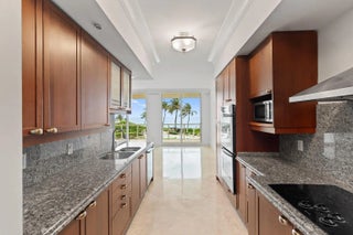 Welcome to Residence 203, a spacious oceanfront gem offering 2 BR, 2.5 BA, and 2,800 sq. ft. Step off your elevator into a home designed for comfort and sophistication. Features include marble flooring throughout, a gourmet kitchen with custom wood cabinetry, granite counters, and premium appliances. A built-in bar with wine cooler and sink elevates your entertaining space, while the large balcony delivers sweeping views of the Ocean and ICW. Ocean Grande offers a newly reimagined lobby, private beach access, pool and spa, boat dockage, and one of the most pet-friendly luxury communities along the beach. This residence is move-in ready, making it one of the most attractive opportunities on the market today.