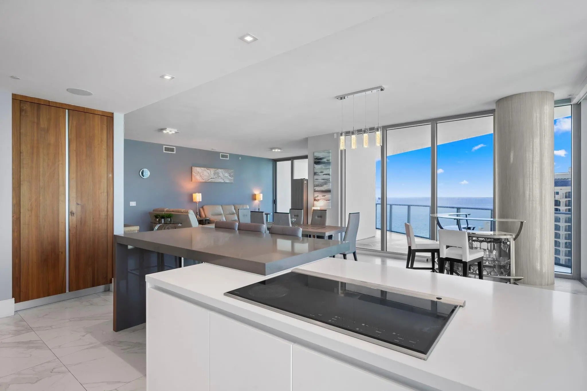 Command the Very Best Ocean, Intracoastal, and City views from this rare highest-floor SW CORNER residence available, where soaring ceilings and a private foyer entrance create true exclusivity. From Sunrise over the Atlantic to Sunset across the water and skyline, every room is filled with natural light and sweeping Views! This 3-bed/3.5-bath home features a wraparound terrace ideal for coffee at dawn or sunset entertaining. The open kitchen showcases a waterfall island, Sub-Zero & Wolf appliances, and refined finishes. Floor-to-ceiling glass, recessed lighting, and motorized shades enhance the design. Paramount offers boutique privacy and resort-style amenities, just steps from the sand, dining, and entertainment. Turnkey option available. Schedule your showing today!