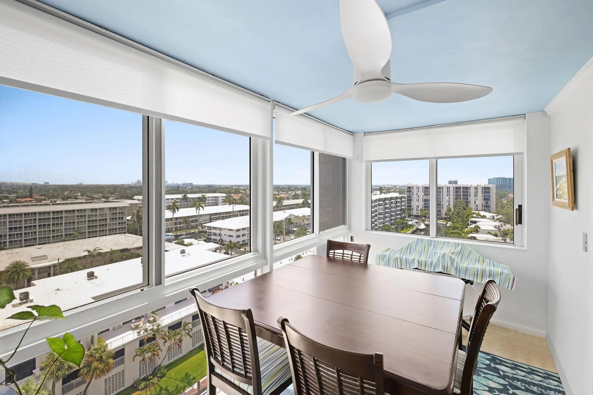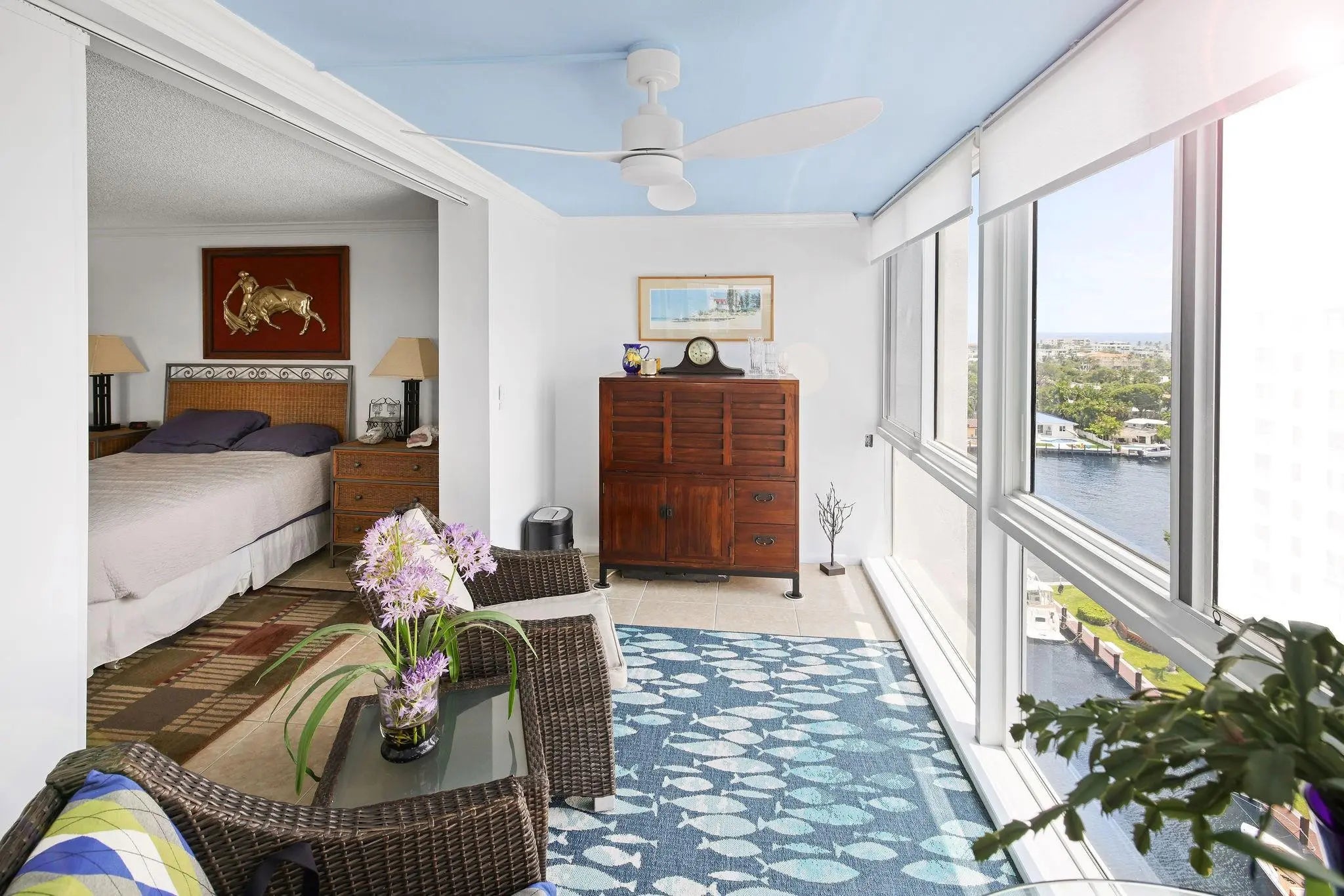Views from every window! Large SW corner penthouse condo located steps away from the Commercial Blvd bridge entrance into LAUDERDALE BY THE SEA. New kitchen, floor to ceiling impact windows, and recent bathroom updates. Only one neighboring condo next door is divided by a solid concrete block wall, providing excellent sound insulation from next door. No neighbor above! Garage parking and ample guest parking. Common area, no fixed bridge/ deepwater dockage is available. Small pets are welcome. Building went through extensive concrete restoration and the roof was replaced in 2025. Great walkability to many restaurants, services and to the beach. Amazing sunsets and downtown views to the southwest and views to the ocean above 3 story height restricted, LAUDERDALE BY THE SEA, to the east.