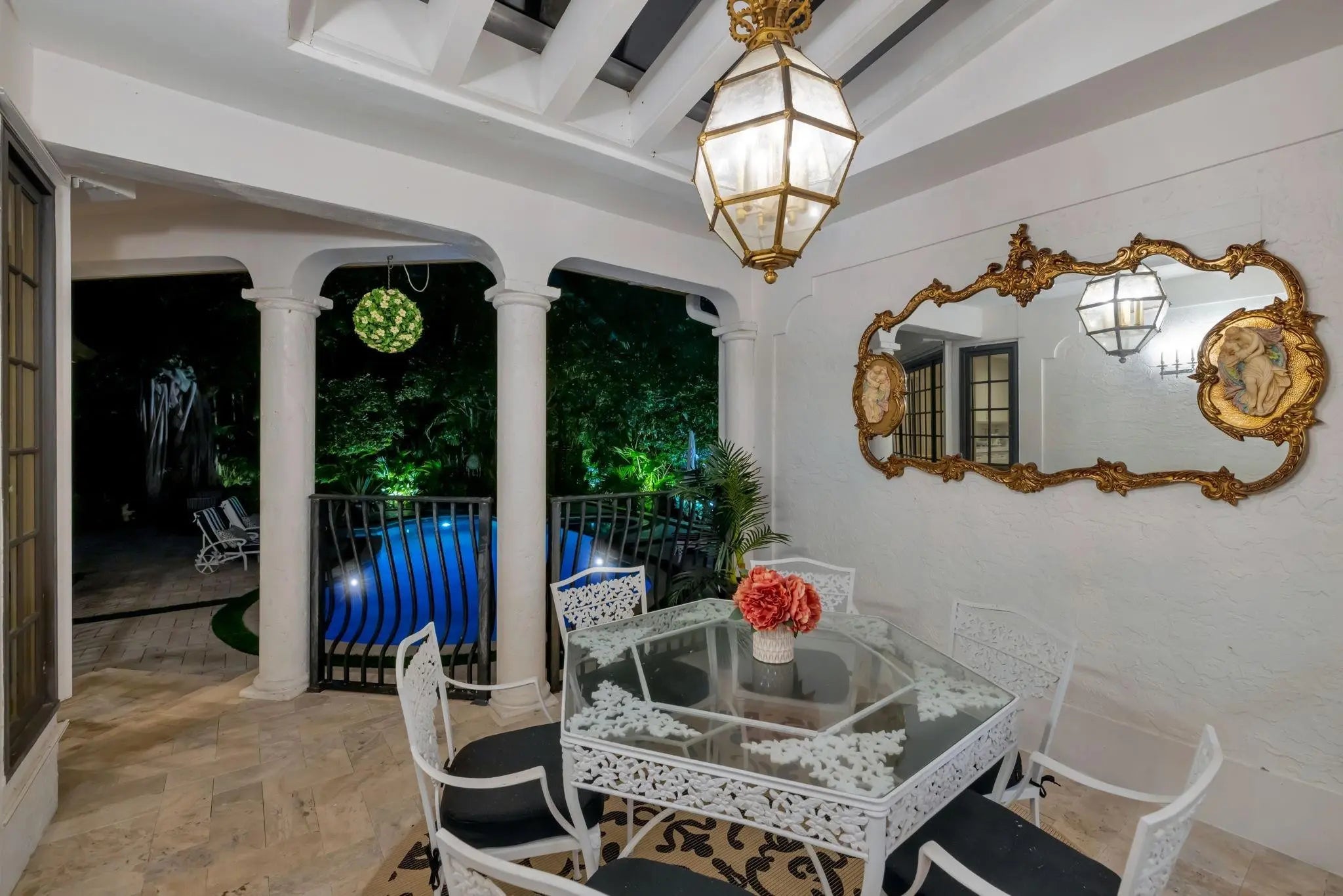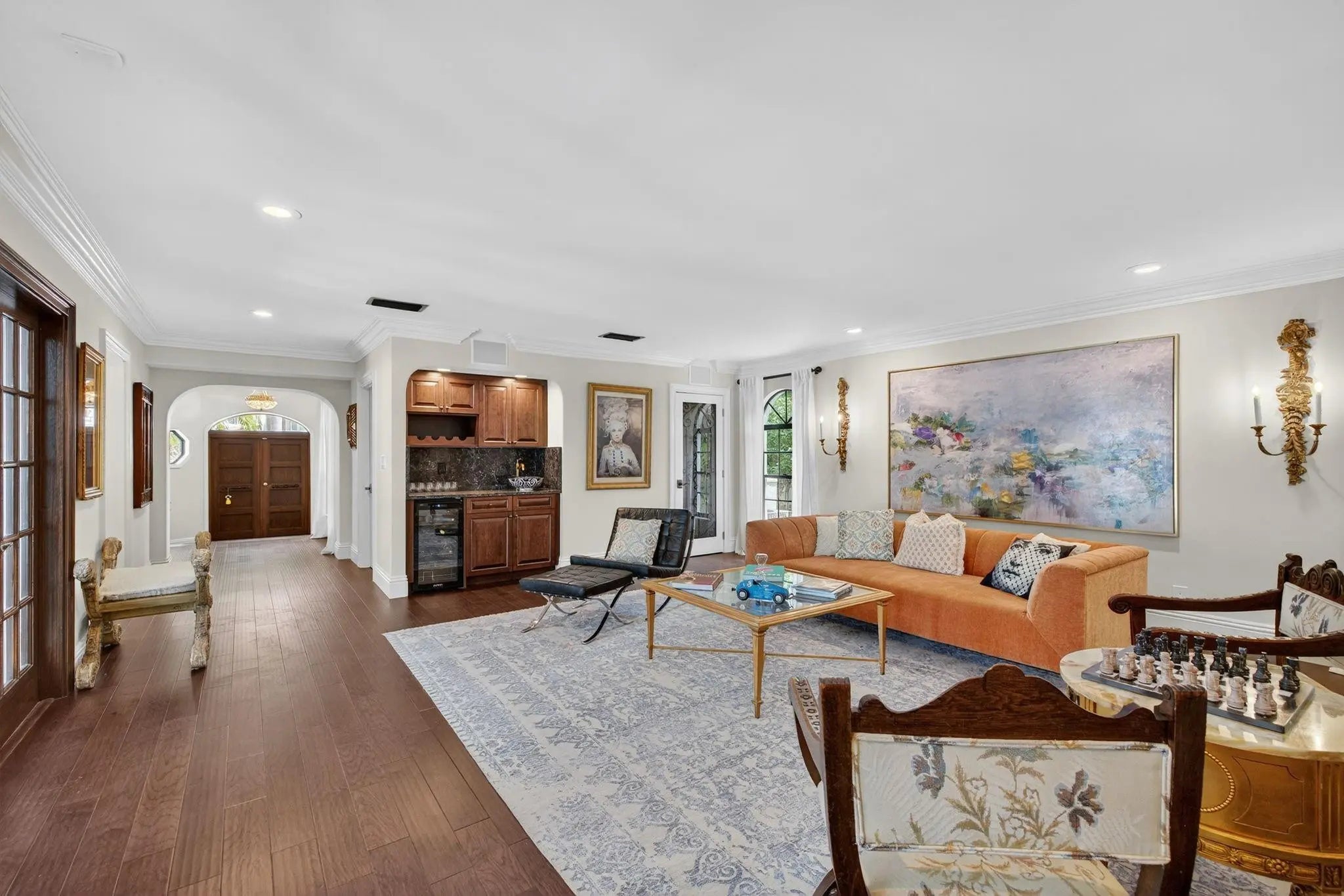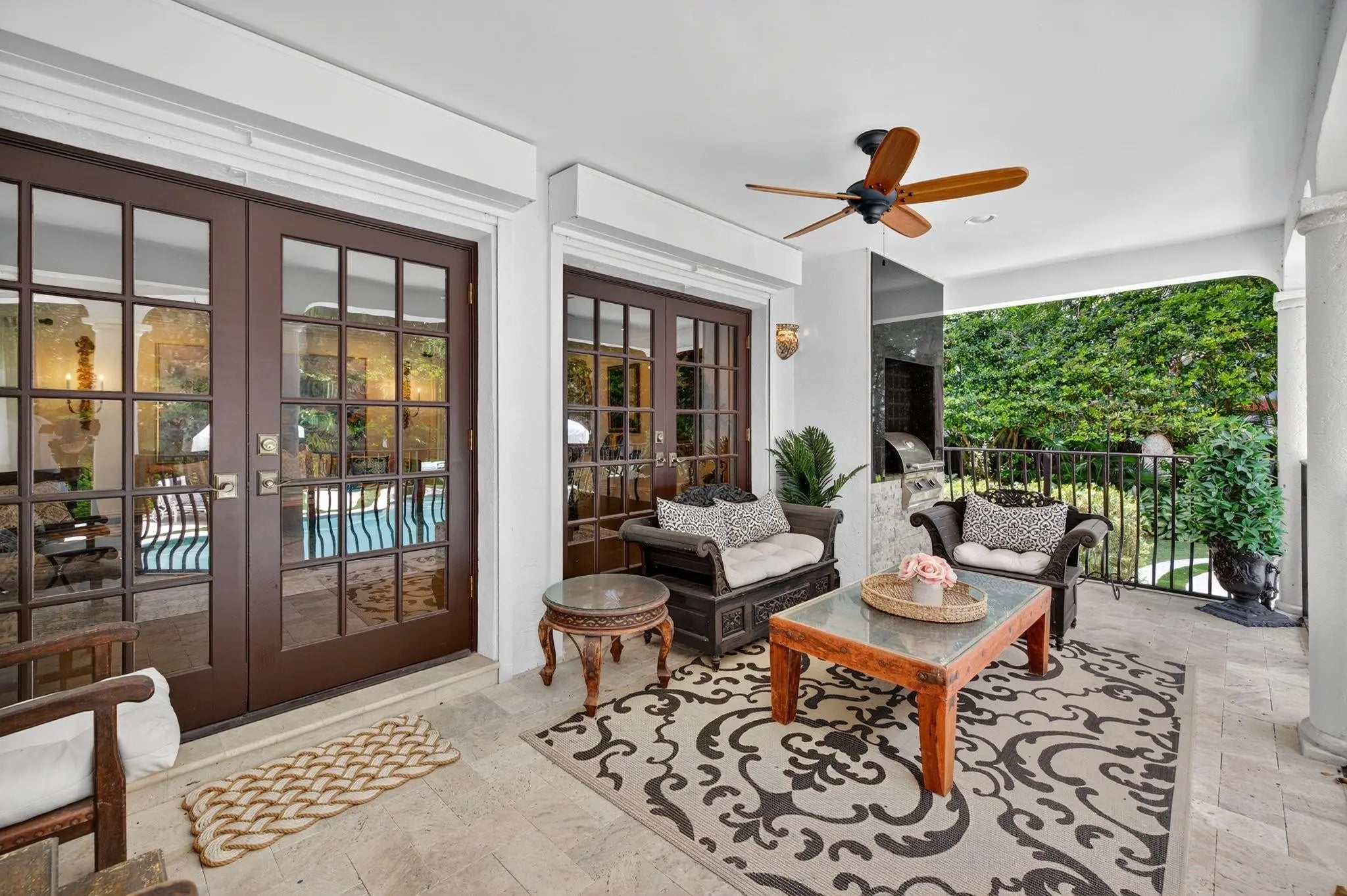 Palm Beach inspiration provides charm and elegance to this professionally designed and decorated tri level residence. 1974 expansion and 2024 renovation. Villa Acacia occupies double 15,000sf tropically landscaped property. Walled and gated for privacy and security in patrolled Idlewyld. Stunning retreat with exceptional entertaining flow. Formal living room with fireplace, wine cellar, wet bar and access to expansive covered terrace and summer kitchen. Guest bath, chef's kitchen with breakfast area, formal dining room and TV living room with beams access second terrace. Split bedroom plan offers privacy to primary suite with sitting area, spa styled bath and custom closet. Two additional bedroom suites. Resort style pool and lawn area must be seen. Selected furnishings are negotiable. * Imported Spanish tiles in foyer* Reverse osmosis water filtration* Temperature controlled wine room* Three separate air conditioners* Two tankless water heaters* Generator & EV Charger* Wood Floors Throughout* Heated Salt Water Pool* High beamed ceilings & authentic light fixtures* Primary suite has private balcony* Remote controlled electronic gate* Owner has plans for second floor addition