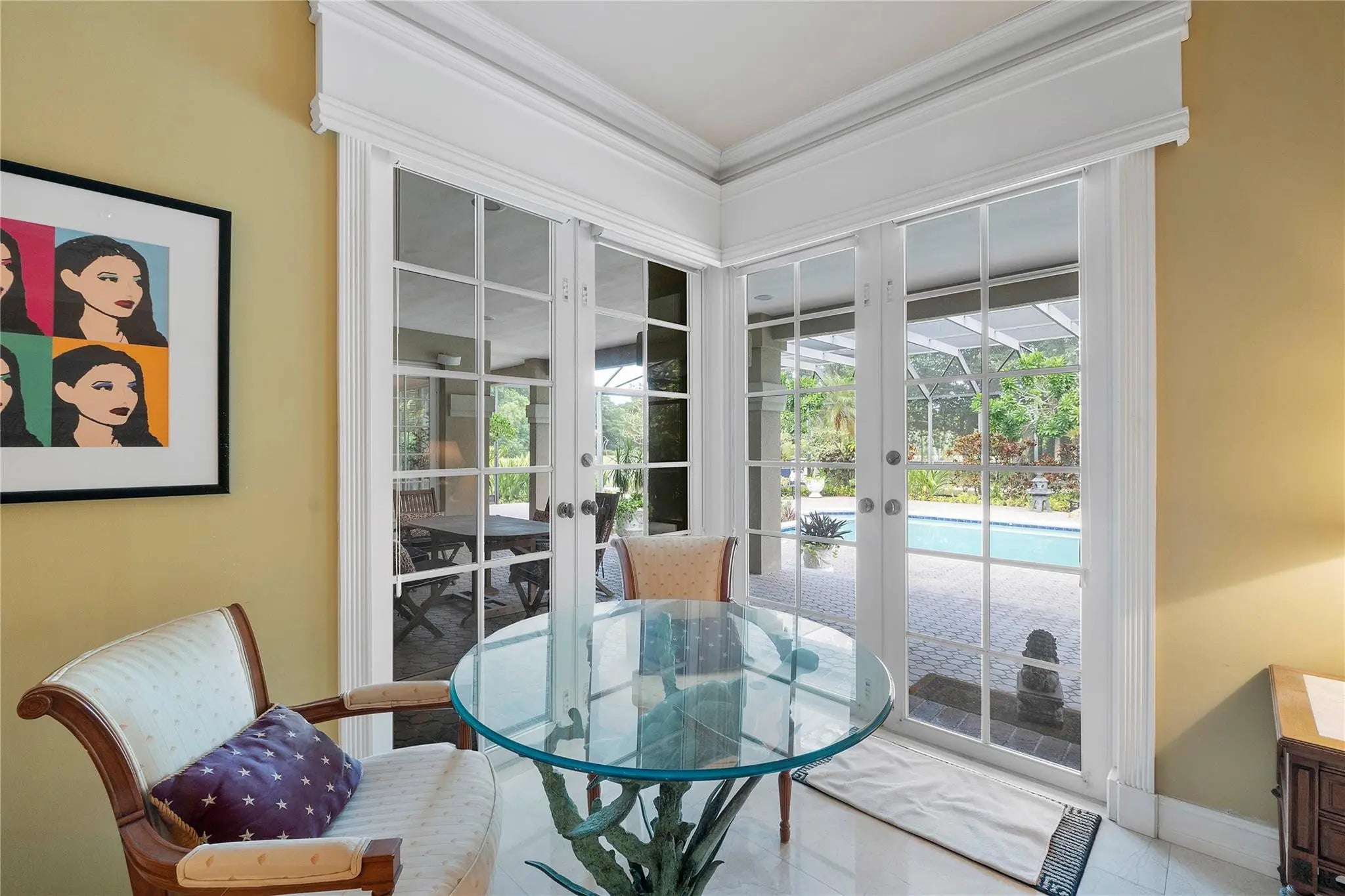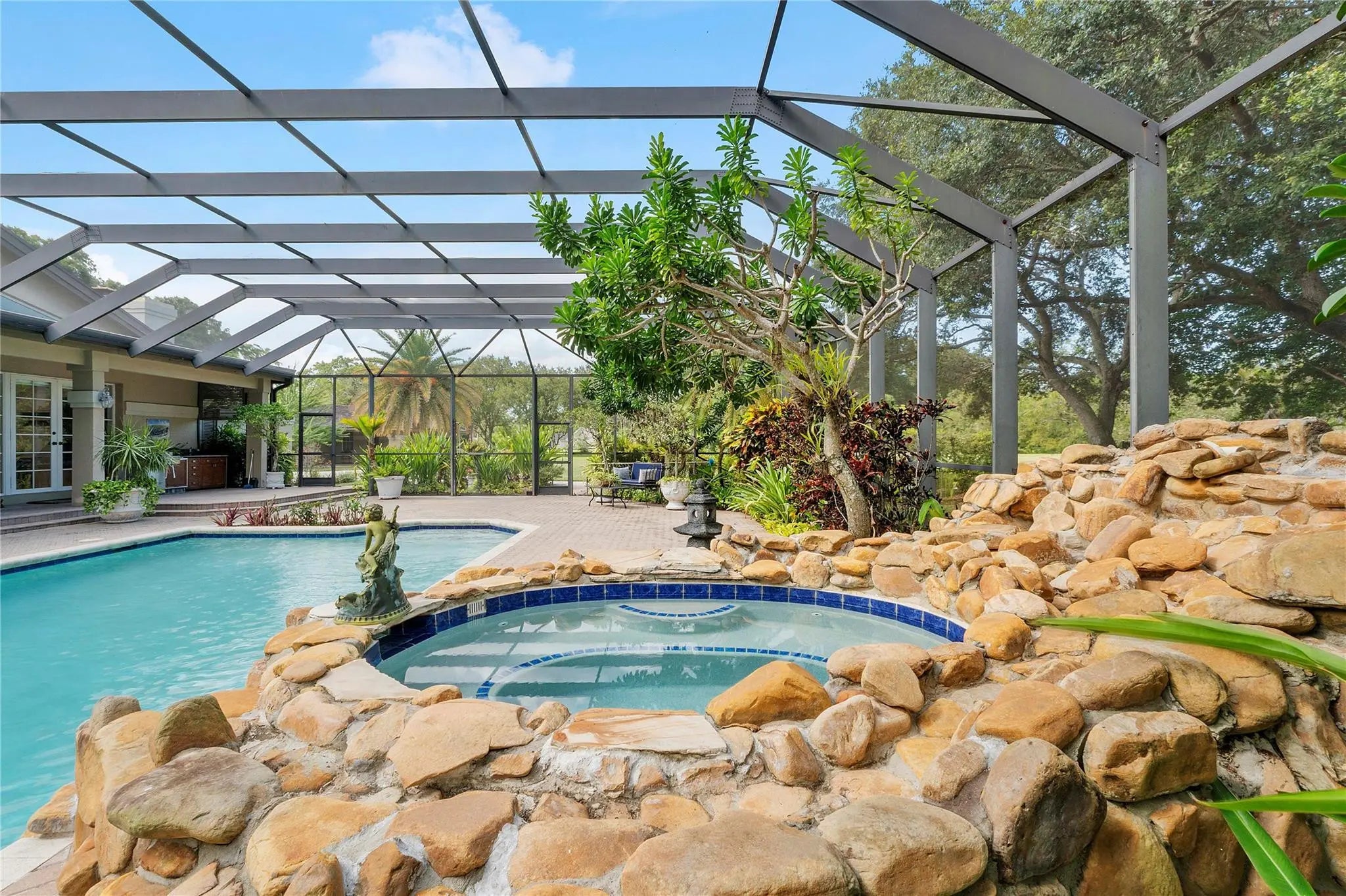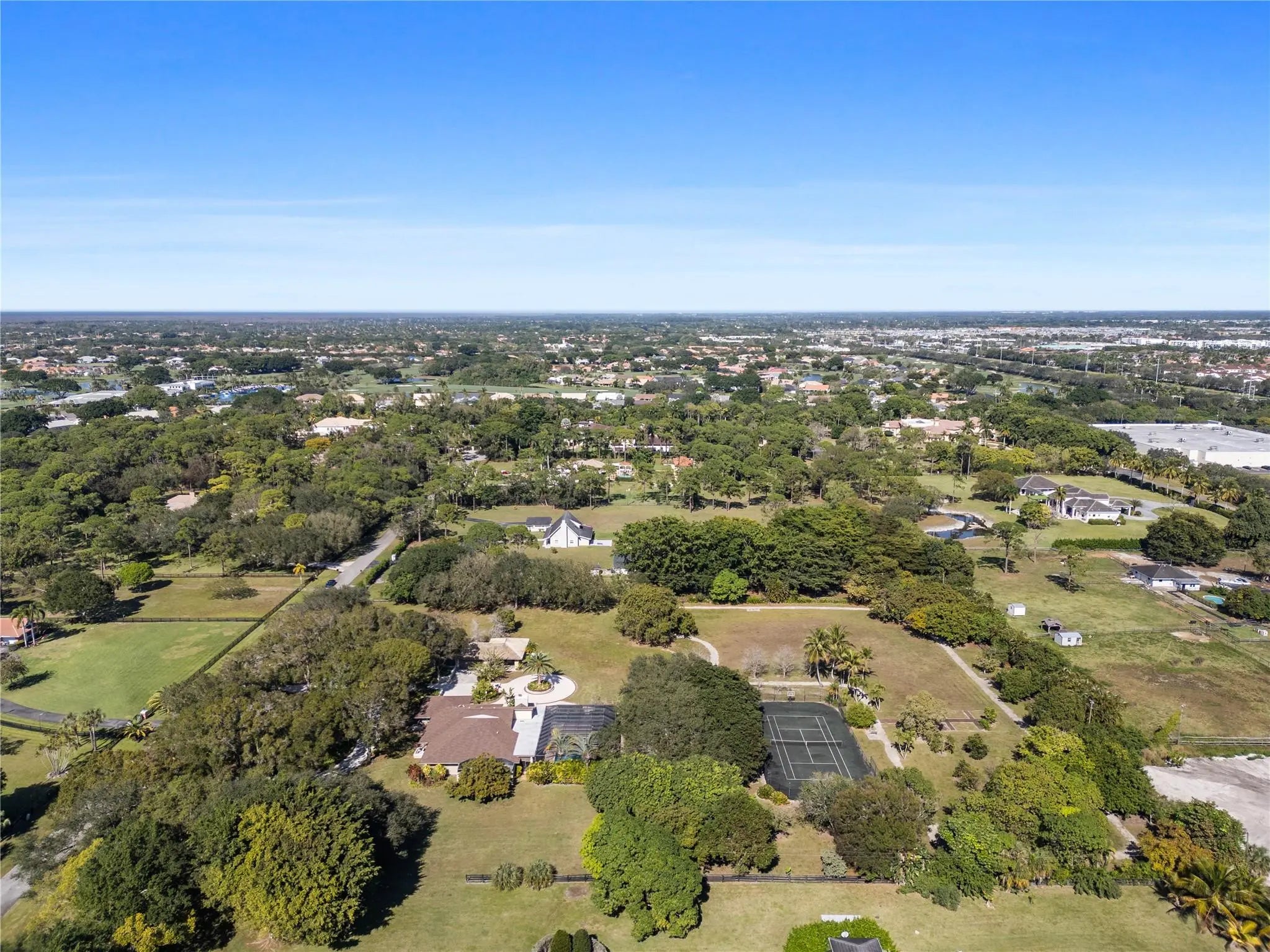 Nestled on over 5 lush acres, this private estate offers luxury and tranquility behind a double-gated entrance. The 3-bedroom, 3-bathroom residence features elegant marble floors, a cozy wood burning fireplace, and all impact windows for peace of mind. A 6-car garage provides ample space for vehicles and storage. NEW ROOF(2023) in main house. FULL HOUSE GENERATOR. Outdoors, enjoy a resort-style pool with spa, summer kitchen, and a serene gazebo. Stay active with a tennis court, exercise station, and scenic track. The grounds are dotted with mature fruit trees, blending beauty with bounty. This property is a rare blend of sophistication, privacy, and lifestyle—perfect for those who crave space without sacrificing comfort.