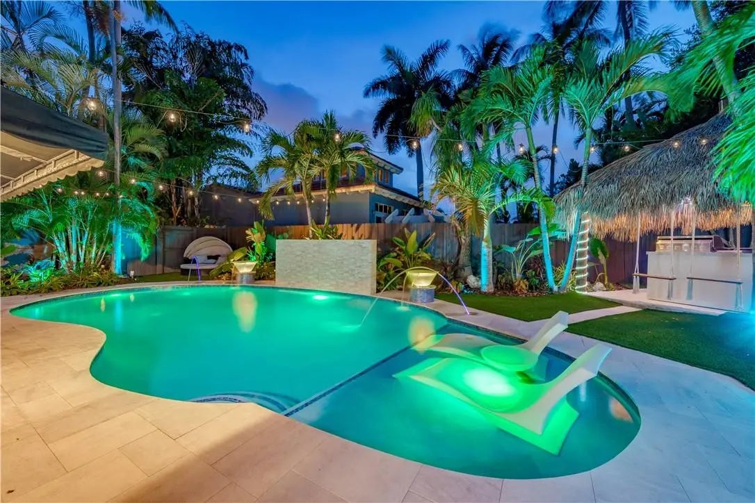 This Fully Appointed Vacation Rental. Pricing is Based on Desired Dates. This is an Urban Oasis that has OVER 500K in upgrades, including luxury touches, such as: high gloss reflective ceilings creating a unique living space, which complement the thoughtful décor and gorgeous accent walls. Smart home comes with power blinds and voice controlled lighting and audio. Swimming pool with a 5ft tall, 8ft wide waterfall, 2 Pentair Magic Bowls, a tanning shelf, two ledges and built in cooling fog machine. Gorgeous landscaping crafted by a celebrity landscaper, tiki hut, high end BBQ island, swing bar seats and hammock. Water filtration system. Walk or bike to everything - Beach/Las Olas/A1A Strip/FLIBS/Tortuga & MORE!! Rates vary based on dates/availability. Share dates, # occupants, # pets.