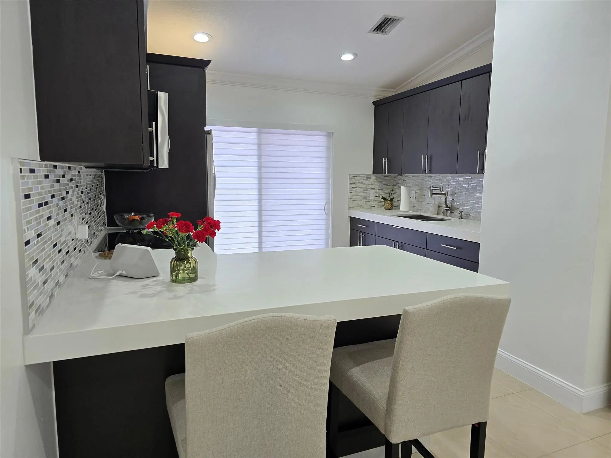 This move-in ready condo in Hialeah offers a modern and convenient lifestyle with impact windows, plantation shutters, LED lighting, and freshly painted white walls that enhance its brightness. It features an in-unit LG and Samsung washer and dryer, built-in cabinets for added storage, a digital thermostat, and a tankless water heater for efficiency. The kitchen is equipped with stainless steel appliances and quartz countertops, making it a stylish and functional space ideal for comfortable living.
