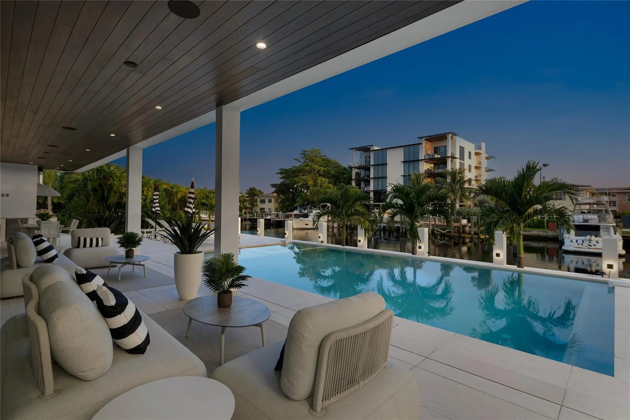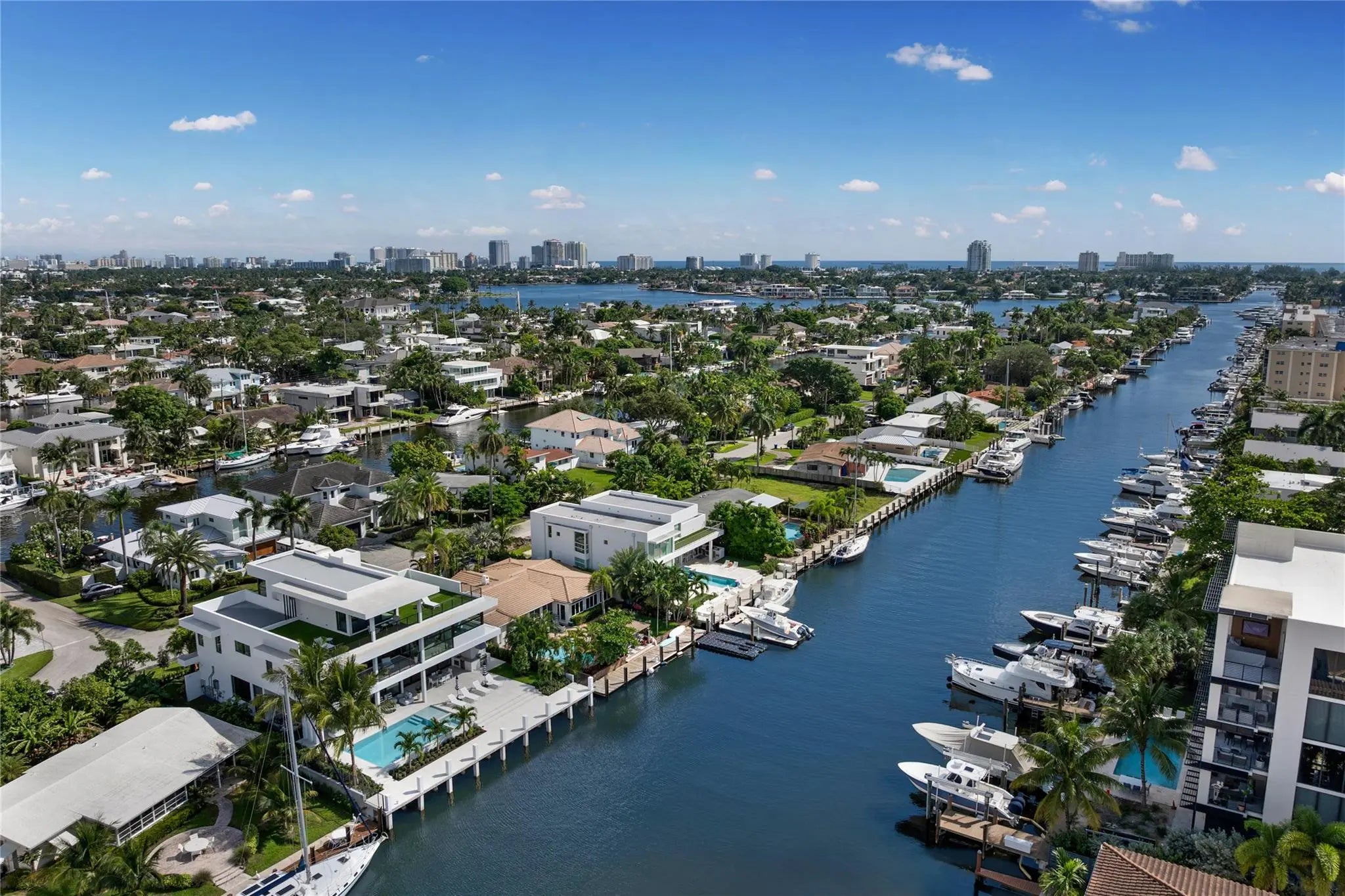A bold statement of modern luxury, this newly completed residence offers 80 feet of deep water on a wide canal, ideal for most yachts. No fixed bridges with ocean access in minutes. Located in the exclusive enclave of Lauderdale Harbors, minutes from downtown, dining, shopping, and major airports. A soaring three-story entry with sweeping water views, five en-suite bedrooms, eight bathrooms, and a third-floor club room that can serve as a sixth bedroom or office. Highlights include an under-lit floating staircase, three-car garage with lift capacity for six cars, a chef’s kitchen featuring top-of-the-line Miele appliances and a gas stove. Enjoy indoor-outdoor living with a heated saltwater pool, spa, kitchen, outdoor shower, cabana bath, a new elevated concrete seawall and dock. Immerse yourself in a world of unrivaled elegance and modern sophistication. Perfectly positioned in the heart of Ft. Lauderdale, this newly completed modern masterpiece-built by Stenmark Builders, in collaboration with Slate Development, ensures that every element has been thoughtfully designed, carefully executed, and finished to perfection. The ultimate expression of luxury living for those who demand only the very best. Minutes from downtown, the famous Las Olas Boulevard, pristine beaches, world-class dining, luxury shopping, and all major airports, this residence blends contemporary architecture with resilient construction, offering both beauty and peace of mind for the most discerning buyer.Located in Lauderdale Harbors, a quaint enclave that is renowned for its private waterfront living with tree-lined streets to show off the beauty of this hidden gem of a neighborhood. Elevated above the required standards, with a brand-new concrete seawall and dock, the home ensures lasting security while delivering the ultimate deep-water lifestyle. With 80 feet of prime water frontage on a wide canal and no fixed bridges, yacht owners will appreciate the effortless ocean access in mere minutes.Step inside through a dramatic three-story foyer, where expansive 10ft. sliders invite an abundance of natural light and sweeping water views. Anchoring the space is a striking under-lit wood floating staircase-a sculptural centerpiece that perfectly reflects the home’s cutting-edge design. Throughout the residence, high ceilings, expansive rooms, and meticulous attention to detail create a sense of openness, elegance, and sophistication.Spanning three levels and connected by a sleek, private elevator that goes to all floors, the home features five en-suite bedrooms and eight bathrooms, the third floor club room could be a sixth bedroom or a private office. The primary suite offers a retreat of its own, with spa-inspired finishes, private water closet, oversized walk-in closets, sitting area, coffee bar, and a generous private terrace with captivating water views. From the expansive third-floor terrace, enjoy views of downtown Ft. Lauderdale's skyline and the waters of the Intracoastal waterways, a perfect vantage point for morning coffee or evening cocktails.The home’s design emphasizes the seamless connection between indoor and outdoor living. Ten-foot sliders open effortlessly to an expansive outdoor entertaining area with a heated saltwater pool & spa, a fully equipped summer kitchen that invites alfresco dining, a cabana bath and outdoor shower. Whether hosting a large gathering or enjoying a quiet evening, the flow between interior and exterior spaces enhances the South Florida lifestyle at every turn.Throughout the home, modern touches abound. Clean architectural lines, and a neutral palette provide a backdrop for personalization, while luxury materials deliver timeless sophisication. Built with resilience as a priority, this home incorporates today’s highest construction standards, energy-efficient systems, and top-tier finishes. The result is a residence that not only radiates beauty but also offers lasting security and reduces long-term maintenance. Throughout the home, modern touches abound. Expansive glass, clean architectural lines, and a neutral palette provide a backdrop for personalization, while luxury materials deliver timeless sophistication. The integration of smart-home technology allows for effortless control of lighting, climate, and security systems, enhancing both convenience and peace of mind.This residence is more than a home—it is a lifestyle. From sunrise reflections on the water to evenings spent watching the city lights from the third-floor balcony, every moment here is framed by natural beauty and architectural brilliance. Lauderdale Harbors itself offers a rare combination of exclusivity and accessibility, providing a private retreat just minutes from the vibrancy of downtown Fort Lauderdale and the open waters of the Atlantic Ocean.