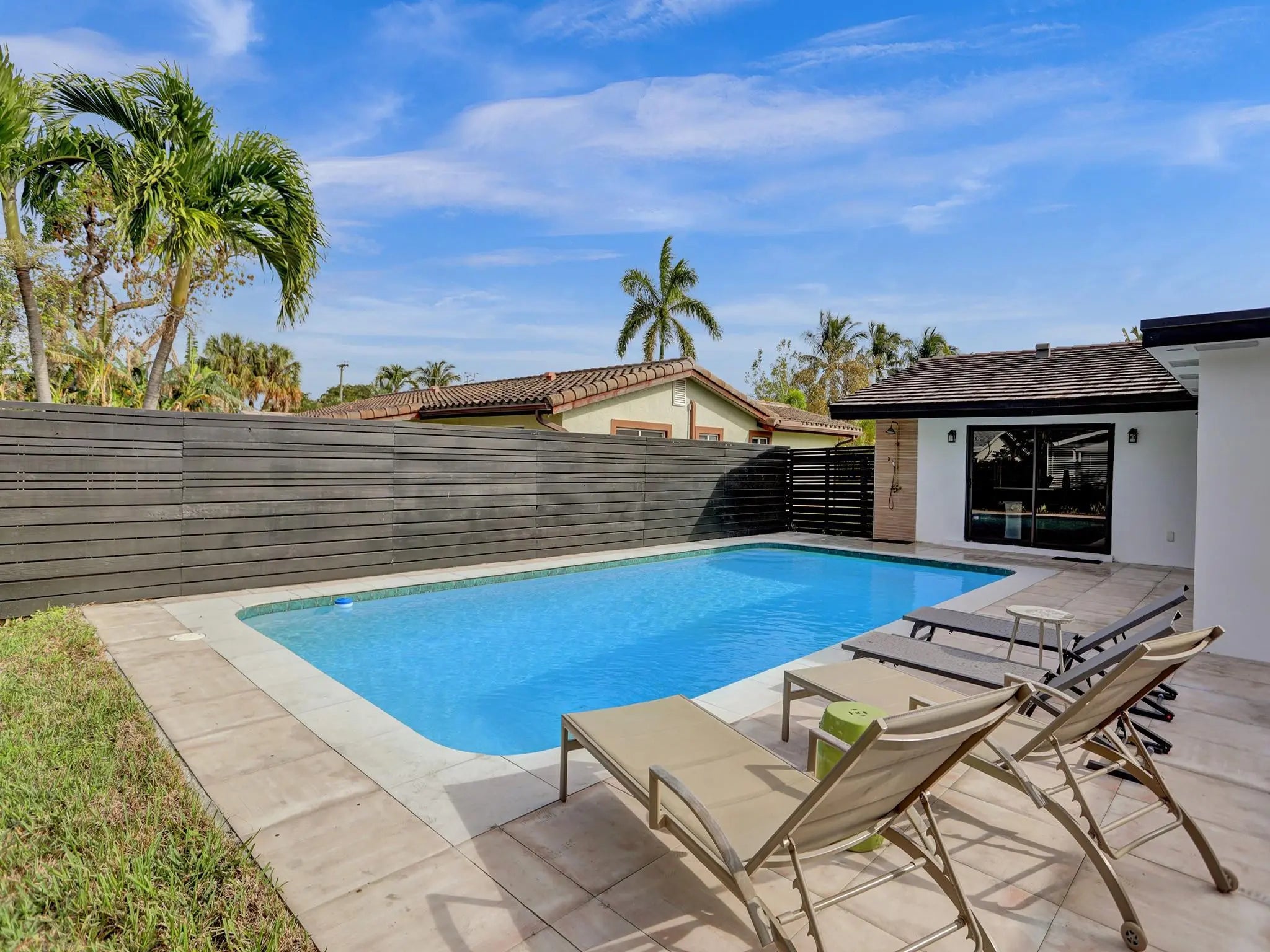 Experience this pristine, newly renovated 3 bed/3 bath corner-lot home with pool, cabana bath, and outdoor shower, just minutes from the beach. Flooded with natural light, the spacious living room and open kitchen with island offer the perfect setting for entertaining family and friends. The primary suite opens to the patio and features a spectacular bath with standalone tub and rainfall shower. Enjoy outdoor living by the pool in a quiet neighborhood, with garage and ample guest parking.. Conveniently located 15 minutes from Downtown Fort Lauderdale and 20 minutes from the airport, close to great dining, shopping, and entertainment. with flexible rental terms—monthly, seasonal, or annual.