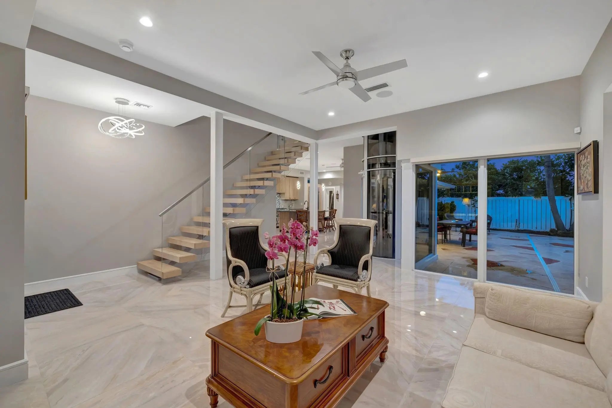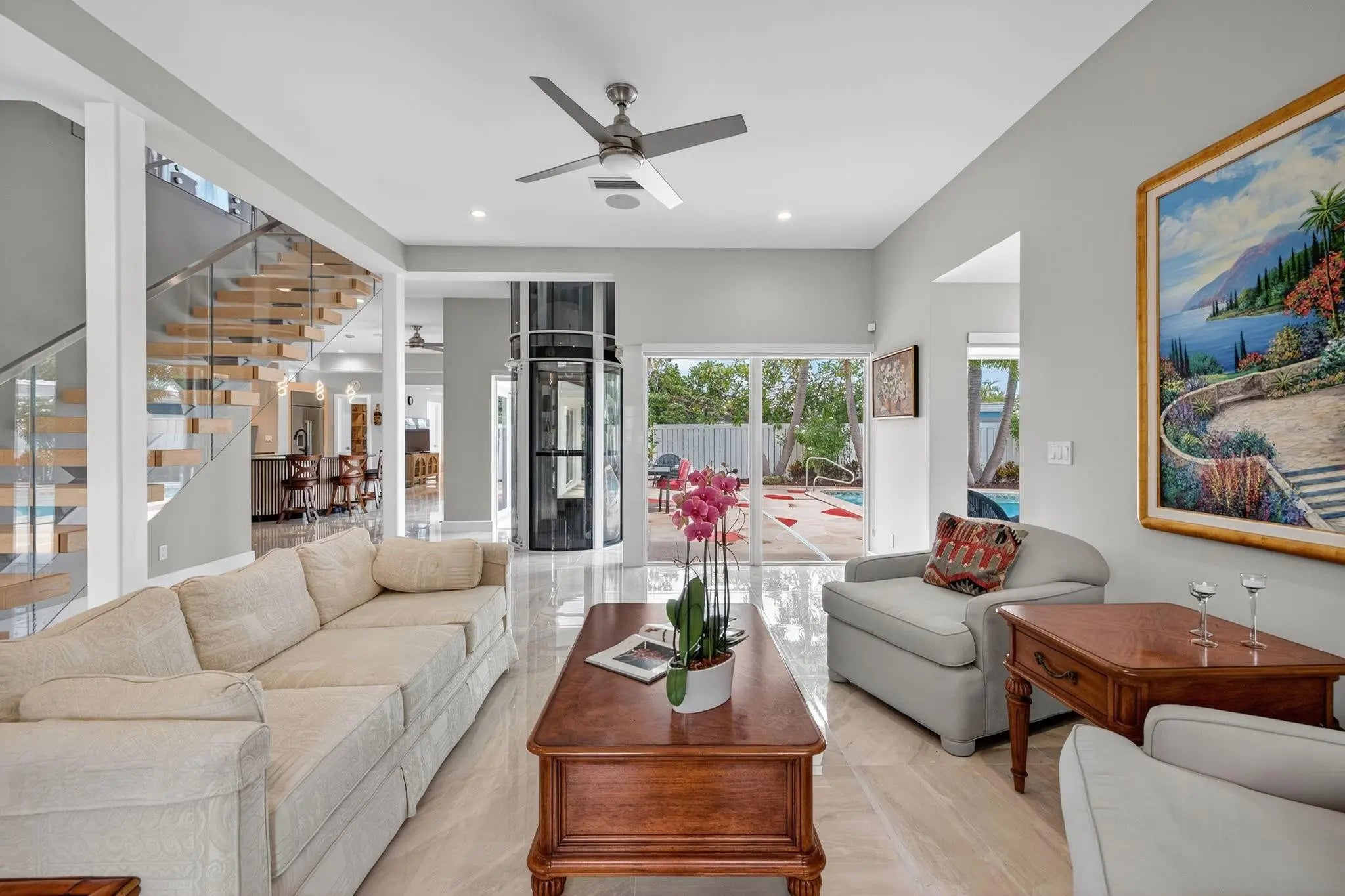 Enjoy great beach proximity in semi-gated Harbour Inlet close to Pier 66, shopping & dining on SE 17th St, great access to major highways & airports. Certificate of Occupancy June 2025, custom home shows as new & offers extremely flexible floorplan & incredible views over to intracoastal & cruise ships in port from 2nd & 3rd levels. Abundant sunlight & fabulous entertaining areas, large bedroom suite on 1st level, two primary suites & spa style baths & dual vanities (both with private balconies). The home office has a murphy bed, closet & full bath (potential 4th bedroom). Glass elevator to 3rd level sky bar/club room (murphy bed/potential 5th bedroom). The Large corner property providing privacy & space poolside. Short distance to wide & quiet beach. MOTIVATED SELLER ENCOURAGES OFFERS!