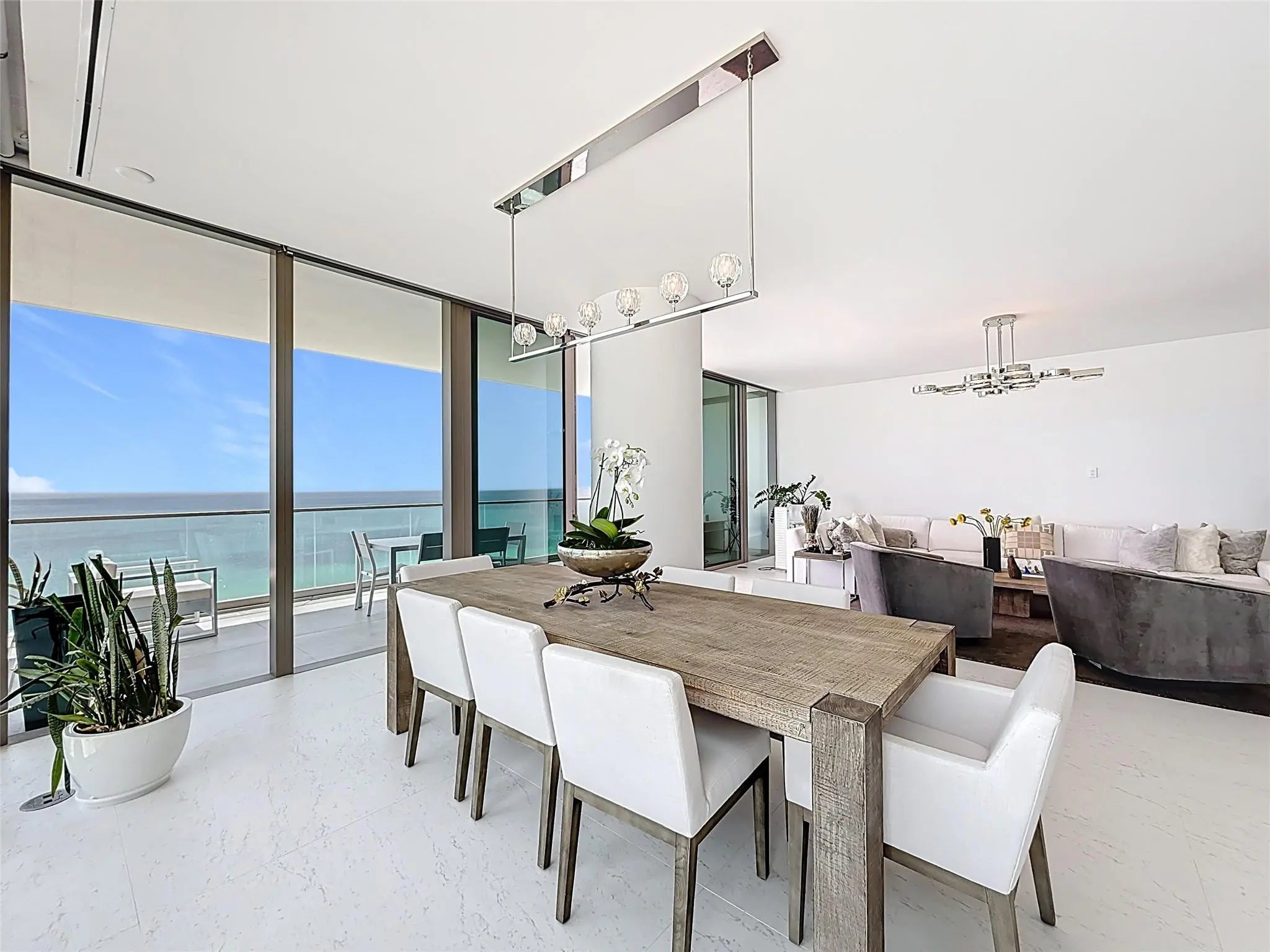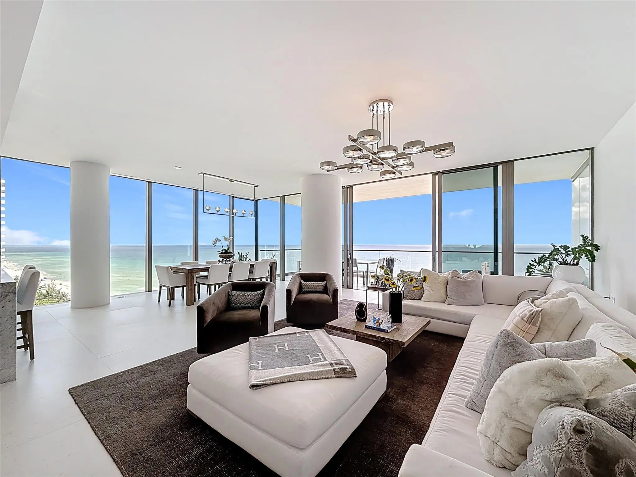 Step into beachfront luxury at 2000 Ocean. This spacious 3/3.5-bath plus den residence offers breathtaking, unobstructed ocean views from floor-to-ceiling glass and an expansive private terrace. Designed for elegance and comfort, the open-concept living area flows seamlessly into a gourmet kitchen with premium appliances, sleek cabinetry, and quartz countertops. Each bedroom includes its own en-suite bath and custom closets, with the primary suite featuring direct ocean vistas and a spa-inspired bathroom. The den offers the perfect space for a home office or media room. 2000 Ocean provides world-class amenities including 24/7 concierge, valet, beachfront pool, wellness spa, state-of-the-art fitness center, yoga studio and club room. Fully furnished with Restoration Hardware.