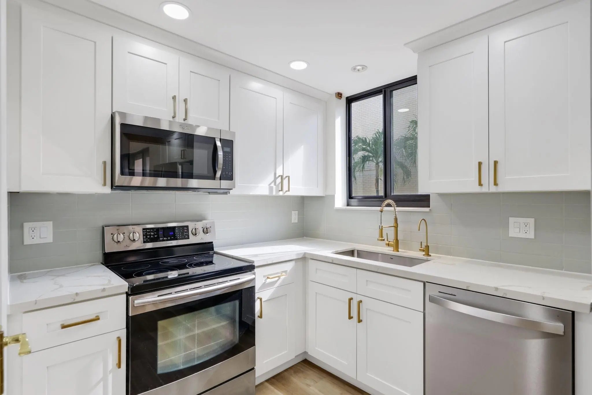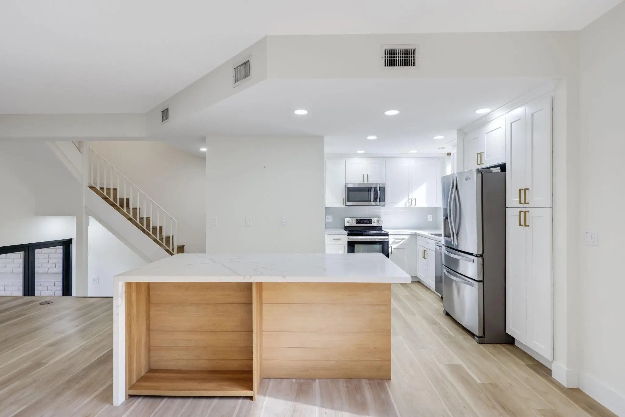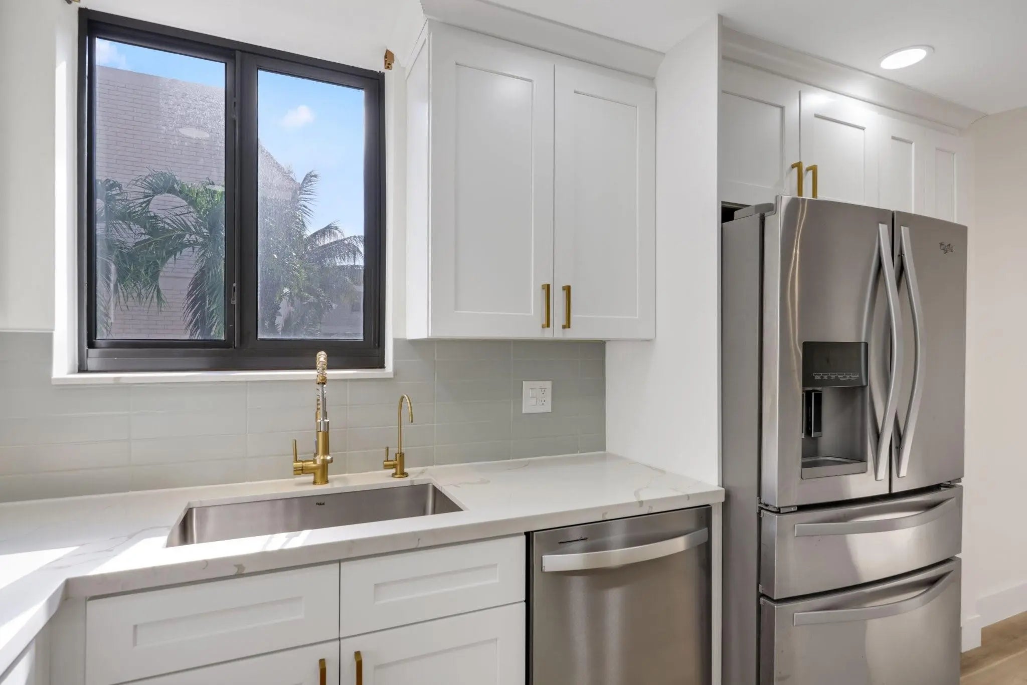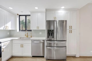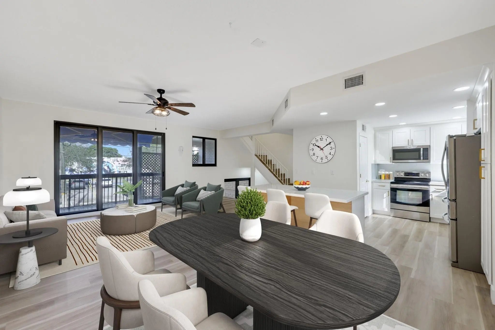 Experience the height of Victoria Park living in this renovated townhouse. Inside, the 1,957 SQFT open-concept layout, including 2 bedrooms + den or 3rd bedroom layout, 2.5 baths, & 2 car garage. The spacious primary suite boasts generous walk-in closet, a bright ensuite w/ dual sinks, & updated plumbing throughout—ensuring modern efficiency & peace of mind. Enjoy a newly installed kitchen island, perfect for entertaining & meal prep, plus a private balcony with sliding doors that fill the home with natural light. Located in a secure, gated community with a pool, and stunning outdoor views with private access to Holiday Park. Newer Kitchen, bathroom's, impact doors & windows, instant water heater, floors, closets, and water filtration system. Enjoy an enviable location at remarkable value.