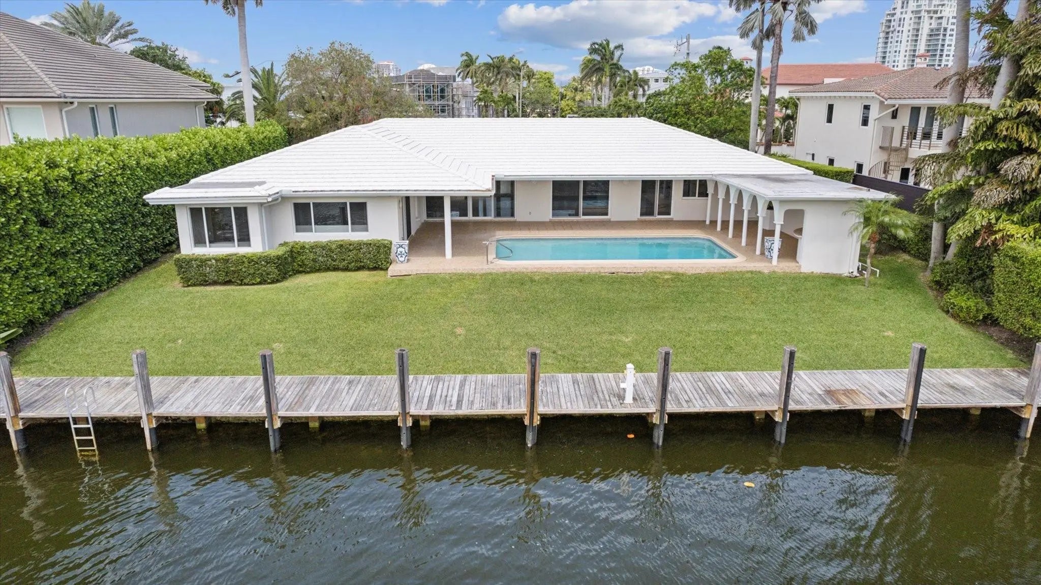 Spectacular location in Harbor Beach. Protected 100 ft. of dockage for your yacht with a wide turning basin and just minutes to the ocean! Light, bright living space with 4 bedrooms, 4 1/2 baths, with generous closet space. Pool and covered patio with southern exposure, perfect for entertaining. Pride of ownership inside and out! Private beach club, marina, and security available. A pleasure to show!