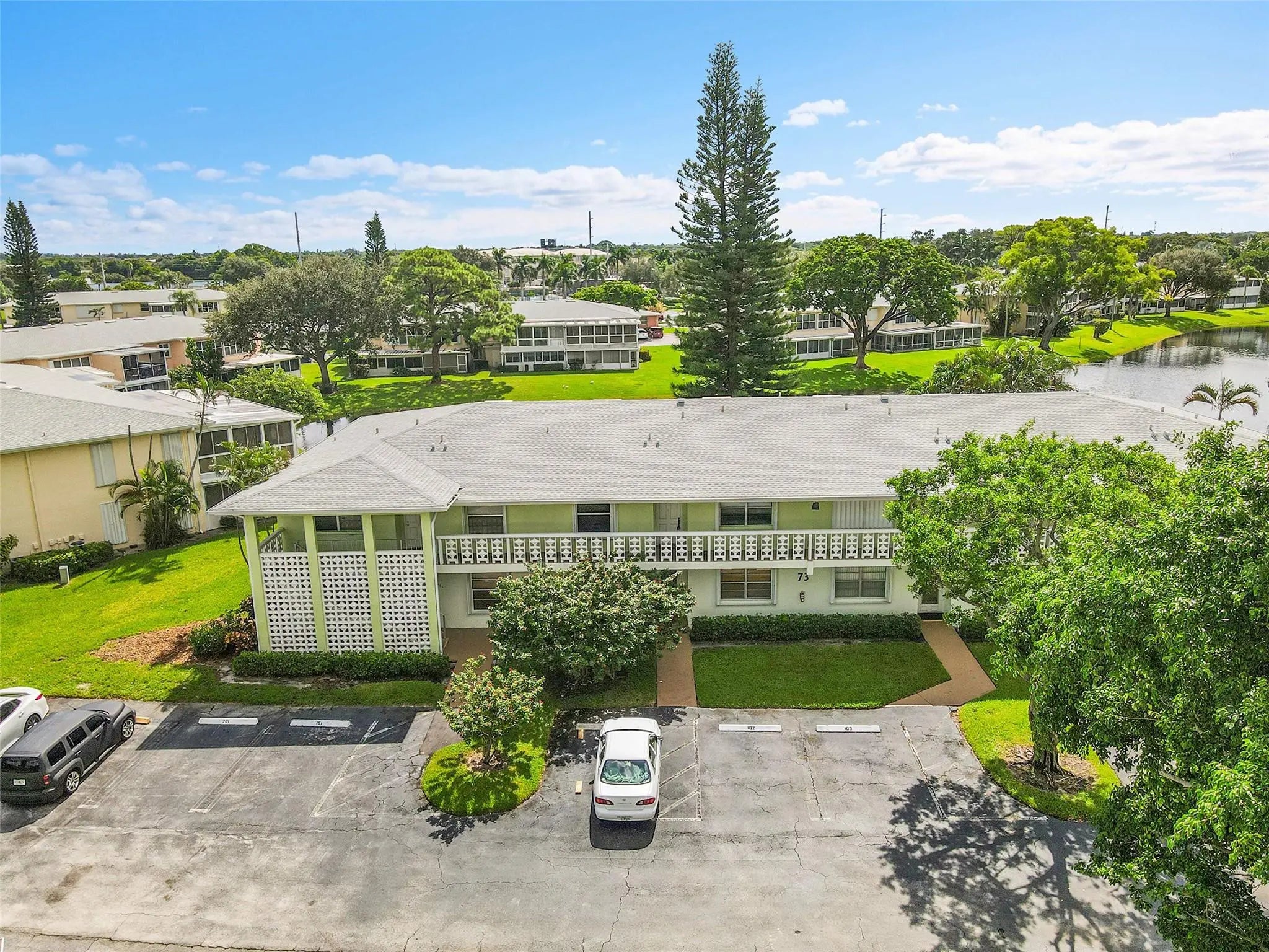 SELLER OFFERING CONCESSIONS IF UNDER CONTRACT BY 4/01/2026!! This beautiful, ready to move in, newly renovated, 2-bedroom, 2-bath condominium in the desirable Pines of Delray North. Brand new A/C, W/D and Refrigerator. Corner unit with 1,335 sq. ft. + a full size lanai of comfort and style. It features a bright living area with marble-finish flooring, laminate wood floors and a striking chandelier. The kitchen offers white appliances, marble countertops, and a tasteful backsplash. The primary suite boasts ample natural light, an ensuite with an oversized shower, and wainscoted walls. A serene closed in lanai overlooks the pond, perfect for relaxation. Enjoy the community’s convenient location close to the beach and downtown Delray. Easy to show! Vacant. Seller Motivated!