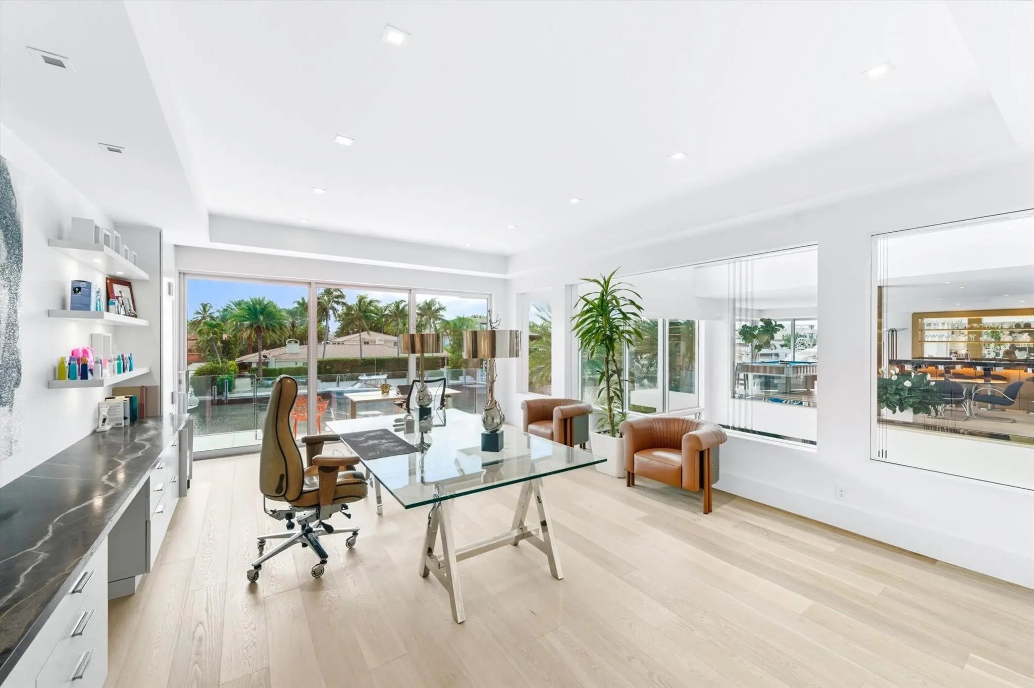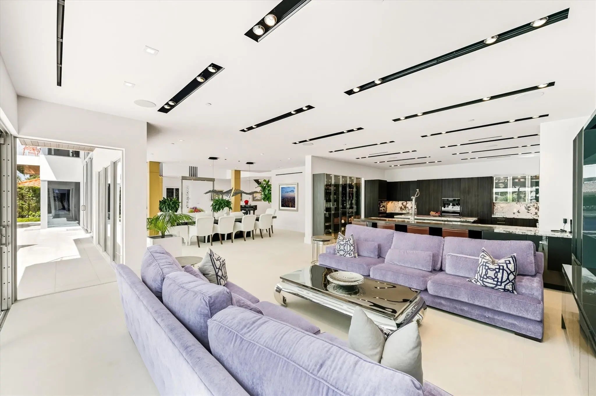 An architectural showpiece & entertainer’s paradise, this 11,631 sqft estate offers 6 bedrooms, 7 full baths, & 2 halves. Enter the grand lobby with a 14FT Hessam Abrishami painting & a soaring 35FT light fixture. With sky rights grandfathered in, this 3-story estate has a bar on each floor, an office with water views, & floor-to-ceiling windows throughout. No expense is spared with exotic marble, natural wood pillars & Italian plants. The first floor features a bar, 400-gallon fish tank & a chef’s kitchen with marble island, Miele appliances, & large gas stove. A commercial-grade glass elevator & soundproof theater & luxury. All bedrooms have water views. Includes membership to The Club at Harbor Beach with beach, pool, pickleball & more. This stunning estate is an architectural masterpiece and entertainers’ haven, spanning 11,631 sqft. It features 6 bedrooms, 7 full baths, and 2 half baths. Step into the grand lobby adorned with a 14FT Hessam Abrishami painting and a breathtaking 35FT light fixture. With sky rights grandfathered in, this three-story home includes a bar on each floor, an office overlooking the water, and floor-to-ceiling windows that flood every room with natural light. No expense is spared: exotic marble floors, natural wood pillars, and Italian-imported plants enhance every space. The first floor boasts a bar, a 400-gallon fish tank, and opens to a chef’s kitchen with a marble island, Miele appliances, and a large gas stove. A commercial-grade glass elevator elevates your experience through the home, while a soundproof theater offers reclining seats for ultimate entertainment. The primary suite features a custom bookshelf with refined details. All bedrooms enjoy water views, making this estate exceptional in both design and luxury.