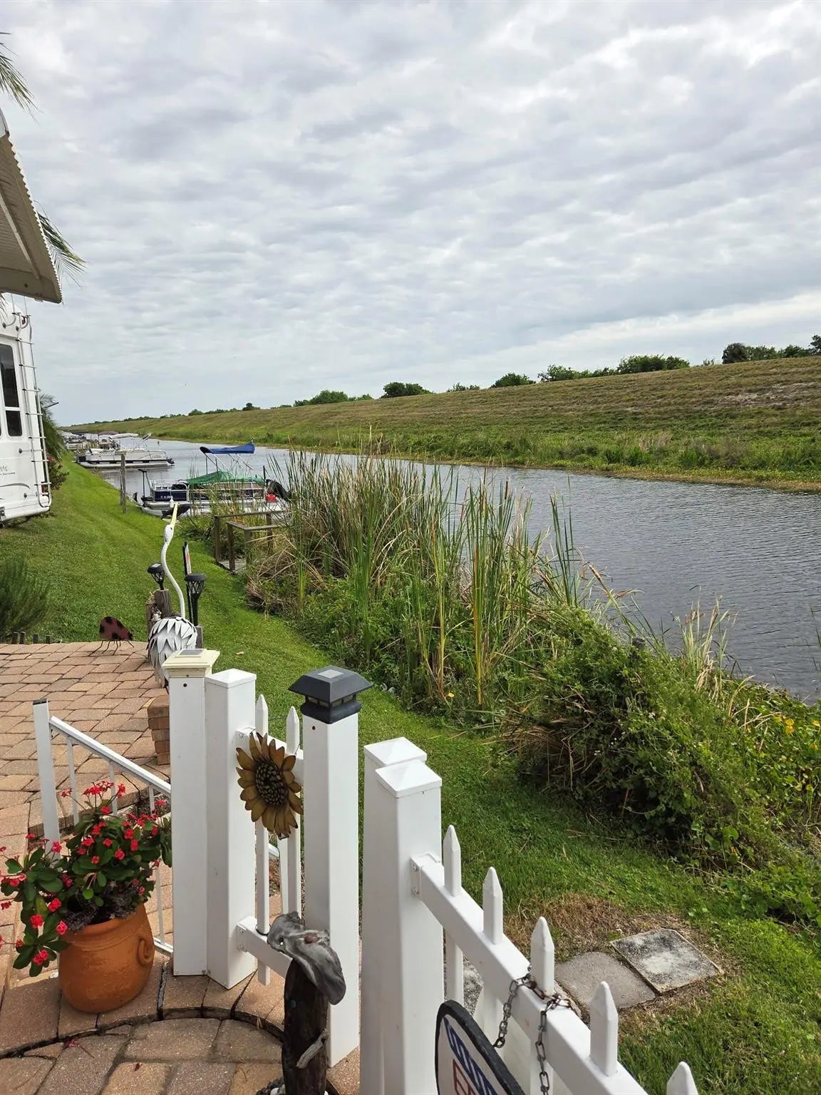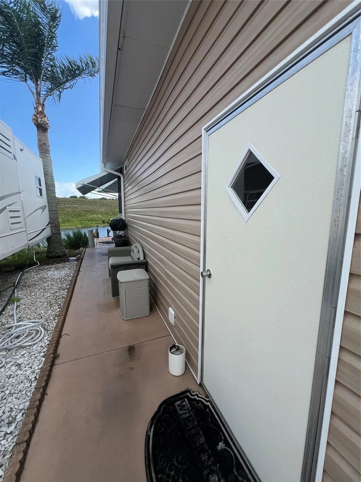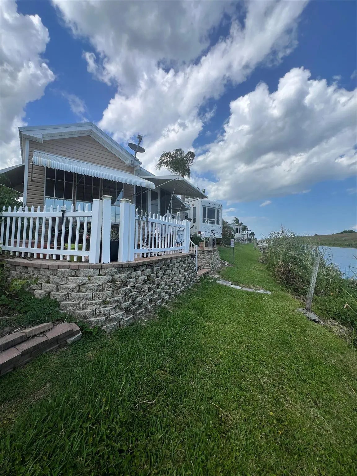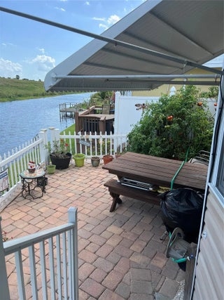 ~Big O RV Resort~ 55+ Community. 1 Bed with a loft- 1.5 Baths Park model located on the Rim Canal. Pavers with a nice patio on the water! Huge 10 X 20 Fl room/living room. New flooring throughout the home. Metal roof in 2018 with AC-Central heat & cool. Partially furnished. Nice outside Utility room/workshop. Bring the boat and go fishing or just a ride up the rim canal.