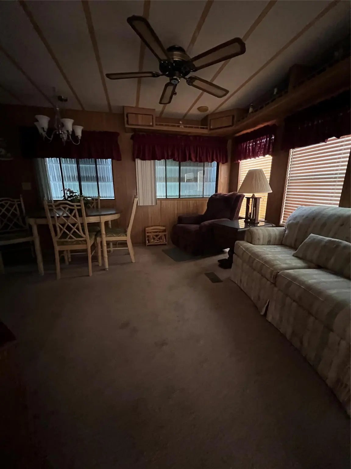 ~Ancient Oaks~ 55+ Community. 2 Bed 1 Bath Park model w/addition. Furnished- on a double street. Huge carport for Truck & Boat or 2 vehicles. Outside shed with washer & dryer, Golf cart included