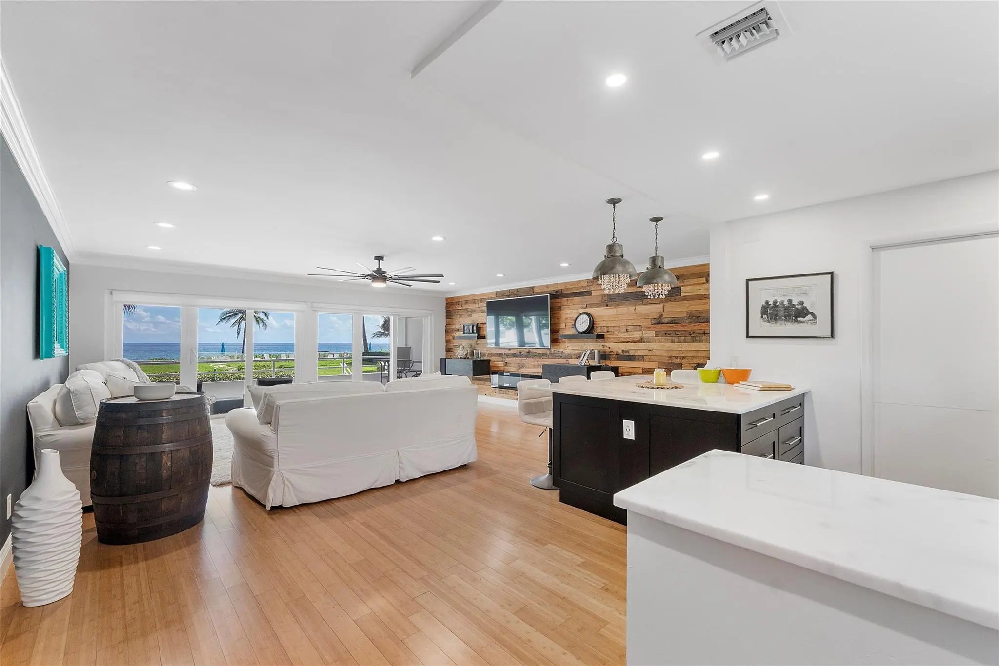 Direct Ocean Views on the 1st floor, so walk off your patio onto the sand & sapphire ocean waters, Turn key 55+condo just bring your swimsuit, Take a swim in the ocean or our delightful pool on the lawn, Tastefully decorated & renovated interior with porcelain walls and wood flooring, floor to ceiling windows with the direct breathtaking views of the blue ocean, Mahogany kitchen with white stylish marble countertops, Newer bathrooms, Huge family room with custom accent wall, Newer stainless appliances, Washer & Dryer inside, This modern white building has passed all inspections & all concrete restoration work completed including new roof & painted modern white, New elevators, New Electric, Lighting, Electric meter room, Alarm system, O&S Engineering,Seller pays assessments at closing,