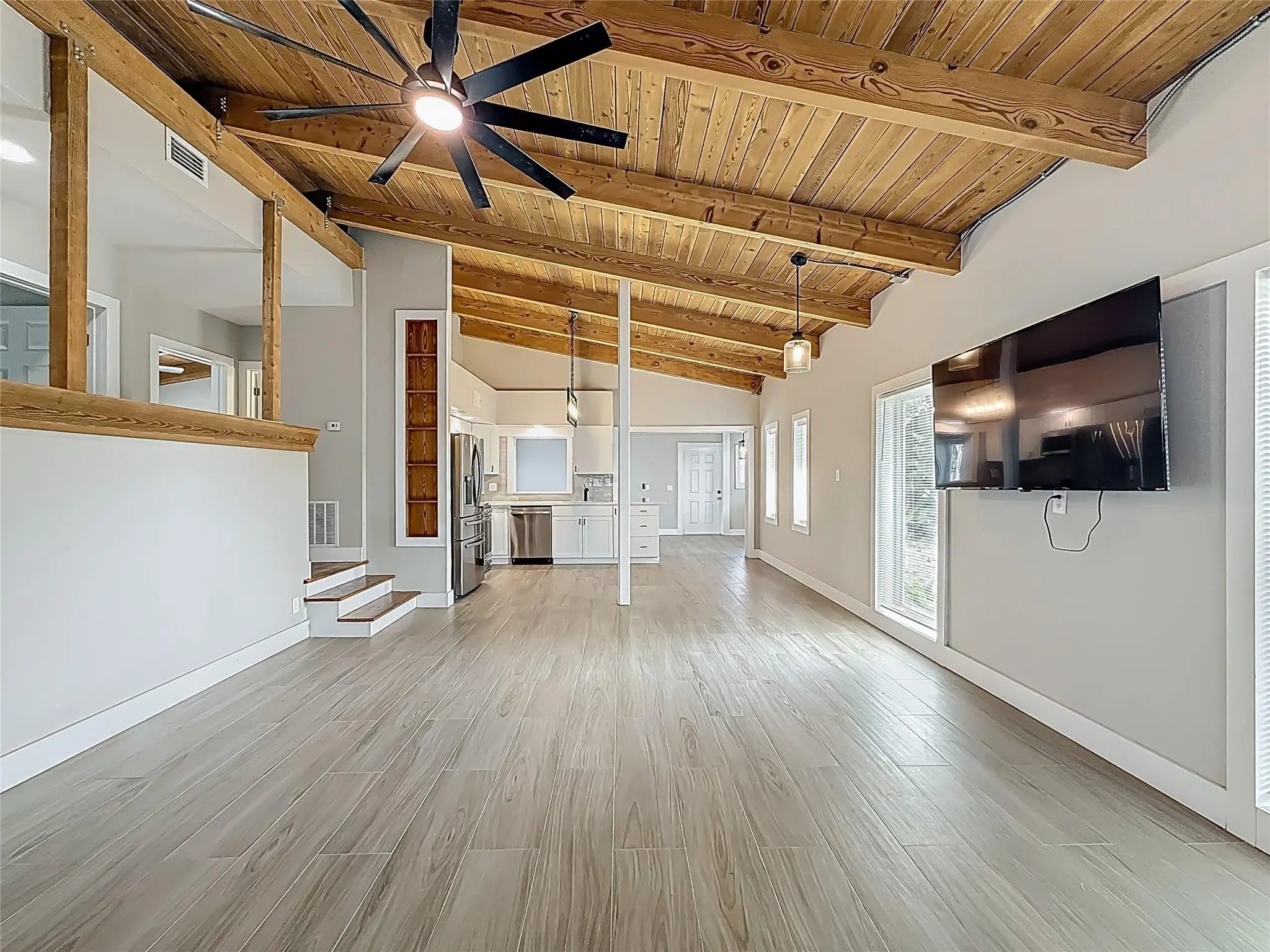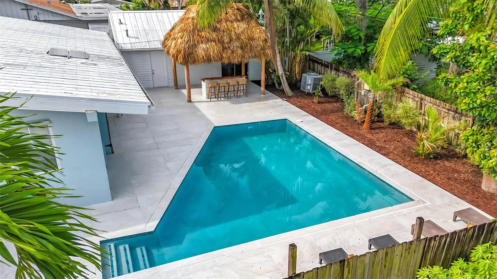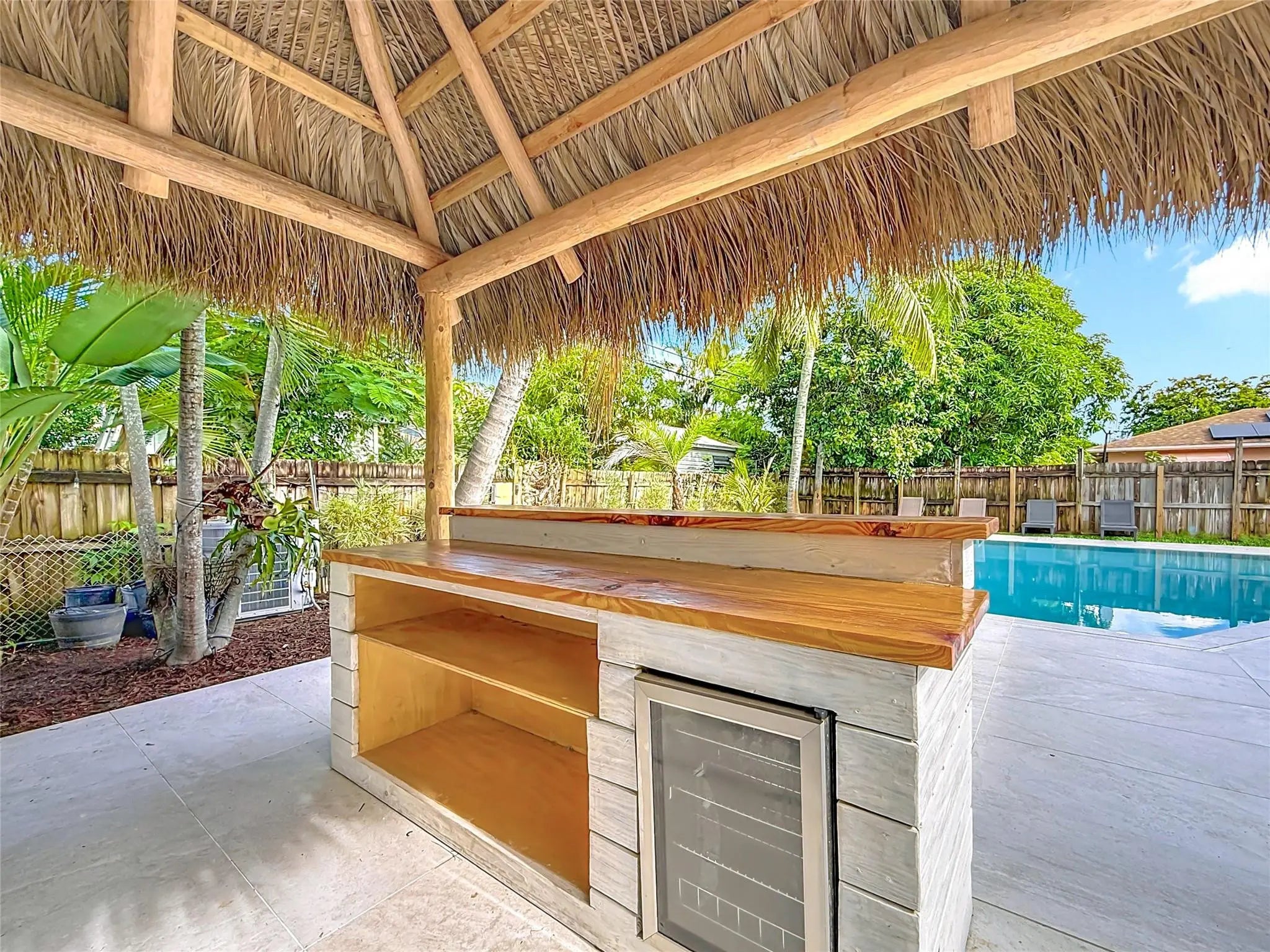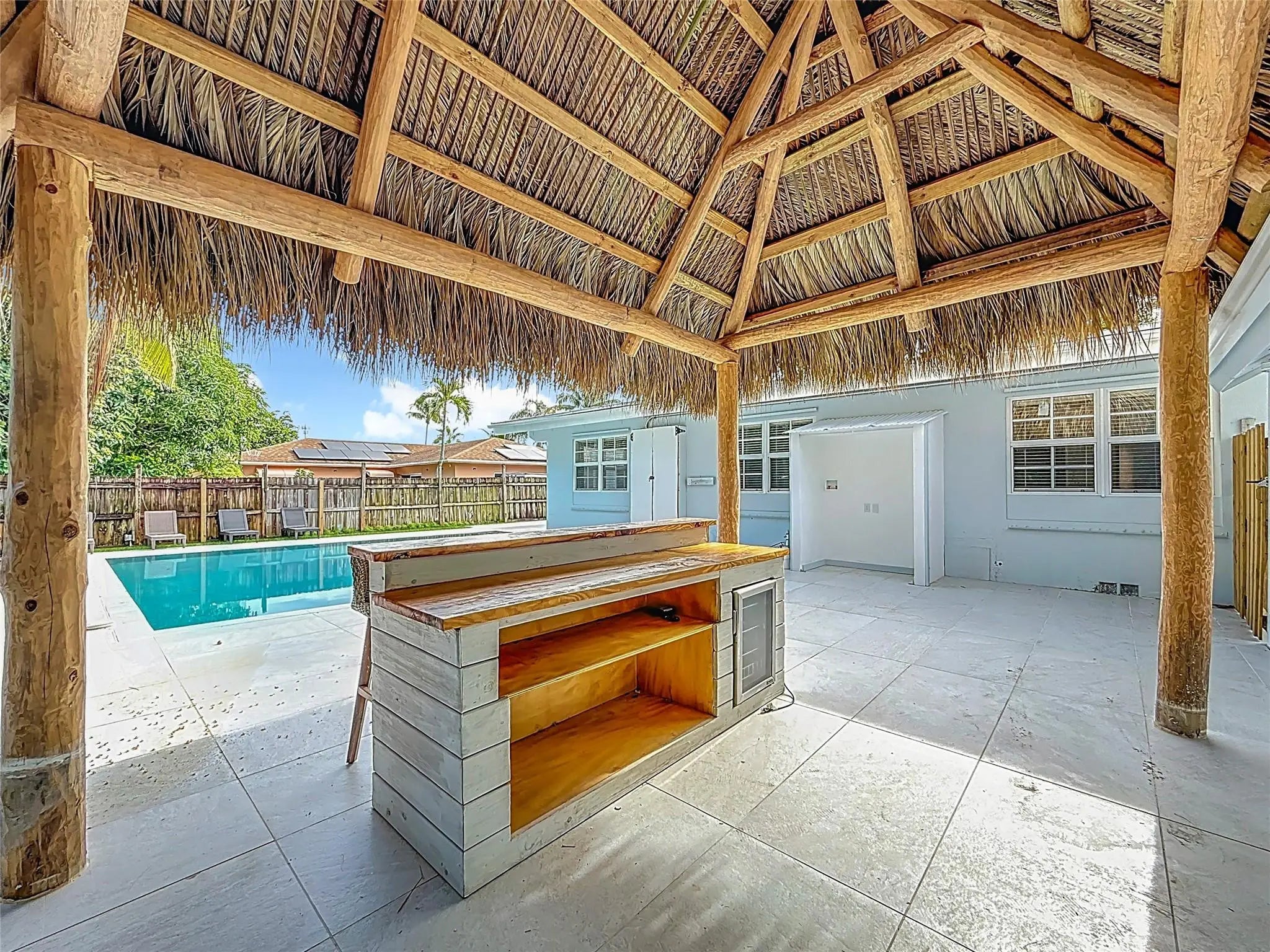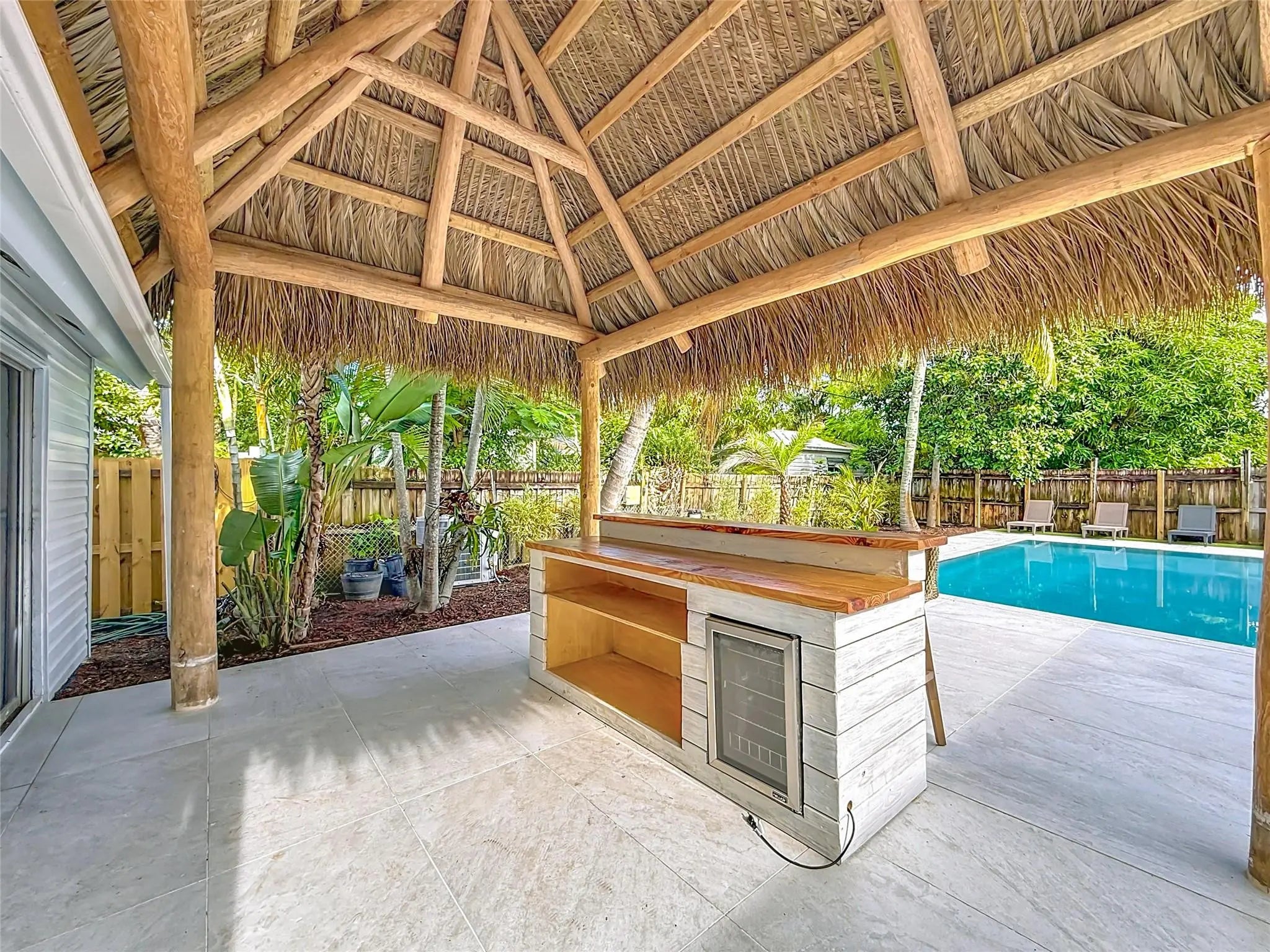 Welcome to 1317 S Broadway—a fully renovated 4BR, 3BA split-level coastal retreat just minutes from the beach in the heart of Lantana. Set on an oversized tropical lot, this unique property features a resort-style saltwater pool, tiki hut w/ built-in bar, mini golf course, avocado tree, and lush tropical landscaping. Inside, enjoy vaulted wood ceilings, real hardwood floors, impact windows, a chef’s kitchen with quartz countertops, and updated bathrooms. The open interior blends modern finishes with warm character, ideal for entertaining. A detached garage offers flexibility as an ADU, in-law suite or game room. With no HOA and ample parking for boats, RVs, or guests, this turnkey home offers luxury, versatility, and strong Airbnb potential—minutes from beaches, dining, and I-95.