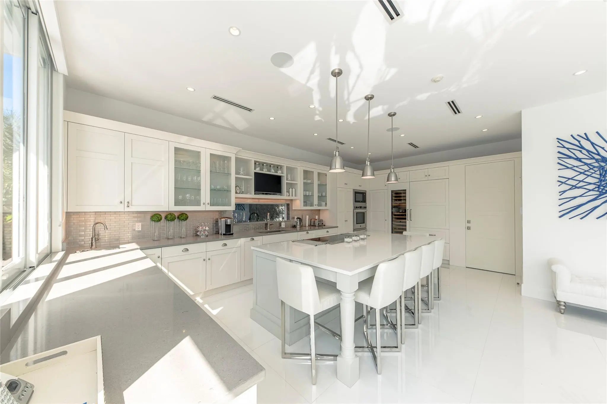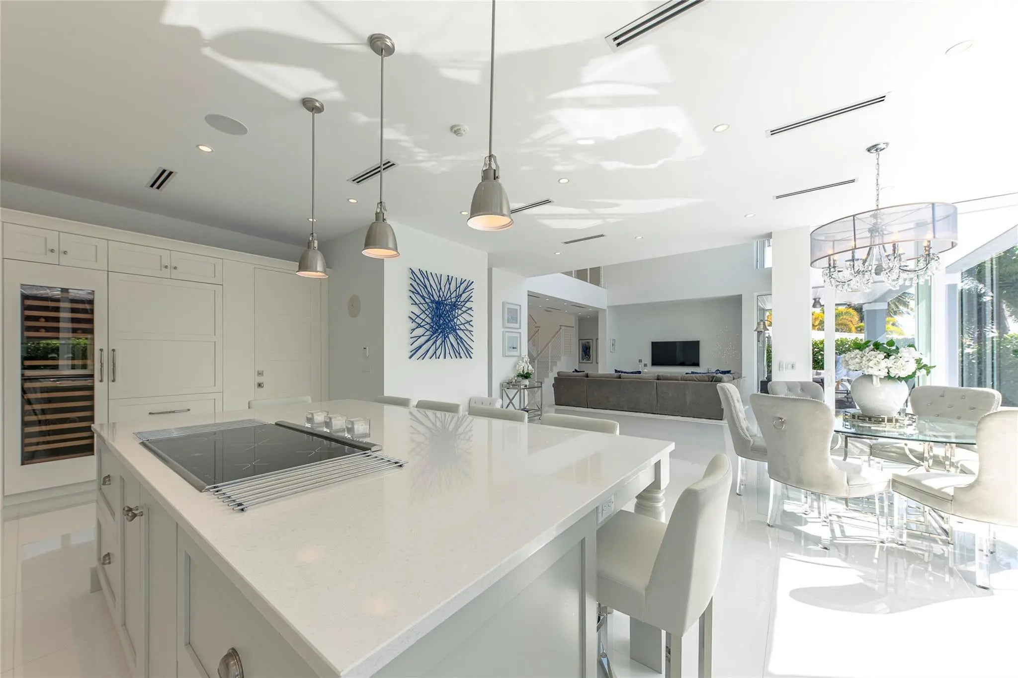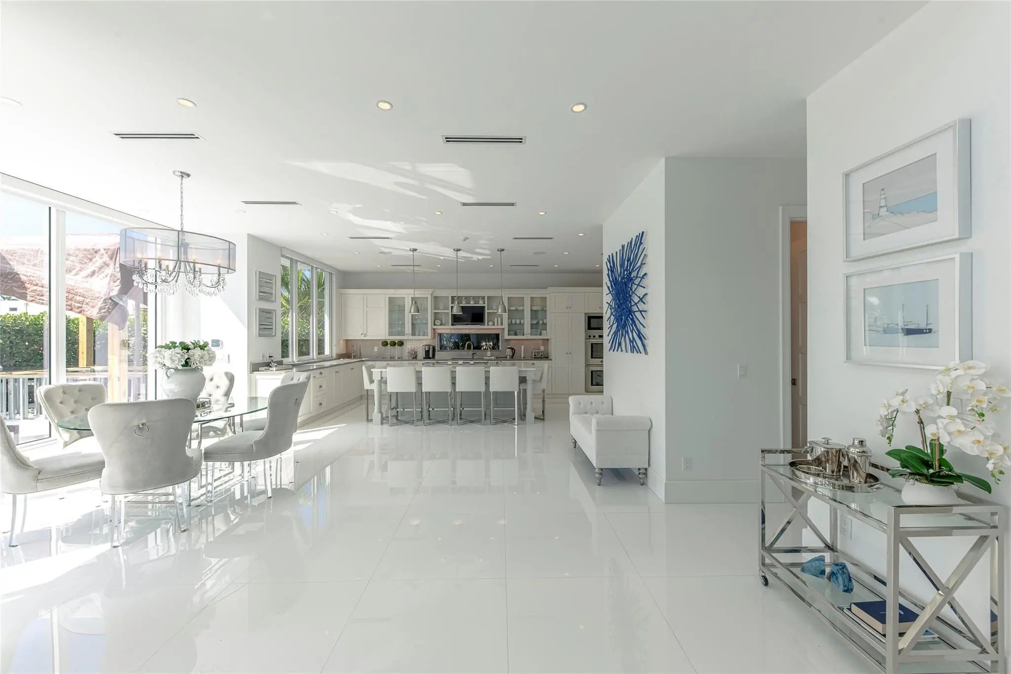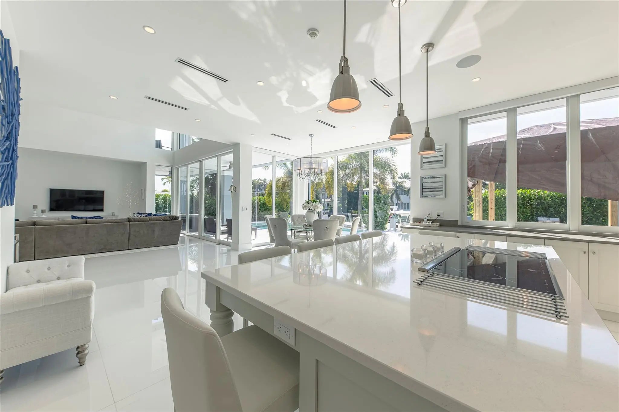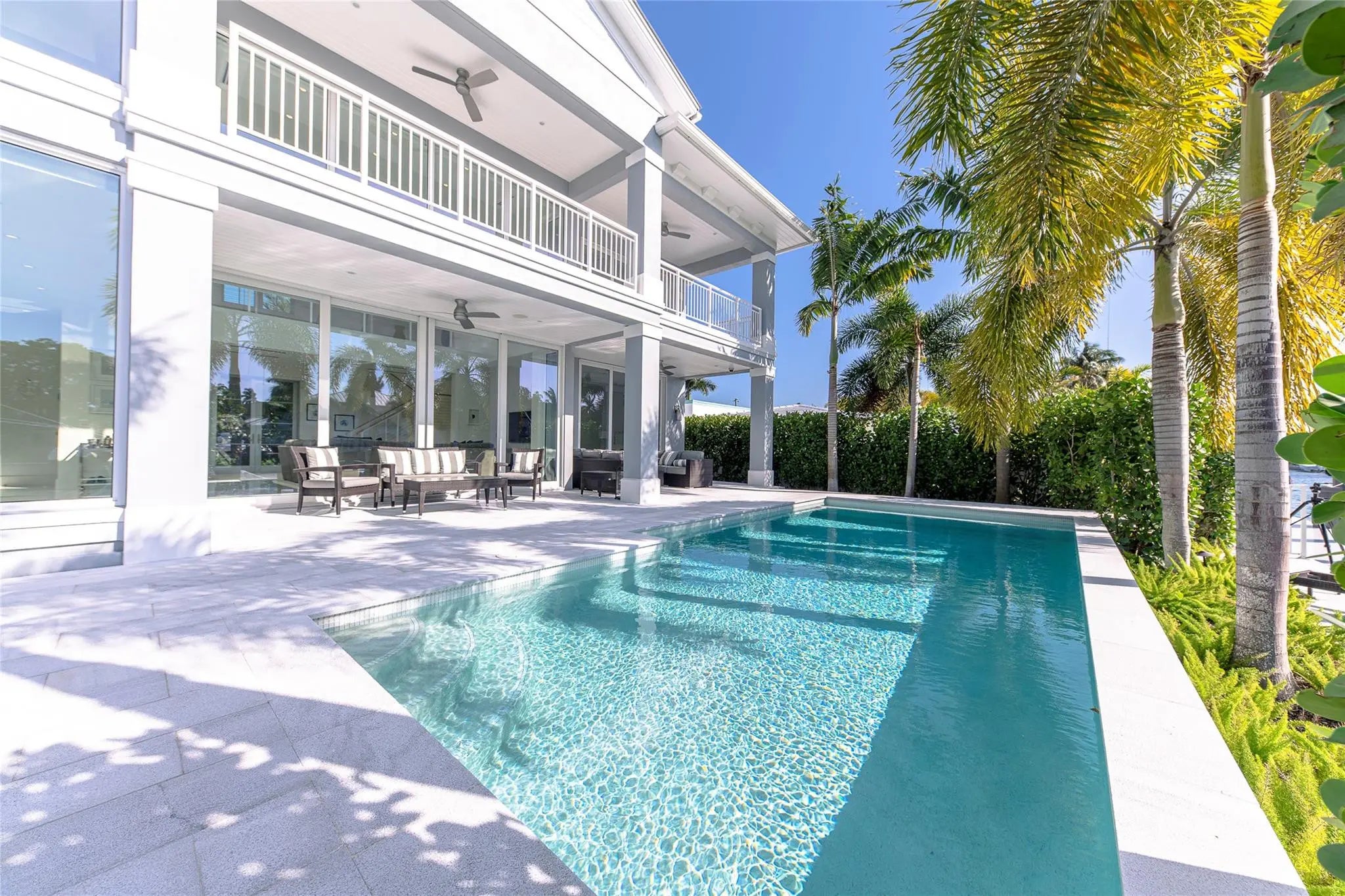 Recently built and rarely lived in this coastal design residence offers 5 bedrooms and 5½ baths, in 4,000 square feet of comfortable living space. The large chef’s kitchen flows into open dining and living areas framed by soaring two-story walls of glass providing breathtaking natural light and water views. The master suite opens to a large private terrace overlooking the canal with views towards the Intracoastal Waterway. Outdoor features include a sparkling pool, summer kitchen, deck, dock, full-home generator, and 75 feet of waterfront on a wide canal with fast access to the ocean for boaters. Located in the Riviera Isles neighborhood of the South Las Olas Isles, this home is minutes from shopping, dining, downtown Fort Lauderdale, and the world-famous beach and Atlantic Ocean.