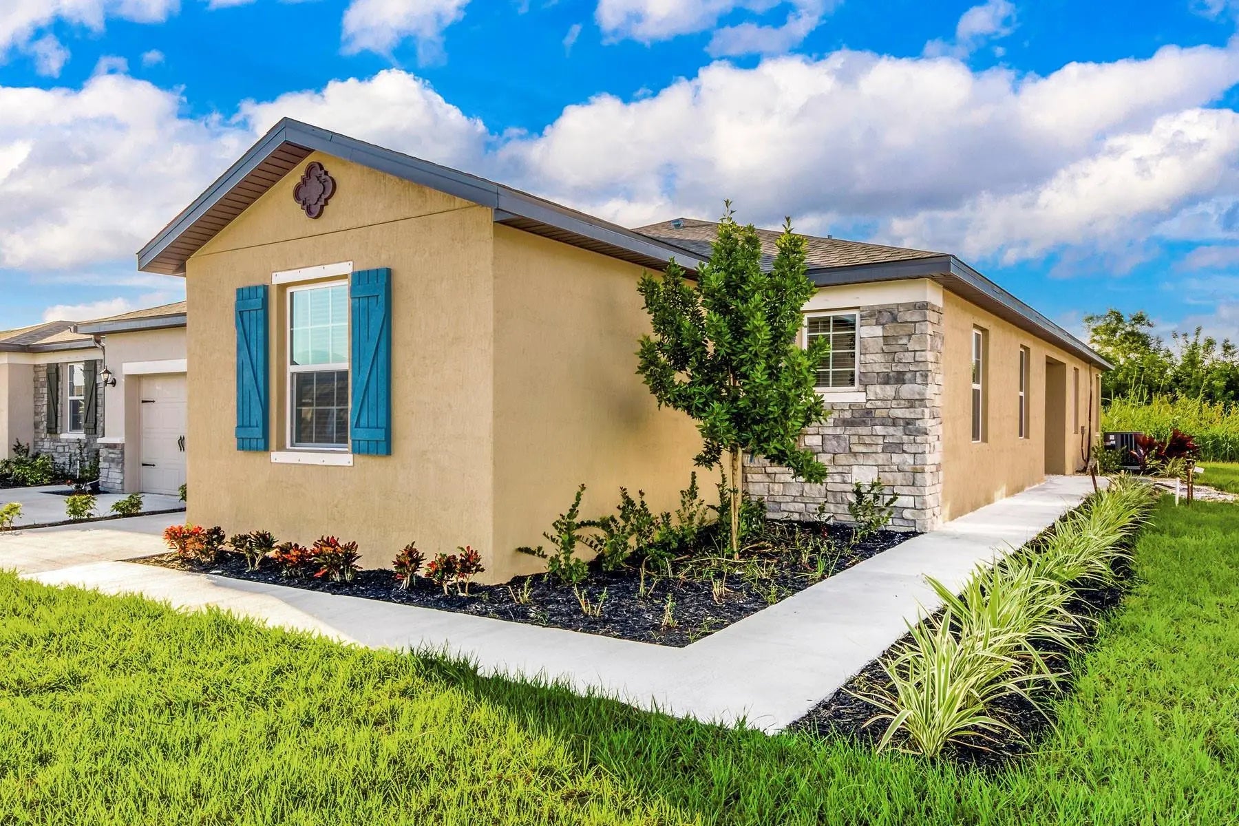 Ask about our limited-time incentives, builder-paid closing costs, and more! The Santa Maria offers a spacious, one-story layout designed for comfort and style. Located in Celebration Pointe, this 4-bedroom, 2-bath home features a charming exterior, generous bedrooms, and a welcoming covered entry. The chef-ready kitchen boasts a breakfast bar, sprawling countertops, and wood cabinets with crown molding -perfect for entertaining. Additional highlights include a laundry room and fully landscaped front yard. Enjoy a prime location with access to family-friendly amenities like walking paths, a playground, and a future community clubhouse. Plus, enjoy easy access to shopping, dining, and top-rated schools!