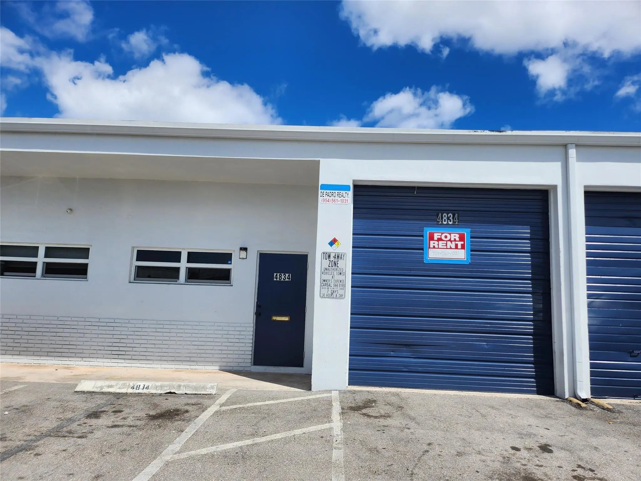 East side location with 3 phase electric. office and bathroom. 2 overhead doors facing front to back so you can drive thru your warehouse. 2 parking spaces in front and 2 in back. This unit is ready to rent immediately.Easy to show by appointment only. No auto mechanics. 24 hour access. Please do not disturb neighbors.unit 34836 is available as well. no 3 phase!! $3300.00 per month.