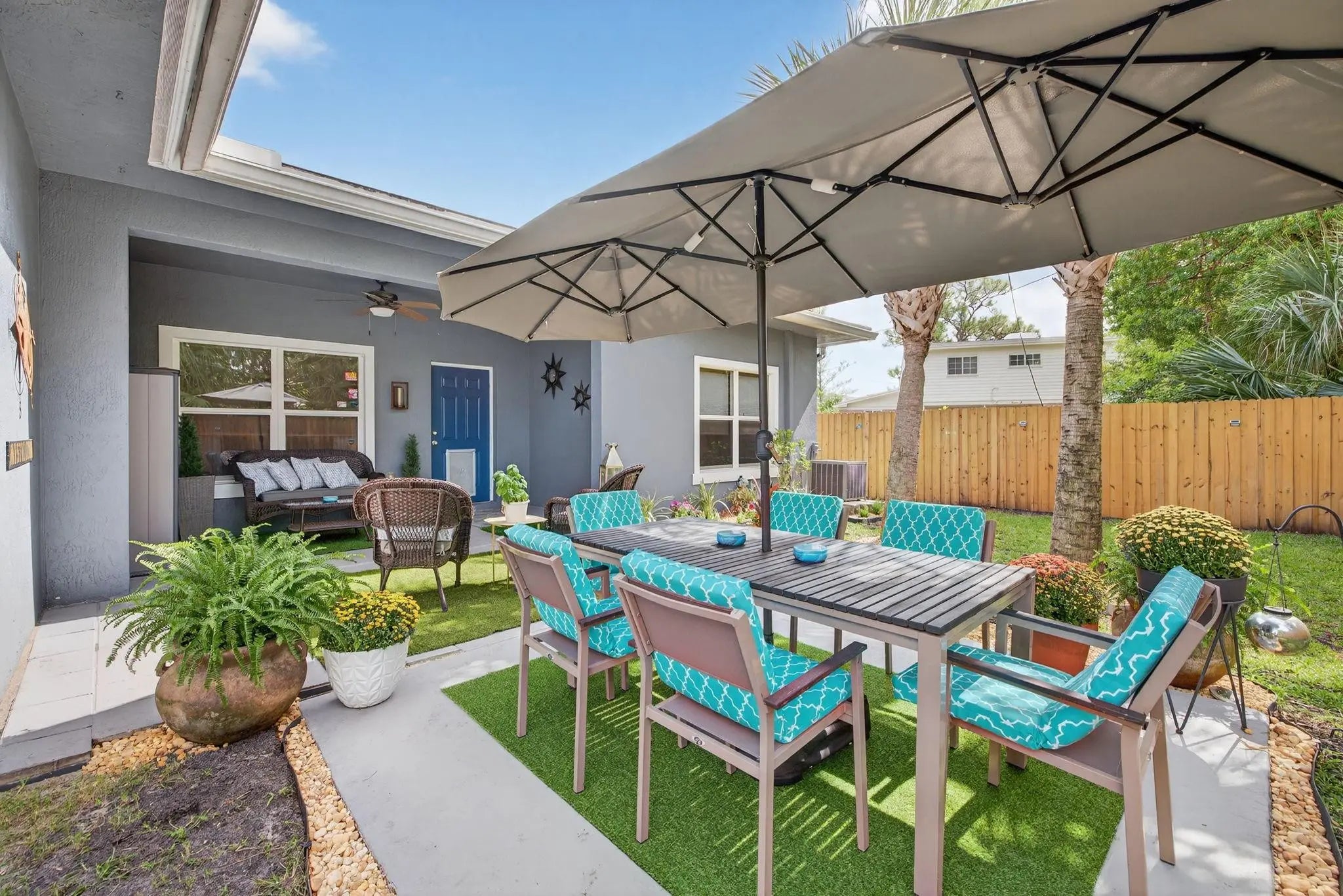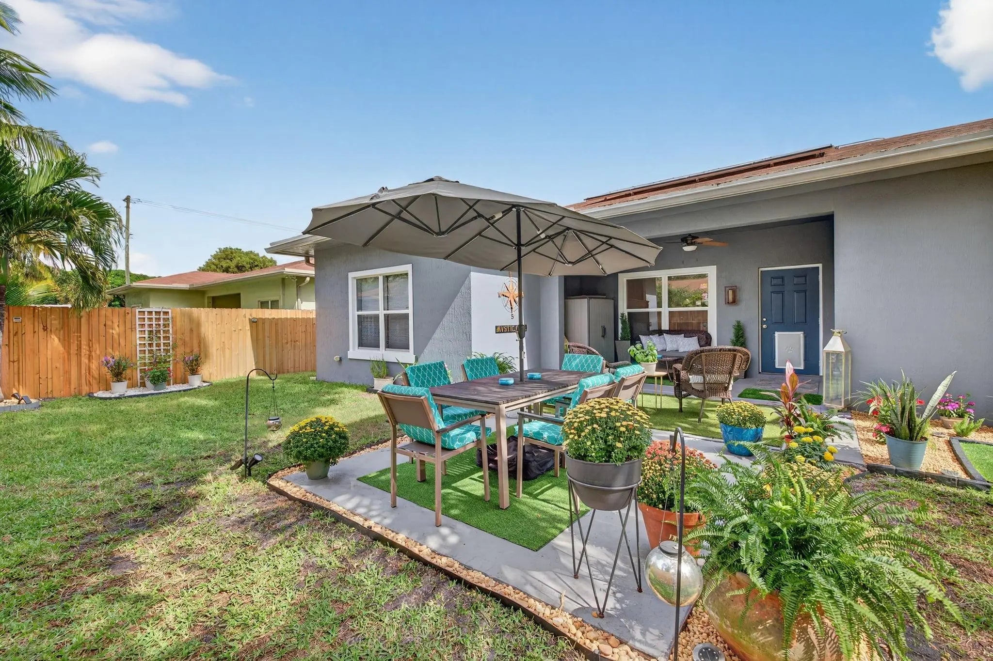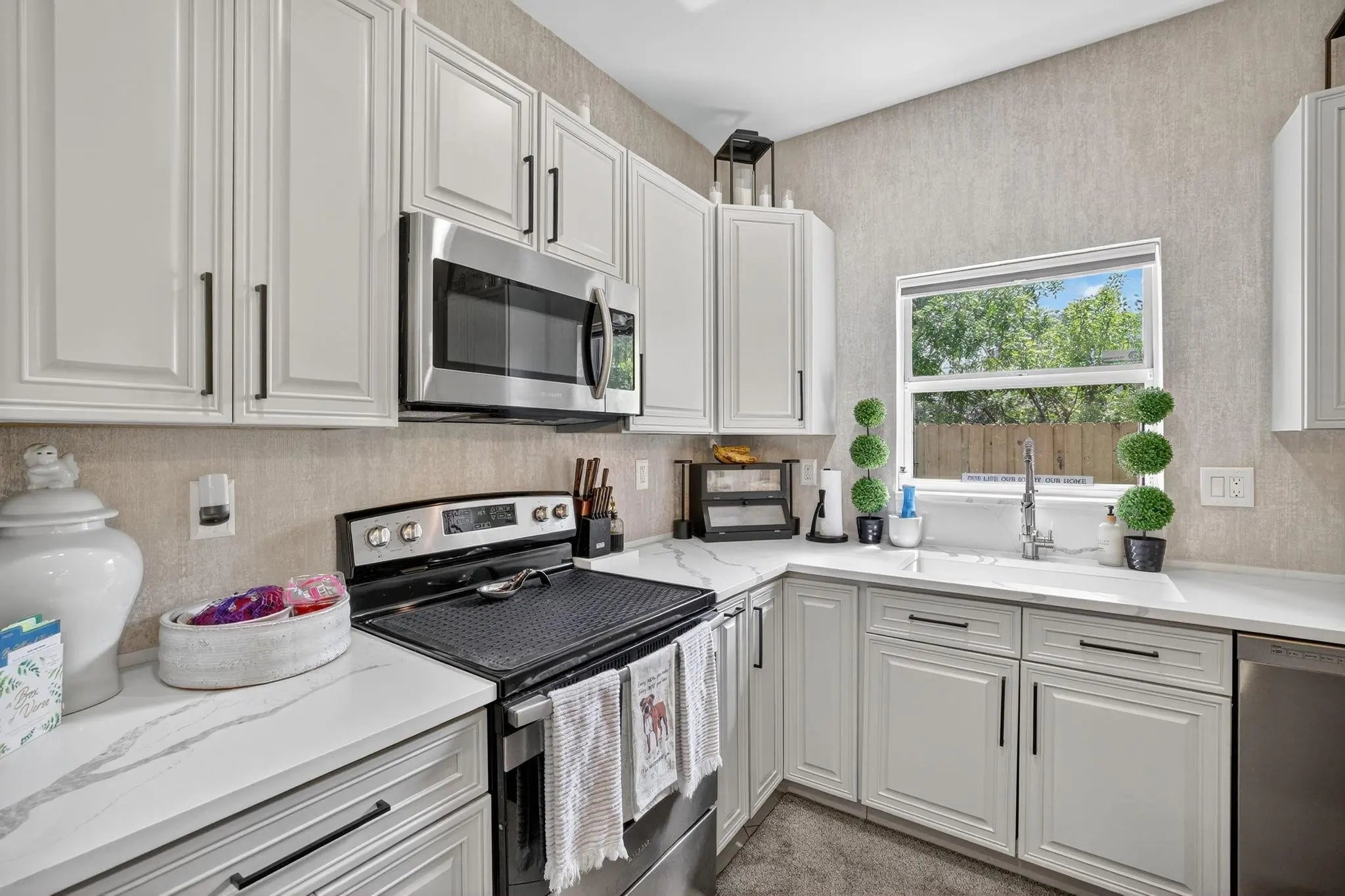 APPRAISED 9/29/25 @ $675,000 Fully solar-powered (transferable) and brimming with high-end upgrades, this home blends luxury and energy efficiency. The kitchen shines with quartz countertops, 6.5ft X 3.5ft island with waterfall edge, custom Italian wallpaper bespoke live-edge wood shelving above the bar and overhead adjustable lighting. All appliances are new within the last 2 years, including commercial-grade faucet and wine cooler. Home features new AC coils, remote-controlled fans, new patio pavers, smart irrigatioon can control remotely, NEW UP TO DATE CODES Fire/Carbon Monoxide alarms in every room. New fence 7/2025. Primary bath new custom waterproof wood slat wall, mirrows,faucets, lighting (9/2025) in 2nd bath new vanity, sink,